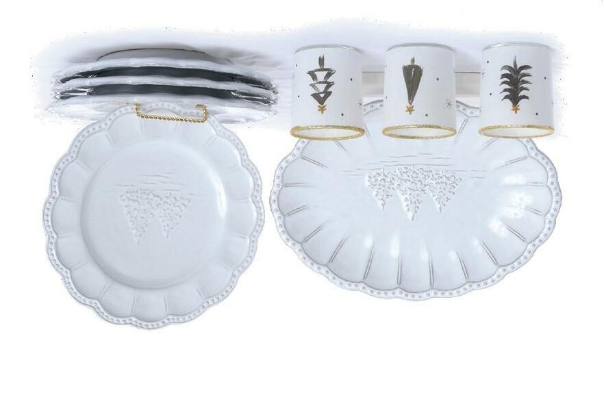2. Arte Italica Bella Natale dessert plate, set of (4) $185.00; small oval platter, $88; tree glass tea light votive assortment $15 each