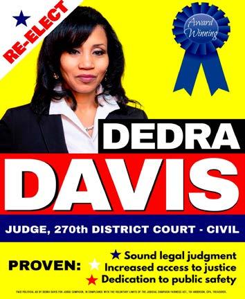The county will hold community meetings through October 20, including 16 in-person meetings divided evenly among the county’s four precincts and eight virtual meetings. Spanish, Man darin and Vietnamese interpreters will be available. Residents can check the latest schedule or submit their com ments online at harriscounty2022bond. org. (Sources: Harris County website; Houston Public Media website; Houston Chronicle)