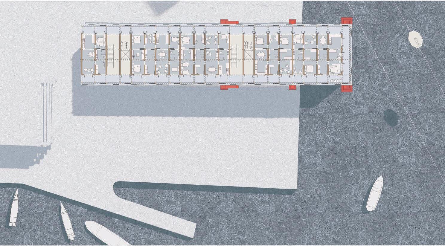 The site is chosen adjacent to Dante's un nished project with a street separating them, providing a distant view.