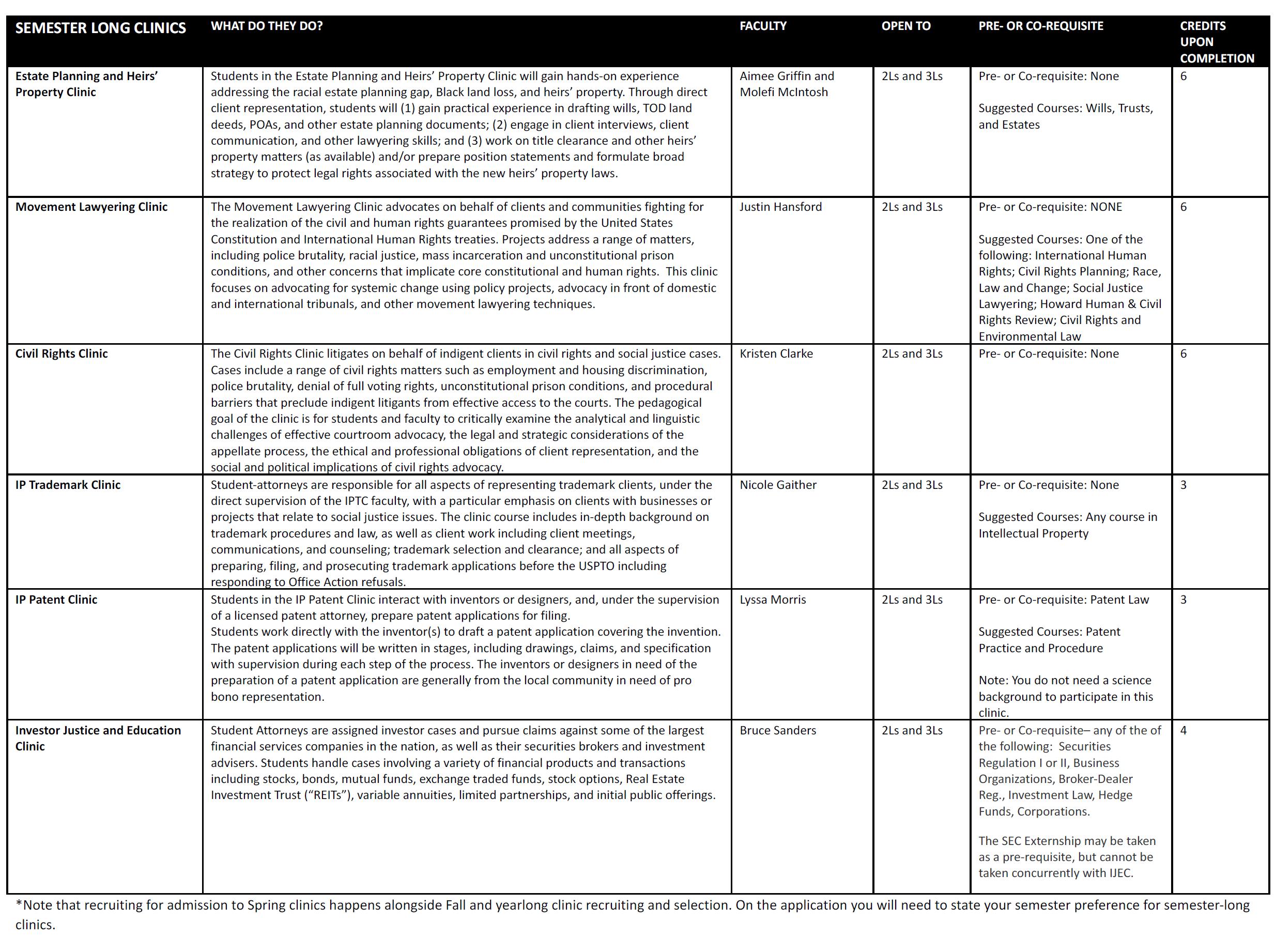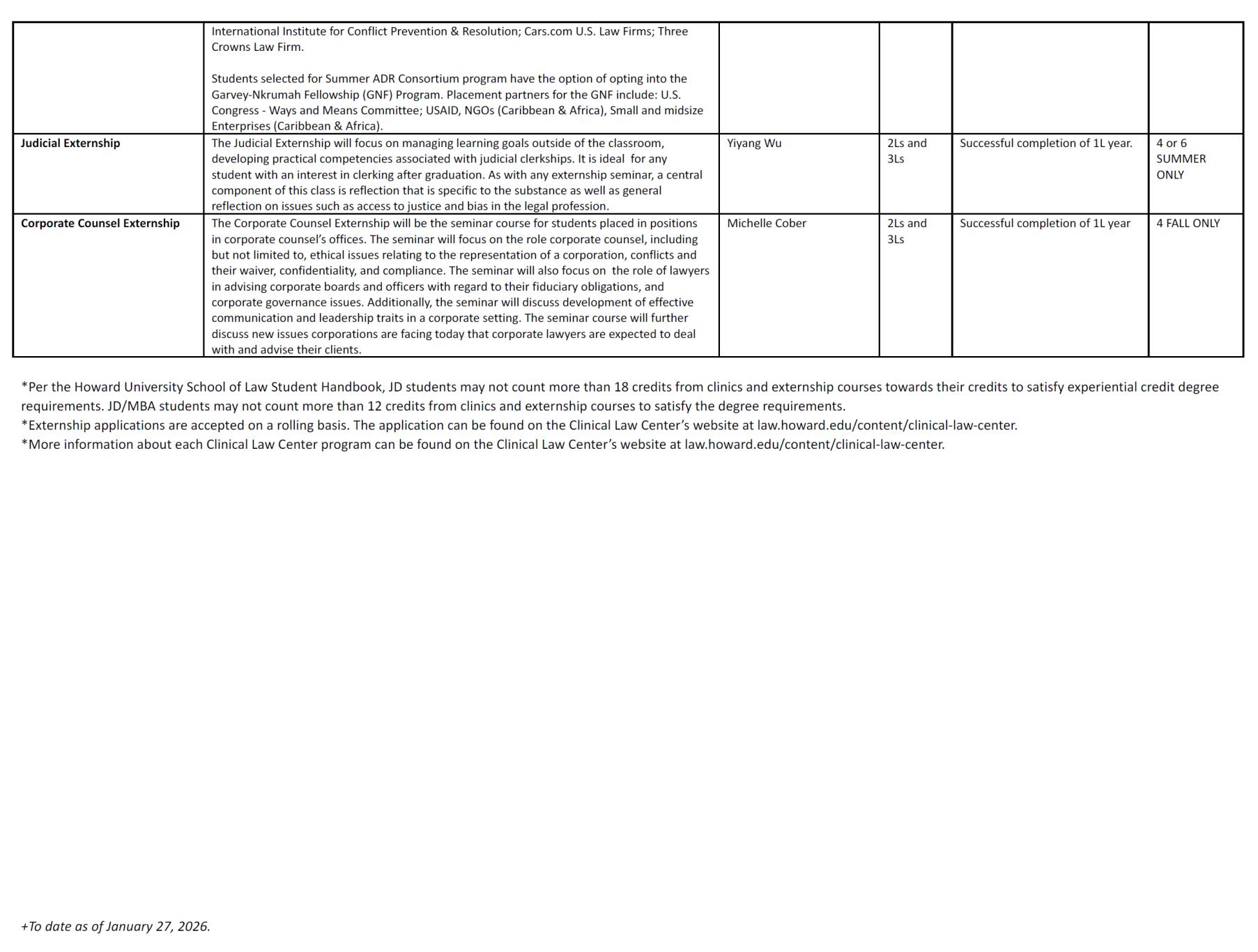 ACADEMIC ADVISING FAIR PRACTICE AREAS WITH FALL 2026 RELATED COURSES/CLINICS/EXTERNSHIPS/CO-CURRICULARS UPPER-LEVEL