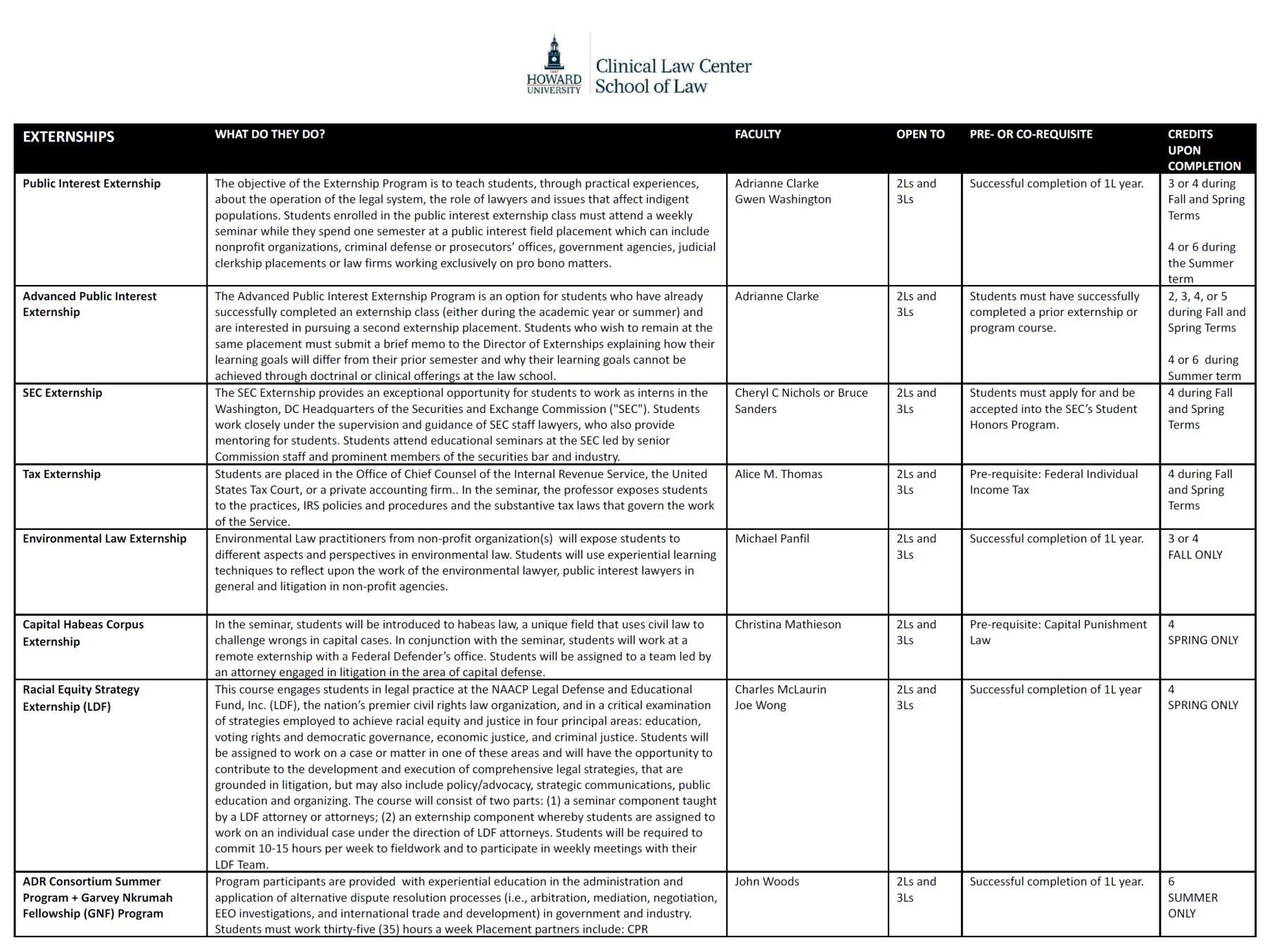 CLINICS/EXTERNSHIPS CO-CURRICULARS