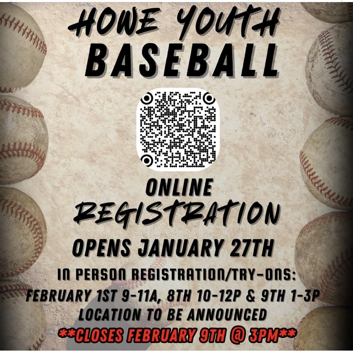 JANUARY27:HoweYouthBaseballOnlineRegistrationOpens
