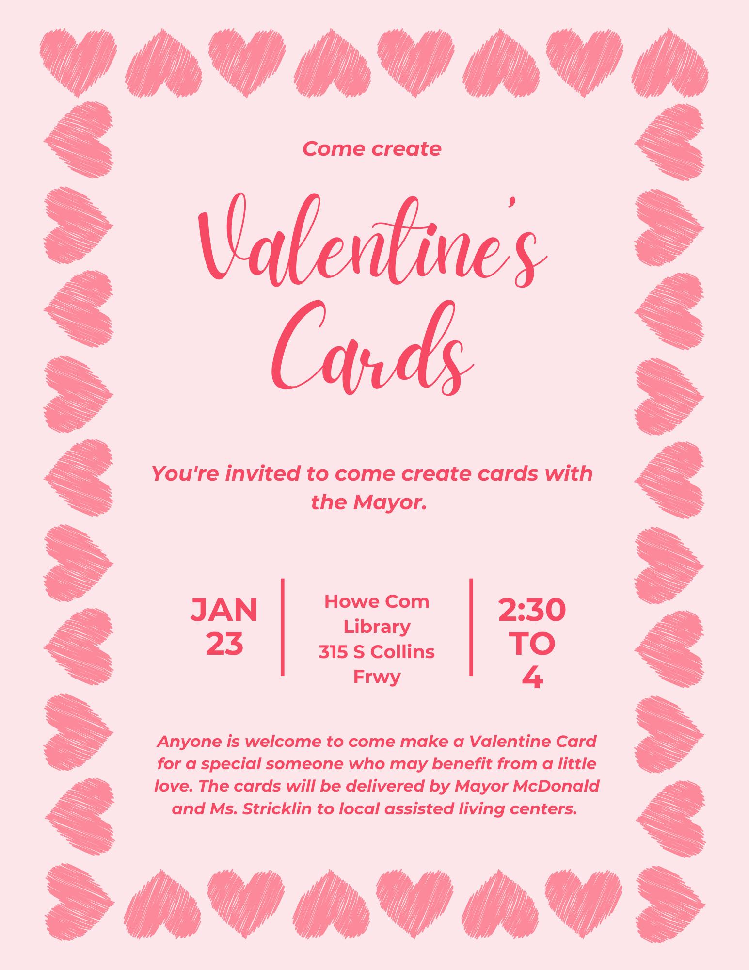 JANUARY23:HoweCommunityLibrary“CreateValentine’sDayCardswiththeMayor”
