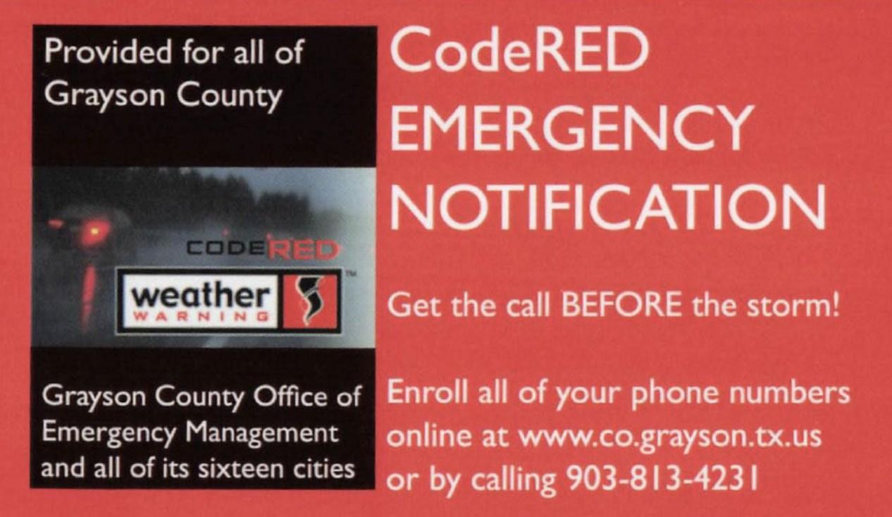 CodeRedishowGraysonCountyandits16 citiesissueautomated weatheralerts,boilwaternotices,andmore. THEPHONENUM-