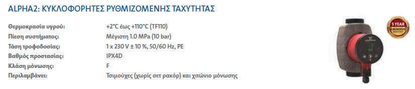 Υψηλής απόδοης κυκλοφορητής χαμηλής ενεργειακής κατανάλωσης(ΙΕΕ ≤0,20).