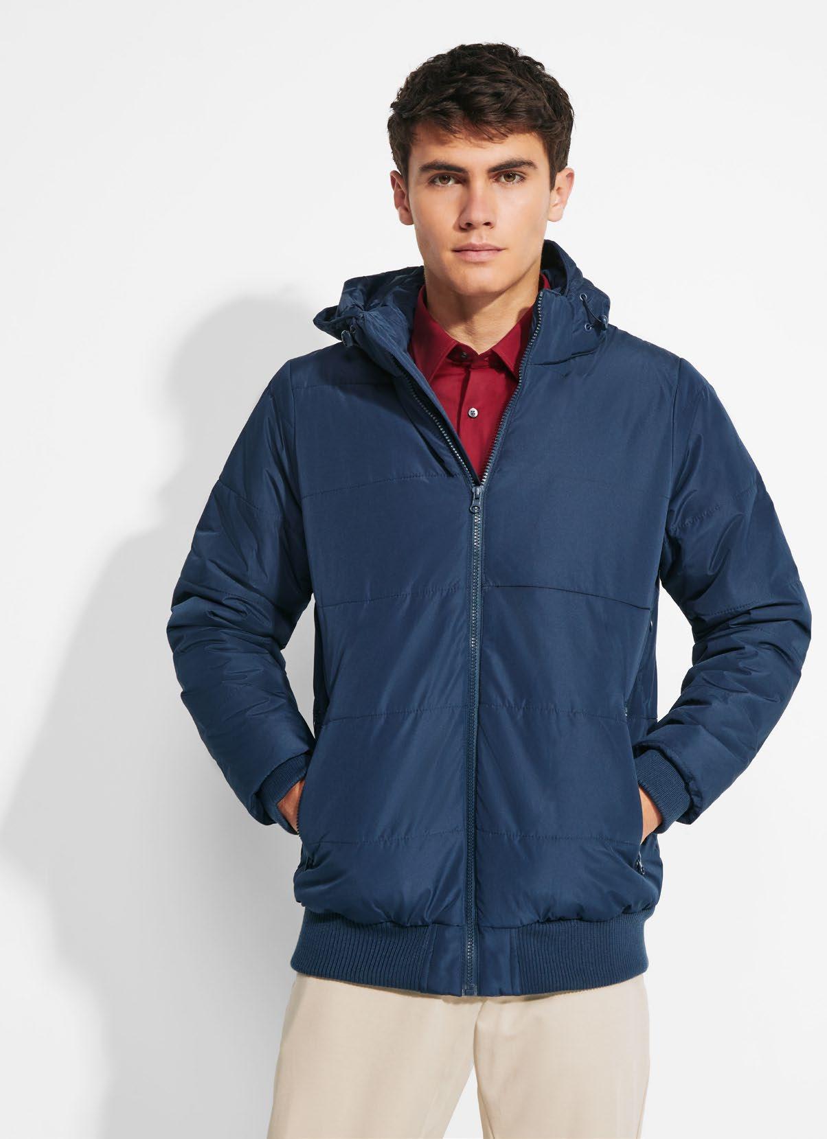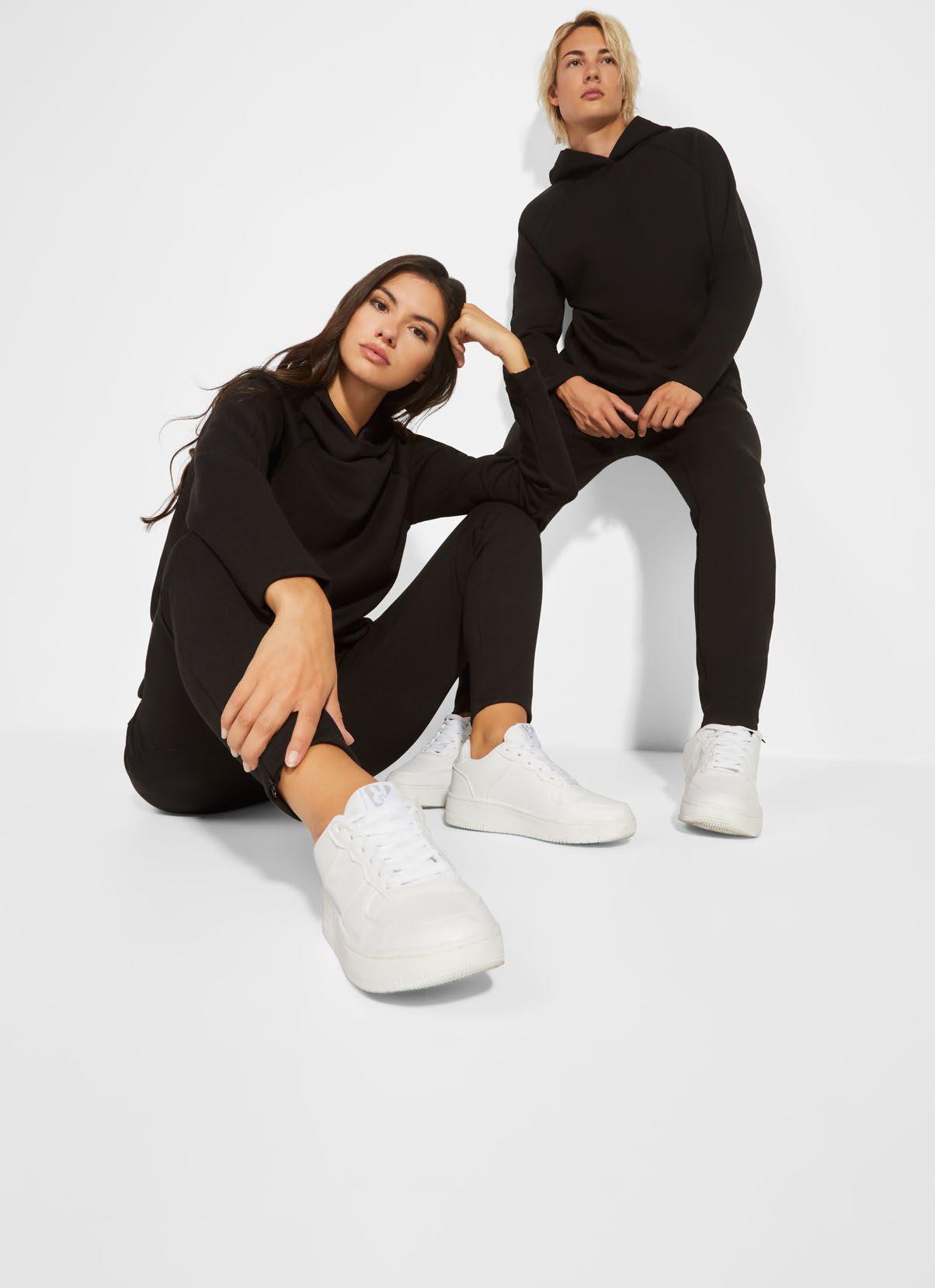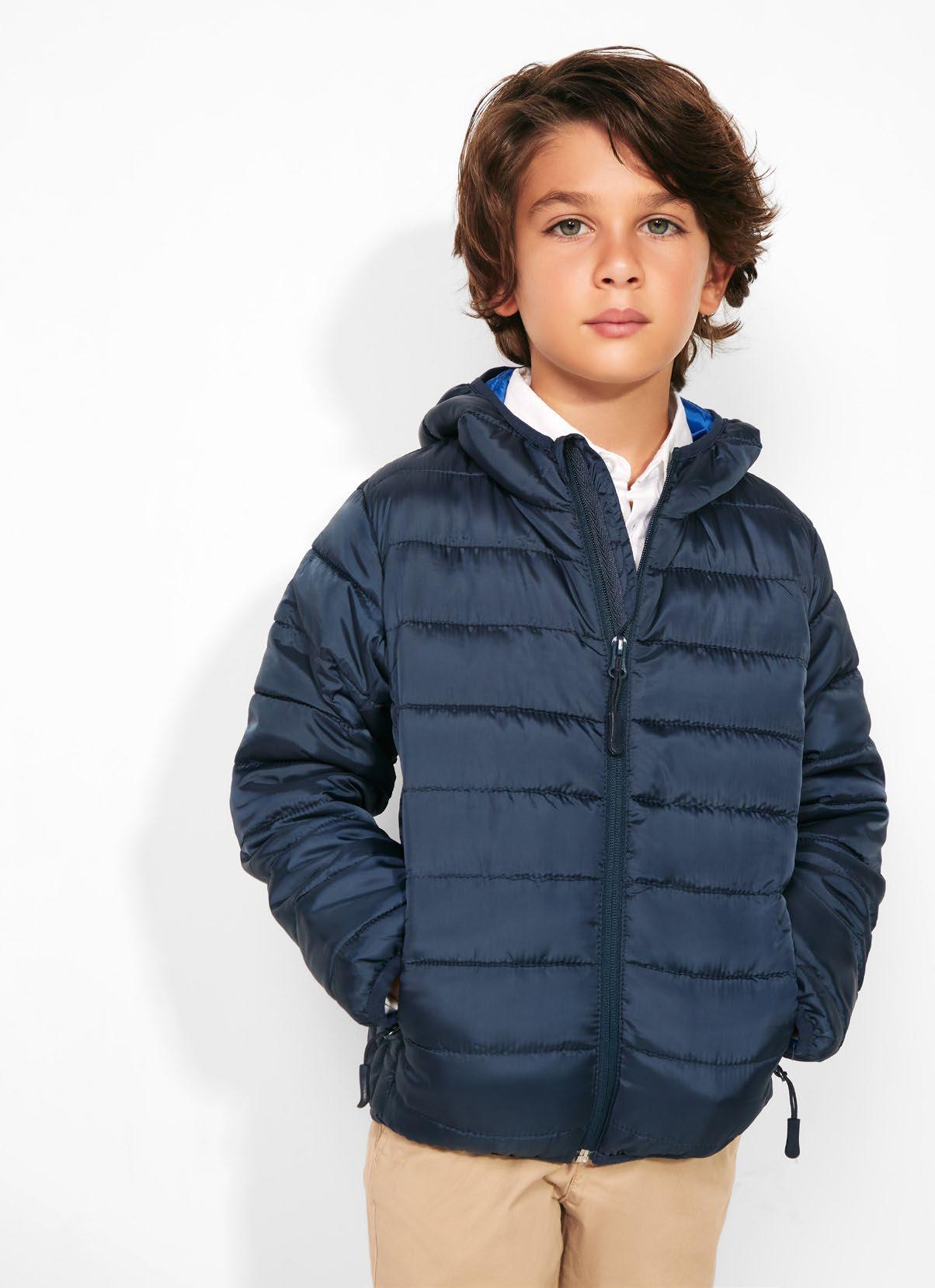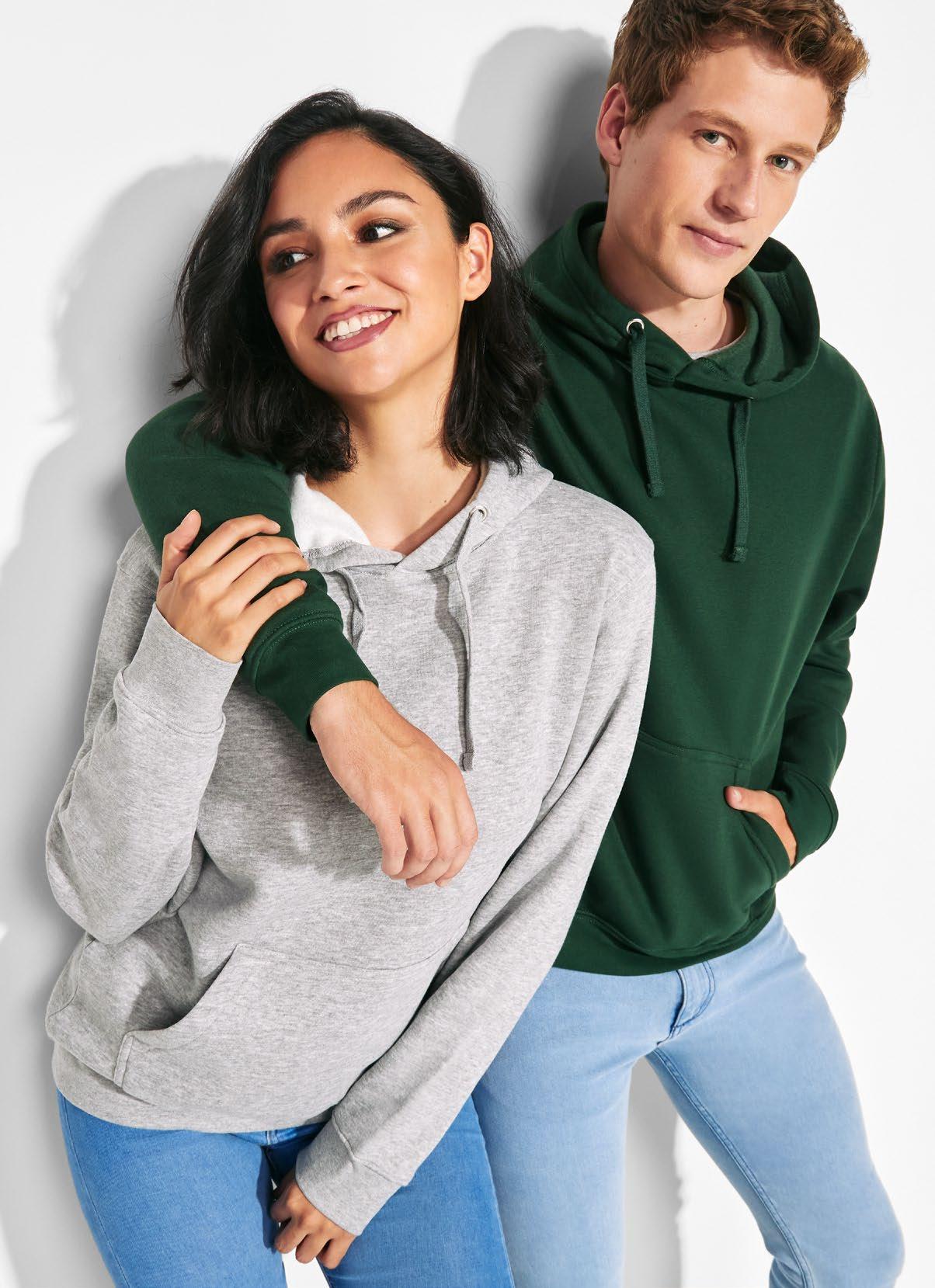 Φούτερ με κουκούλα από ελαφρύ ύφασμα. Πλισέ μονοκόμματη κουκούλα. Ραφές μπροστά, στο πλάι και στο μανίκι. Τσέπες ενσωματωμένες στις πλαϊνές ραφές. Προσαρμογέας από PVC με ελαστικό κορδόνι στη ζώνη μέσης. Ταιριαστό λογότυπο Roly στο αριστερό στρίφωμα.