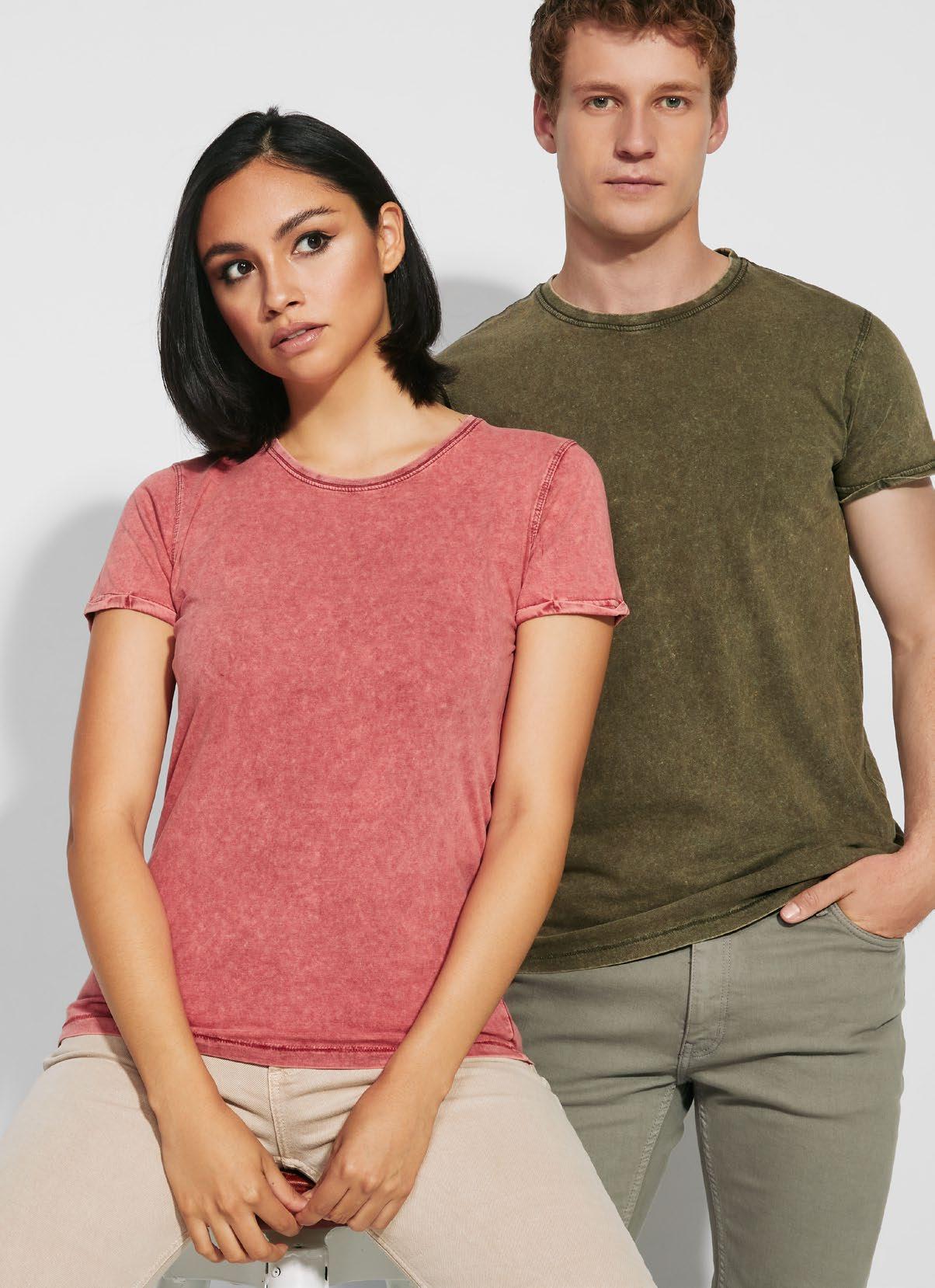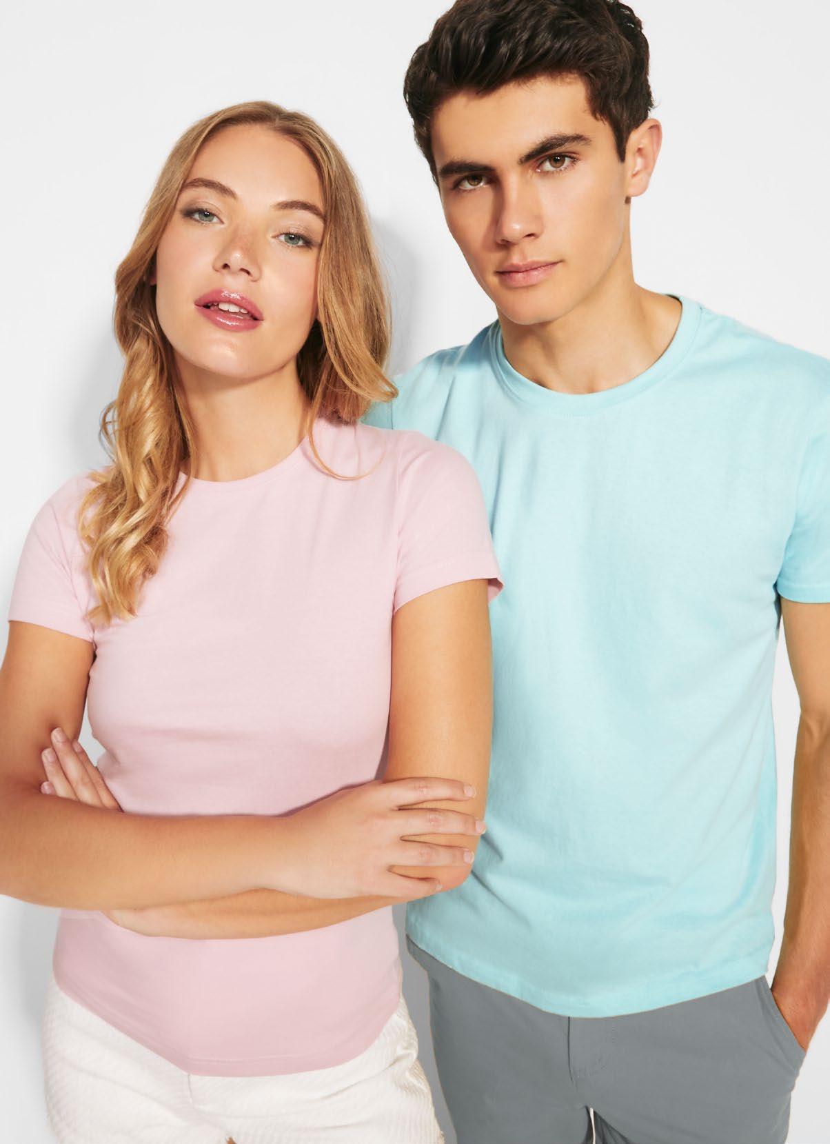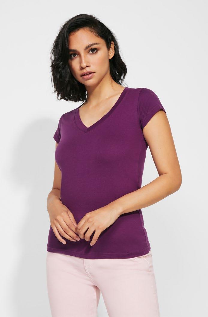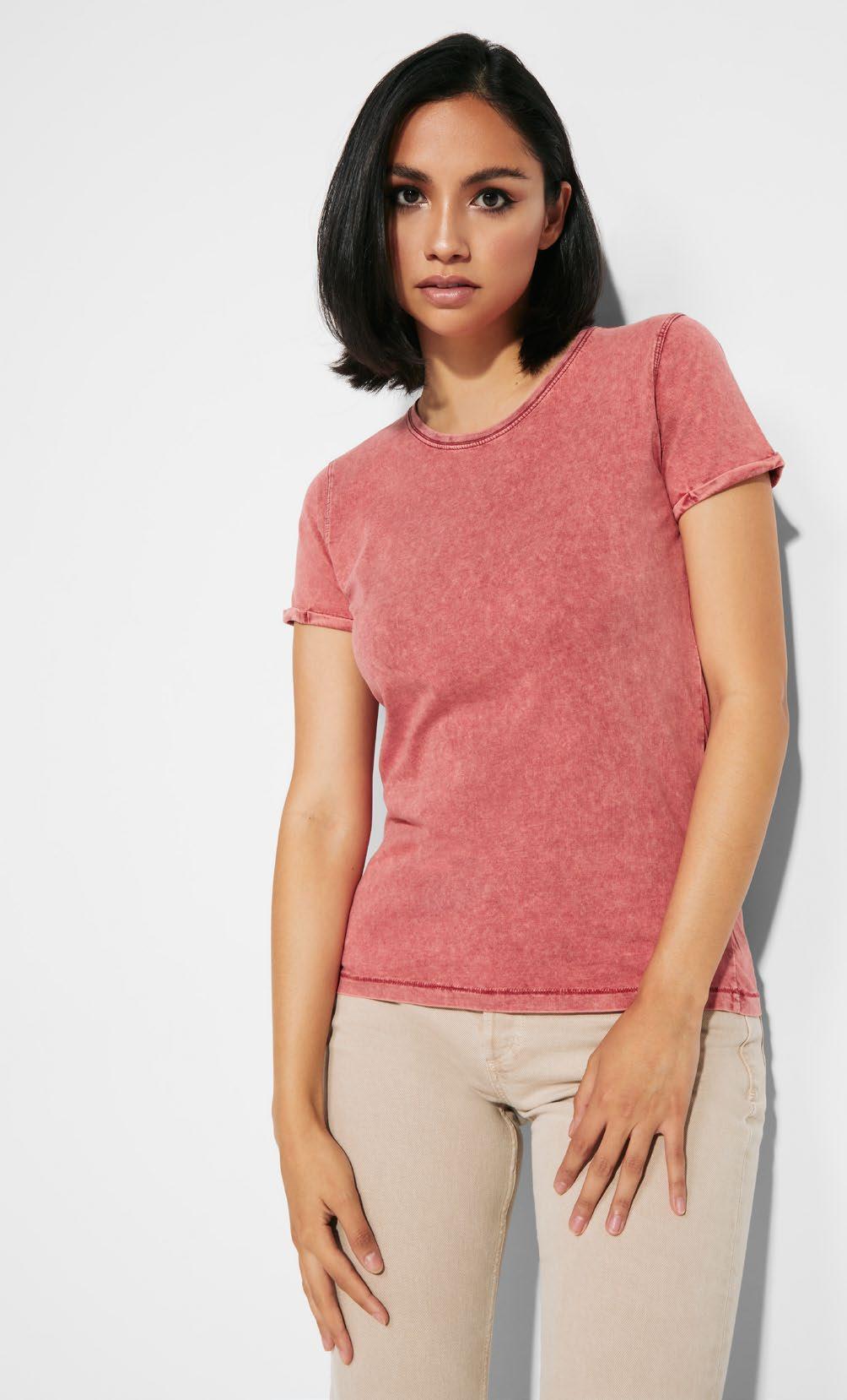 Χοντρό κοντομάνικο βαμβακερό γυναικείο μπλουζάκι. Λαιμόκοψη και μπορντούρα στο μανίκι με ευρεία ύφανση ριπ 2x1. Ενισχυμένες καλυμμένες ραφές στον γιακά. Πλαϊνές ραφές. Ταιριαστό λογότυπο Roly στο αριστερό στρίφωμα. Φαρδιά ραφή στο στρίφωμα.