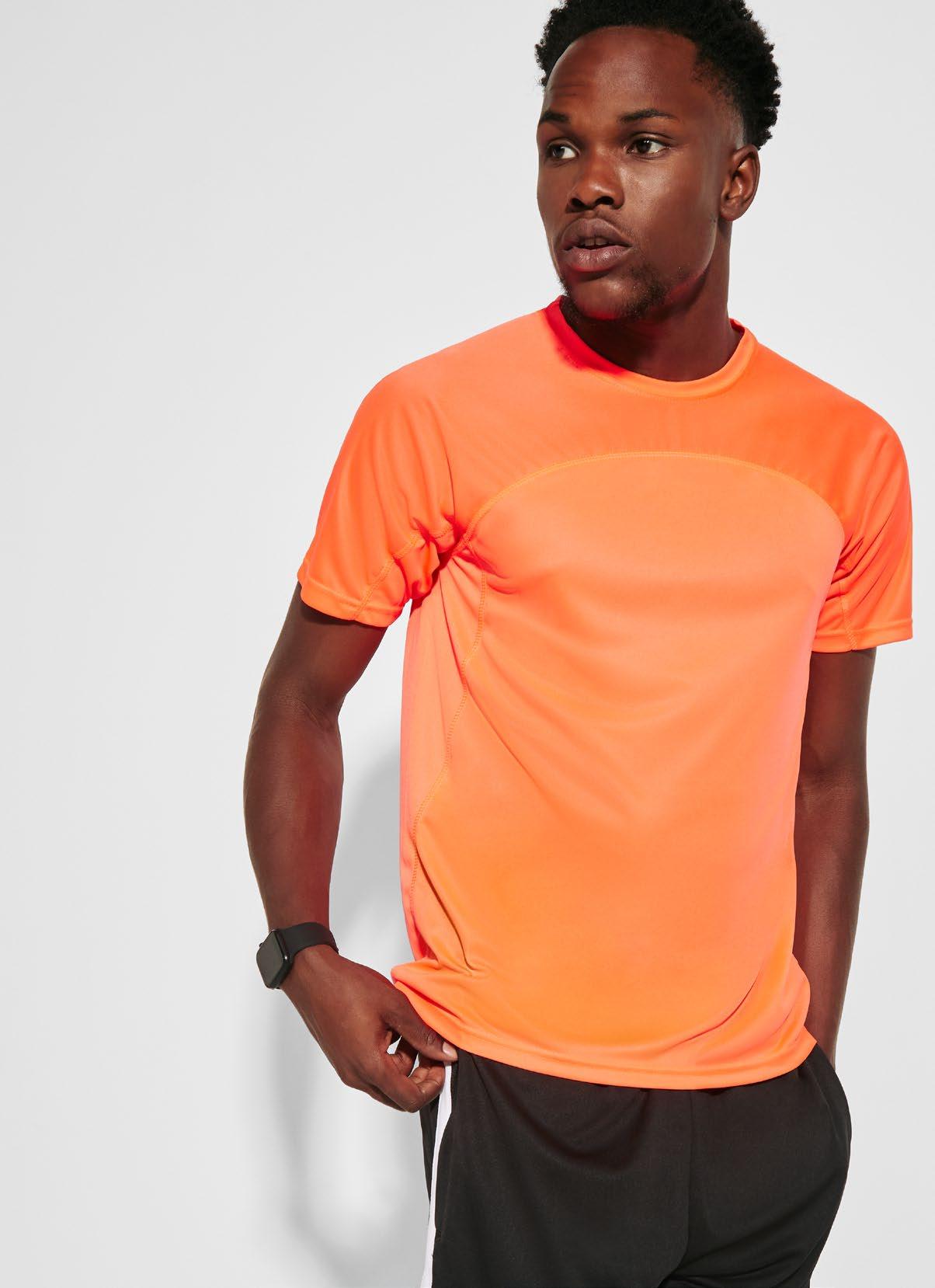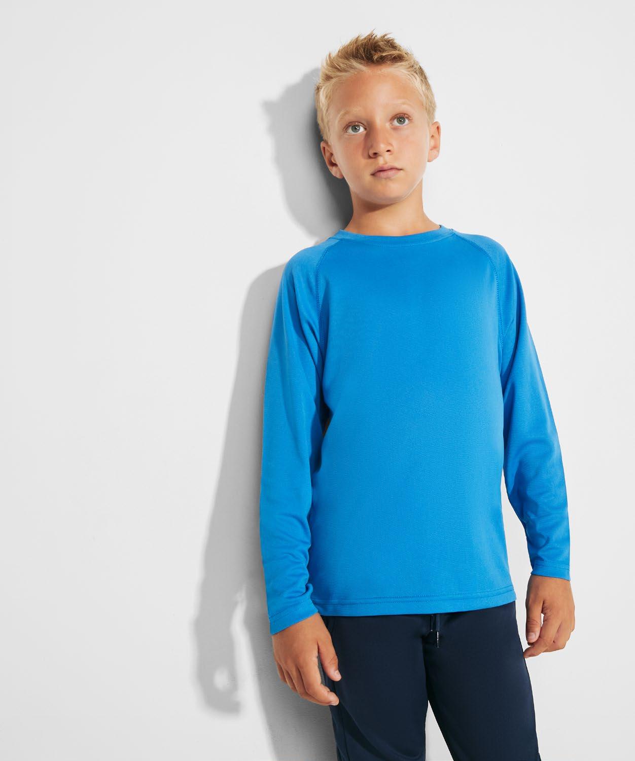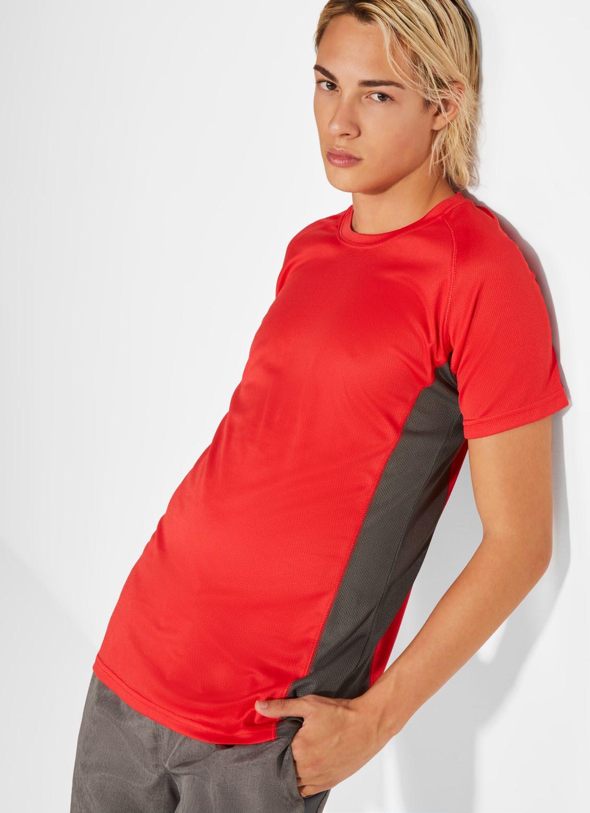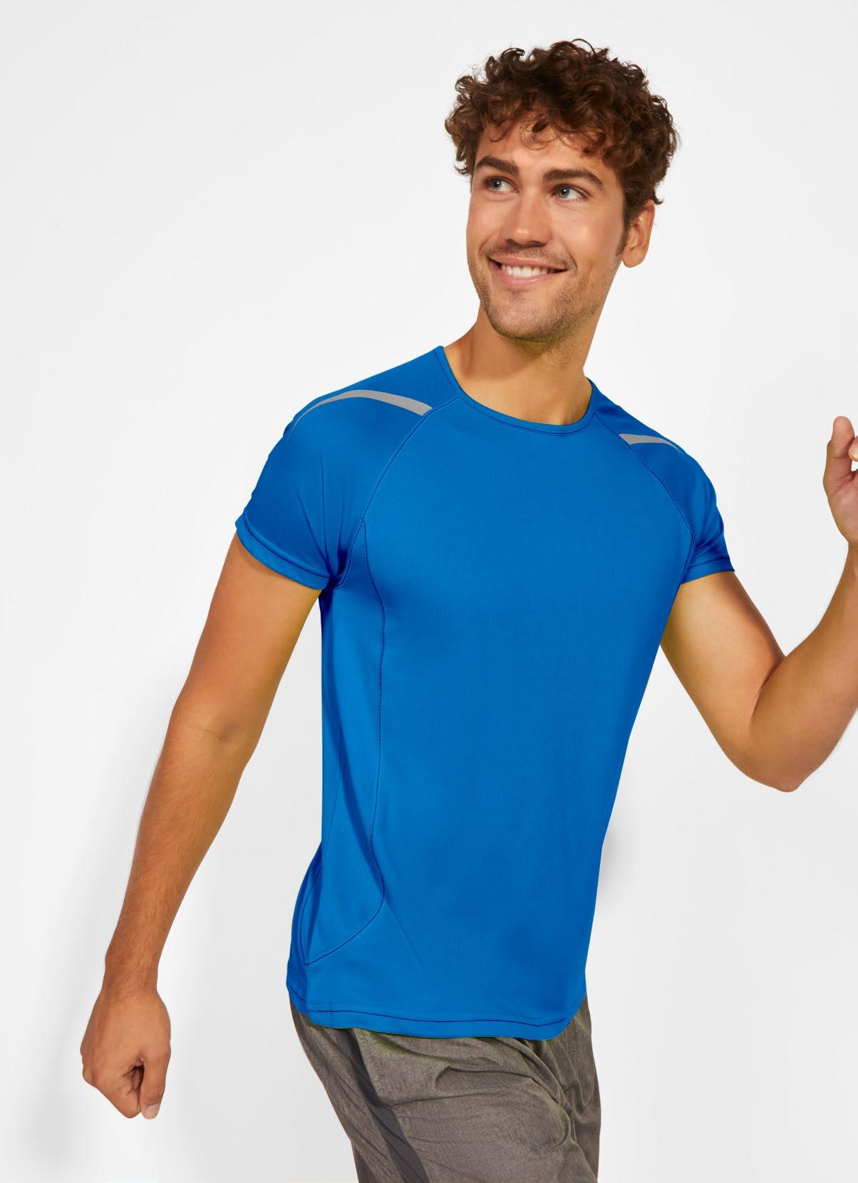 Τεχνικό μπλουζάκι για πολλά αθλήματα με μανίκια ρεγκλάν. Λαιμόκοψη V. Ύφασμα από πολυεστέρα με βαμβακερή αίσθηση. Εφαρμοστό κόψιμο. Στρογγυλό στρίφωμα. Ταιριαστή ενωτική ραφή στο στρίφωμα και στα μανίκια. Λογότυπο Roly υψηλής ορατότητας στο αριστερό στρίφωμα.