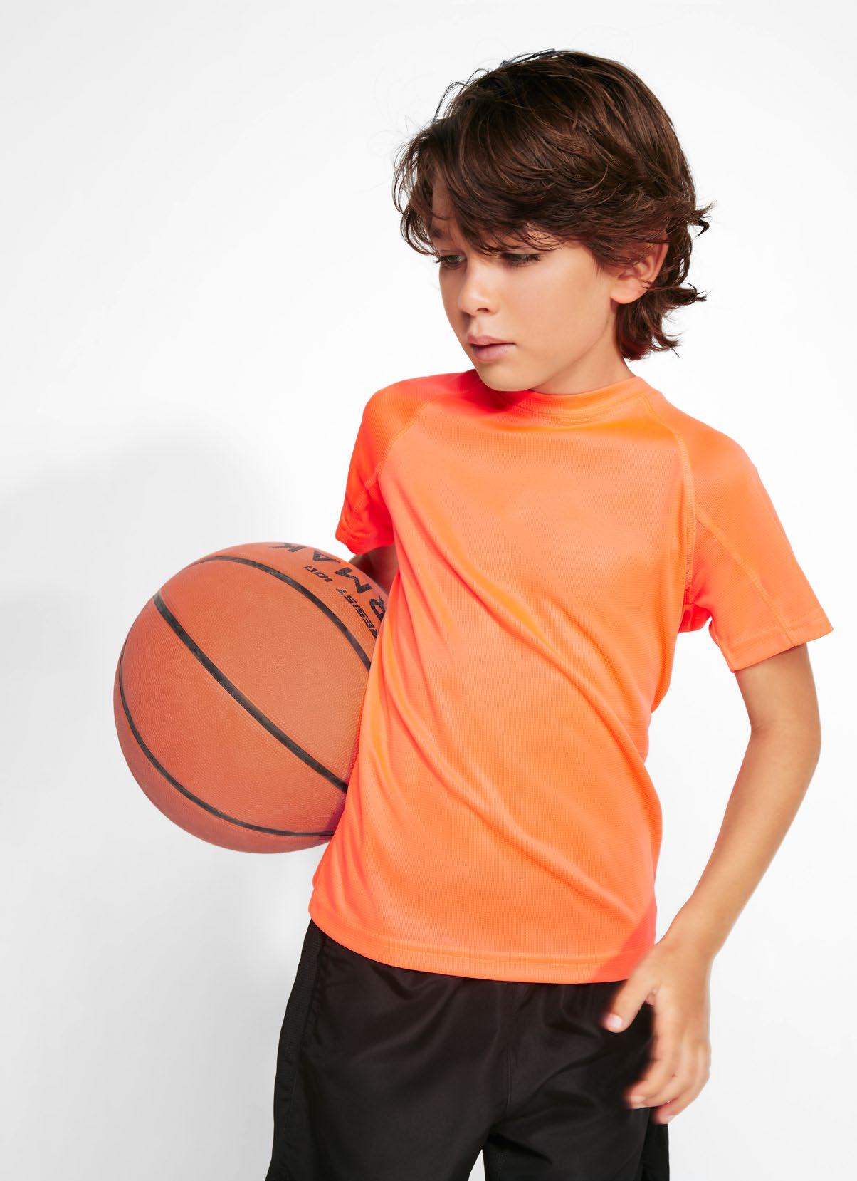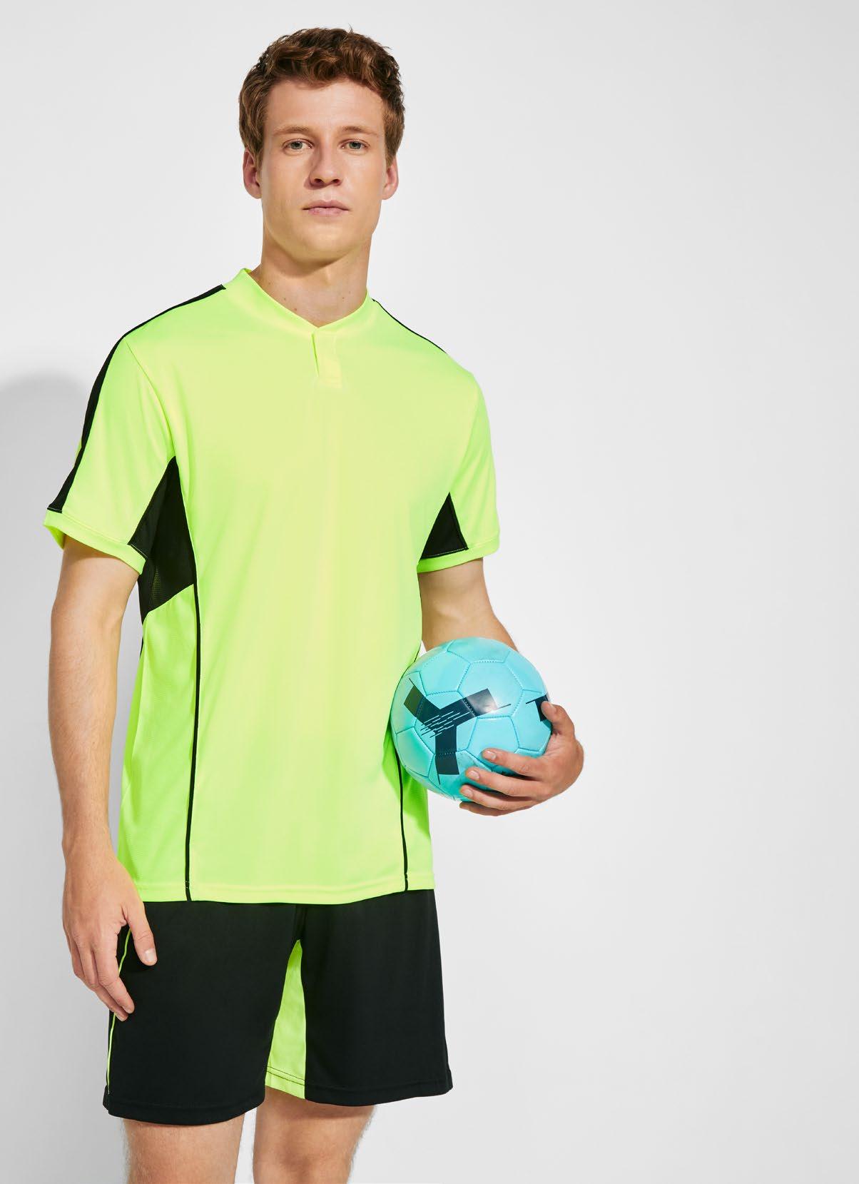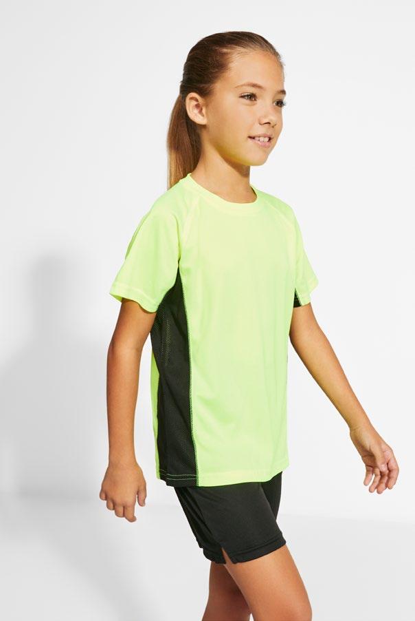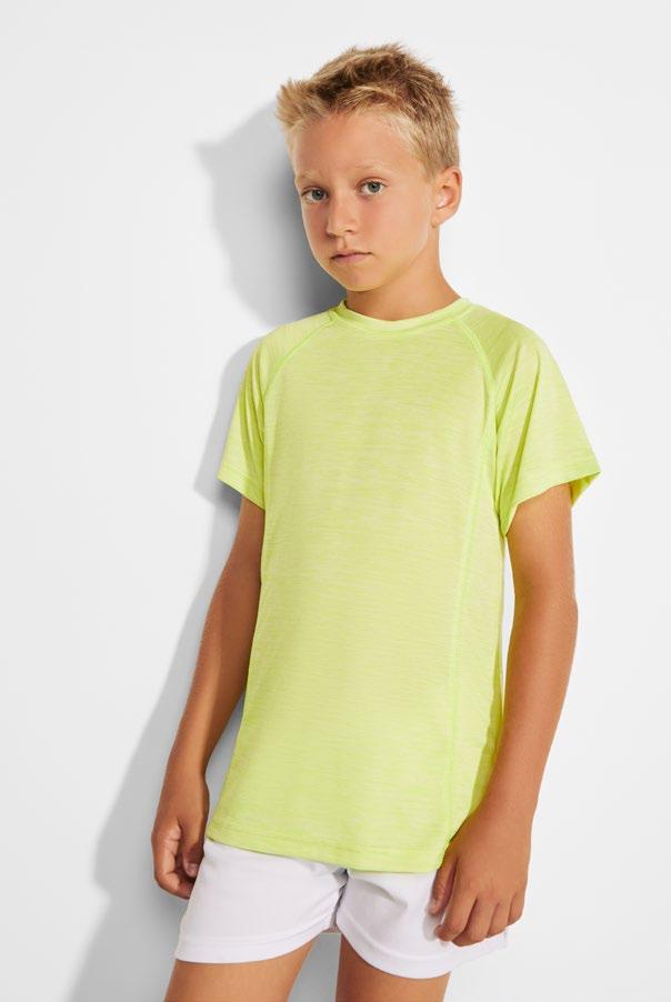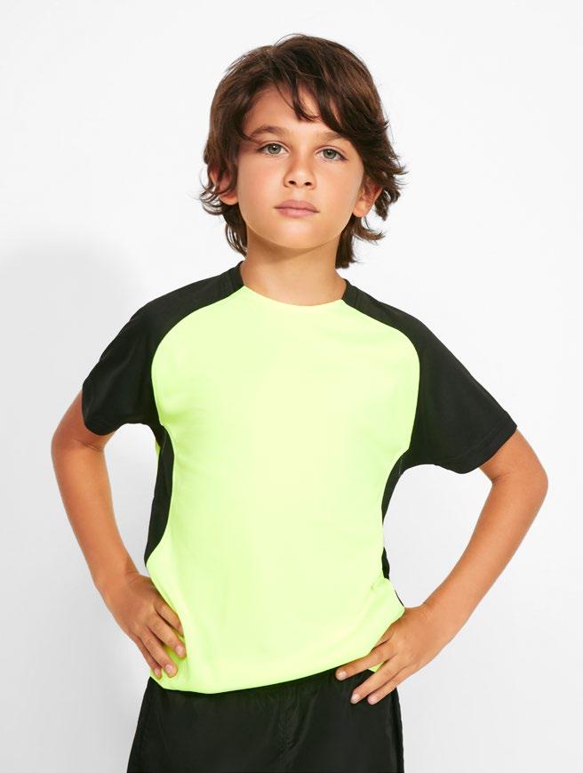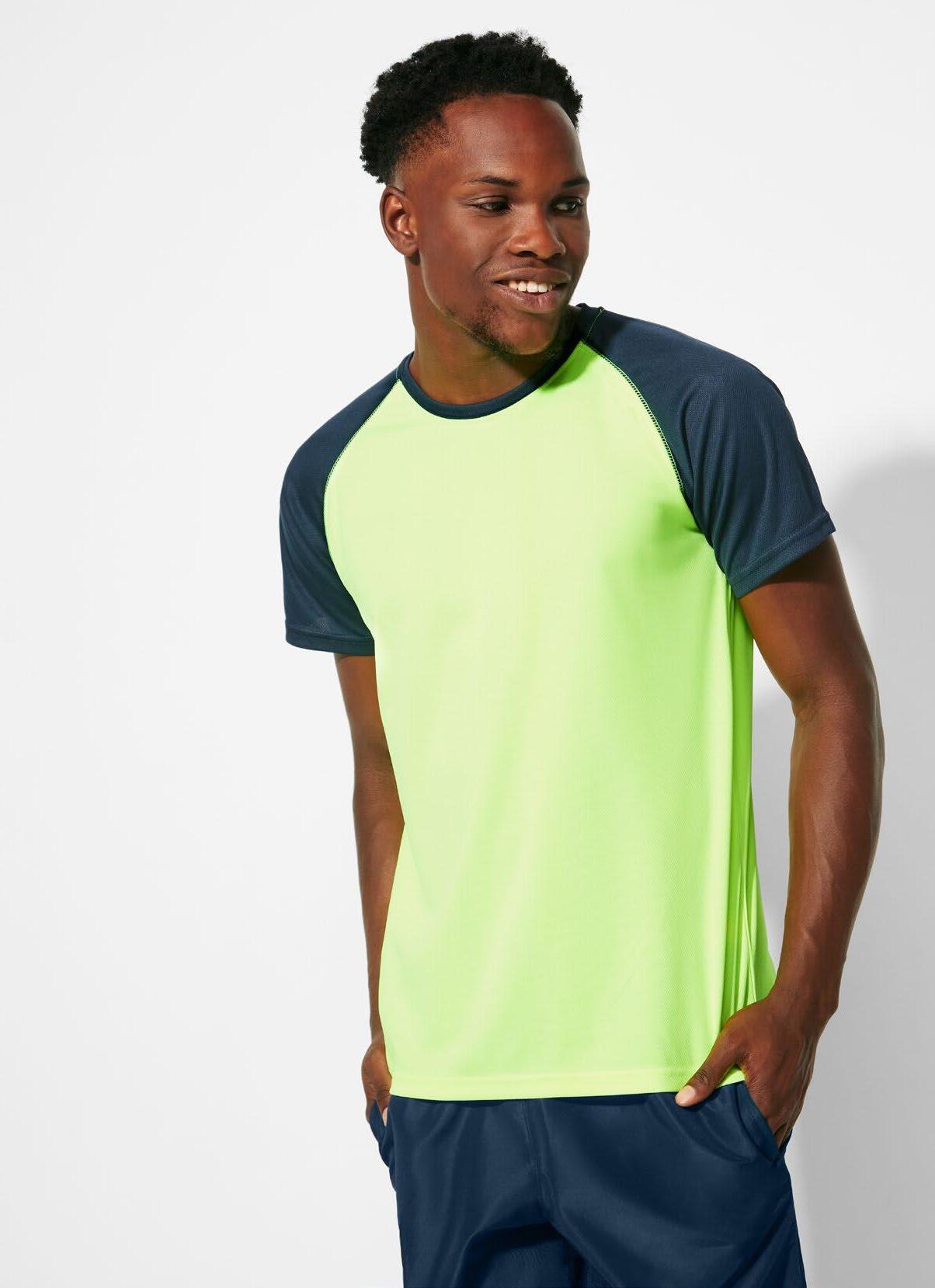 Τεχνικό μπλουζάκι για πολλά αθλήματα με μανίκια ρεγκλάν. Λαιμόκοψη V. Ύφασμα από πολυεστέρα με βαμβακερή αίσθηση. Εφαρμοστό κόψιμο. Στρογγυλό στρίφωμα. Ταιριαστή ενωτική ραφή στο στρίφωμα και στα μανίκια. Λογότυπο Roly υψηλής ορατότητας στο αριστερό στρίφωμα.