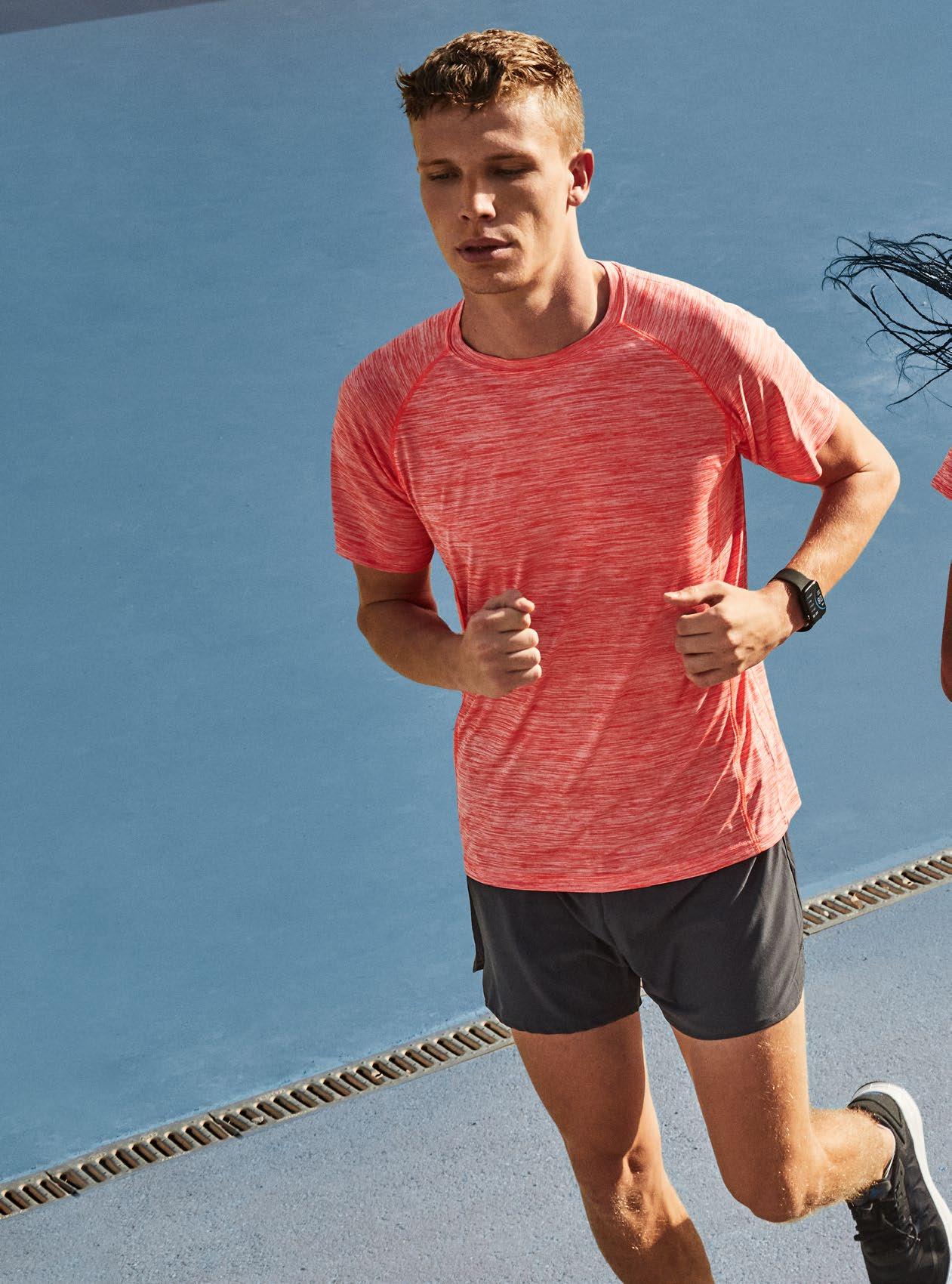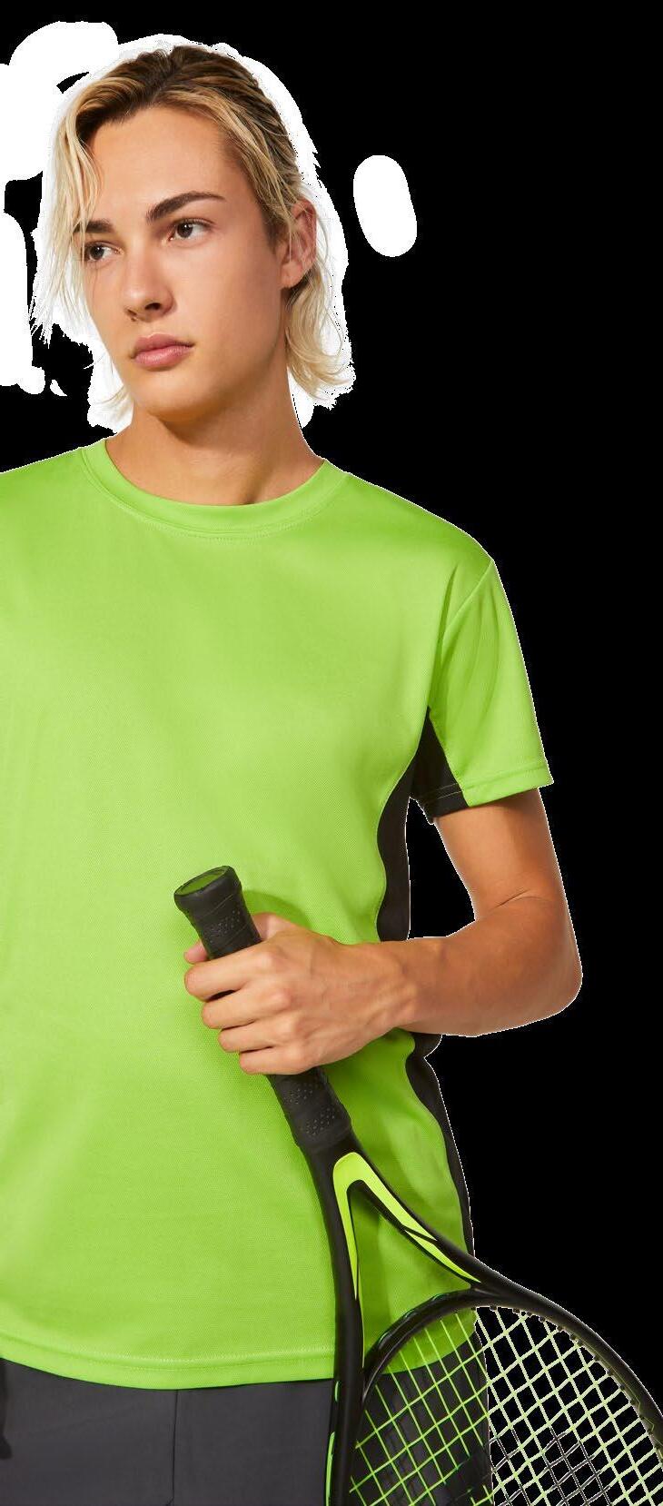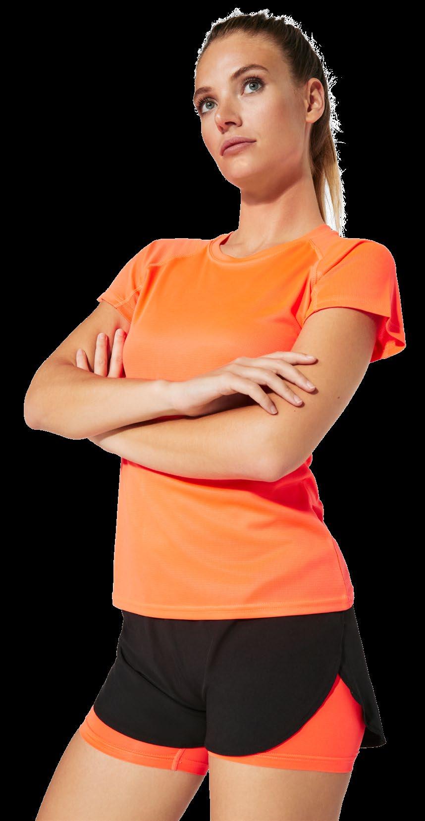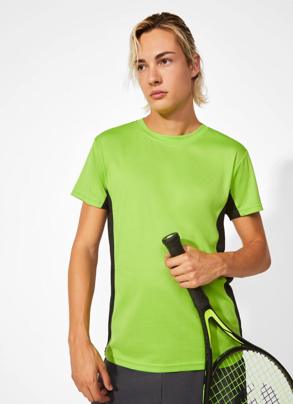 Τεχνικό μπλουζάκι για πολλά αθλήματα με μανίκια ρεγκλάν. Λαιμόκοψη V. Ύφασμα από πολυεστέρα με βαμβακερή αίσθηση. Εφαρμοστό κόψιμο. Στρογγυλό στρίφωμα. Ταιριαστή ενωτική ραφή στο στρίφωμα και στα μανίκια. Λογότυπο Roly υψηλής ορατότητας στο αριστερό στρίφωμα.