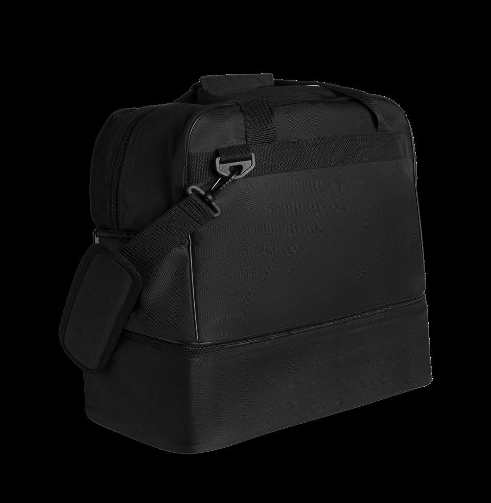Αθλητική τσάντα με διπλή χειρολαβή και μακρύ ρυθμιζόμενο λουράκι για κρέμασμα. Κεντρική τσέπη με διπλό φερμουάρ. Τσέπη για παπούτσια με αποσπώμενη θήκη. Προστασία από την υγρασία. Βάση με σούστες. Εύκολο καθάρισμα.
