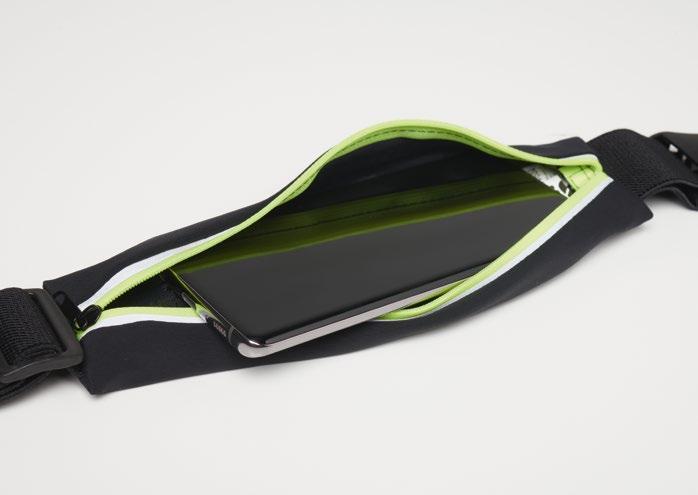 Ζώνη δρομέων από ελαστικό ύφασμα με φερμουάρ υψηλής ορατότητας, άνοιγμα για καλώδιο ακουστικών, πτυσσόμενη τσέπη.