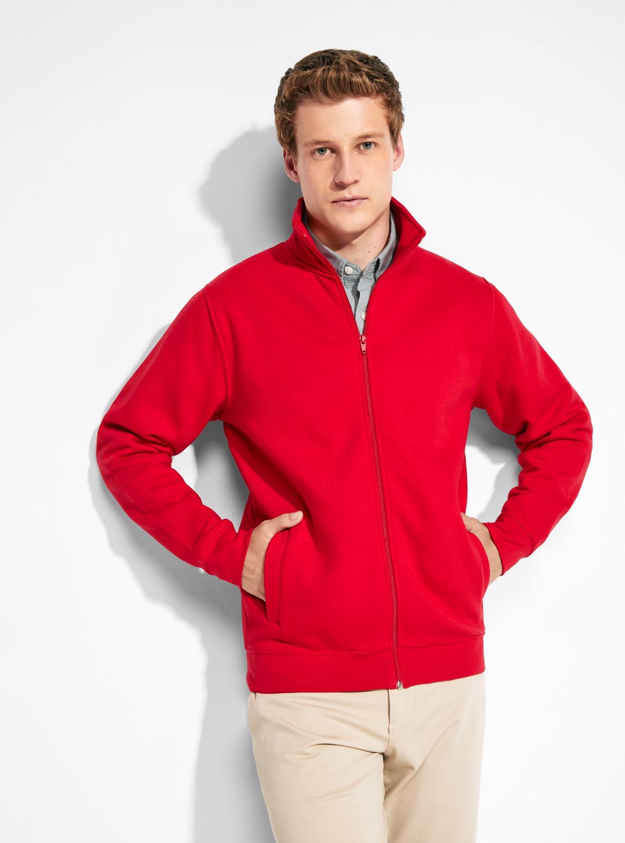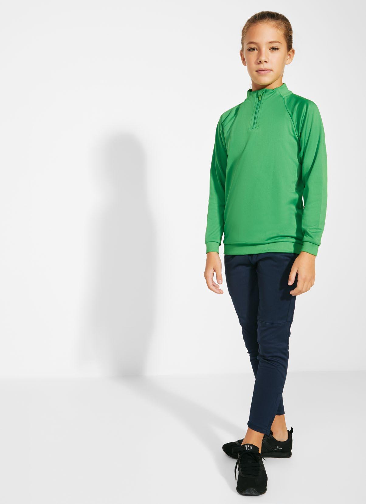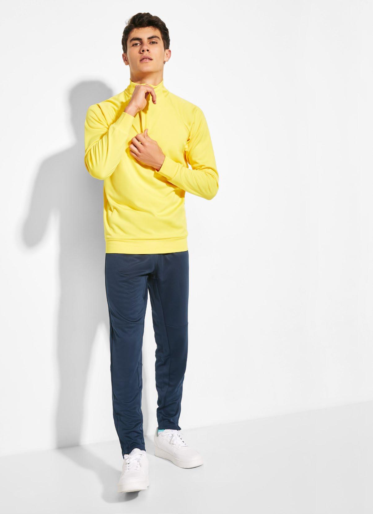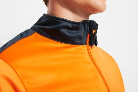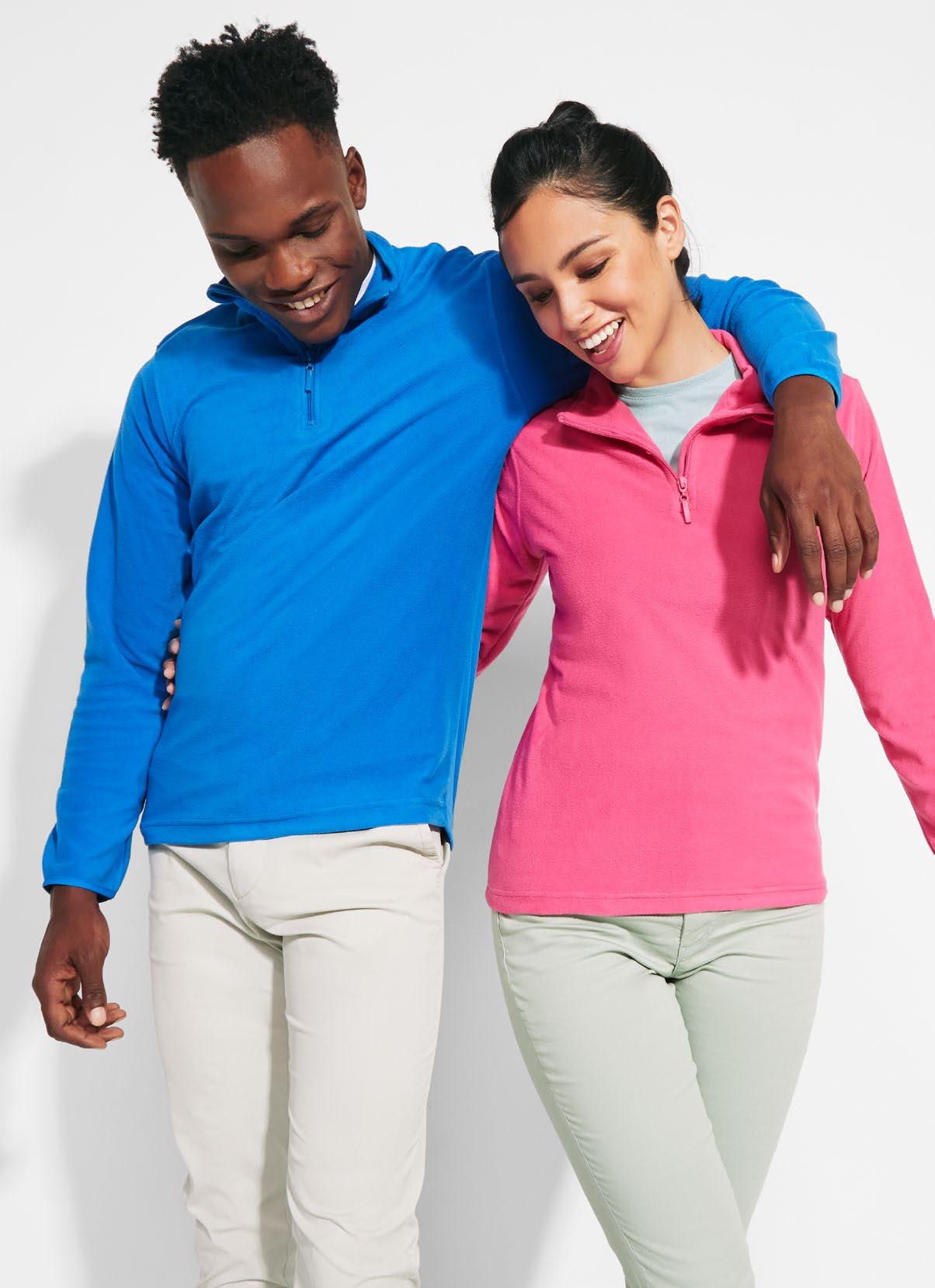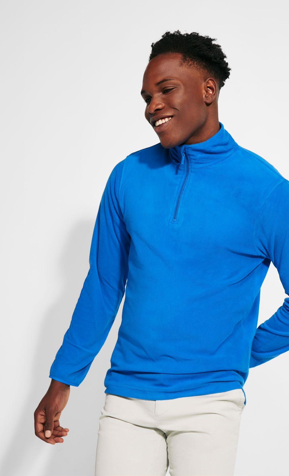 καλυμμένες ραφές στον γιακά. Ταιριαστό αντεστραμμένο μισό φερμουάρ με λεπτομέρεια υψηλής ορατότητας. Τρύπα για αντίχειρα στις μανσέτες. Ενωτικές ραφές σε μανίκια ρεγκλάν και πλαϊνές επιφάνειες. Λογότυπο Roly υψηλής ορατότητας στην αριστερή επιφάνεια.