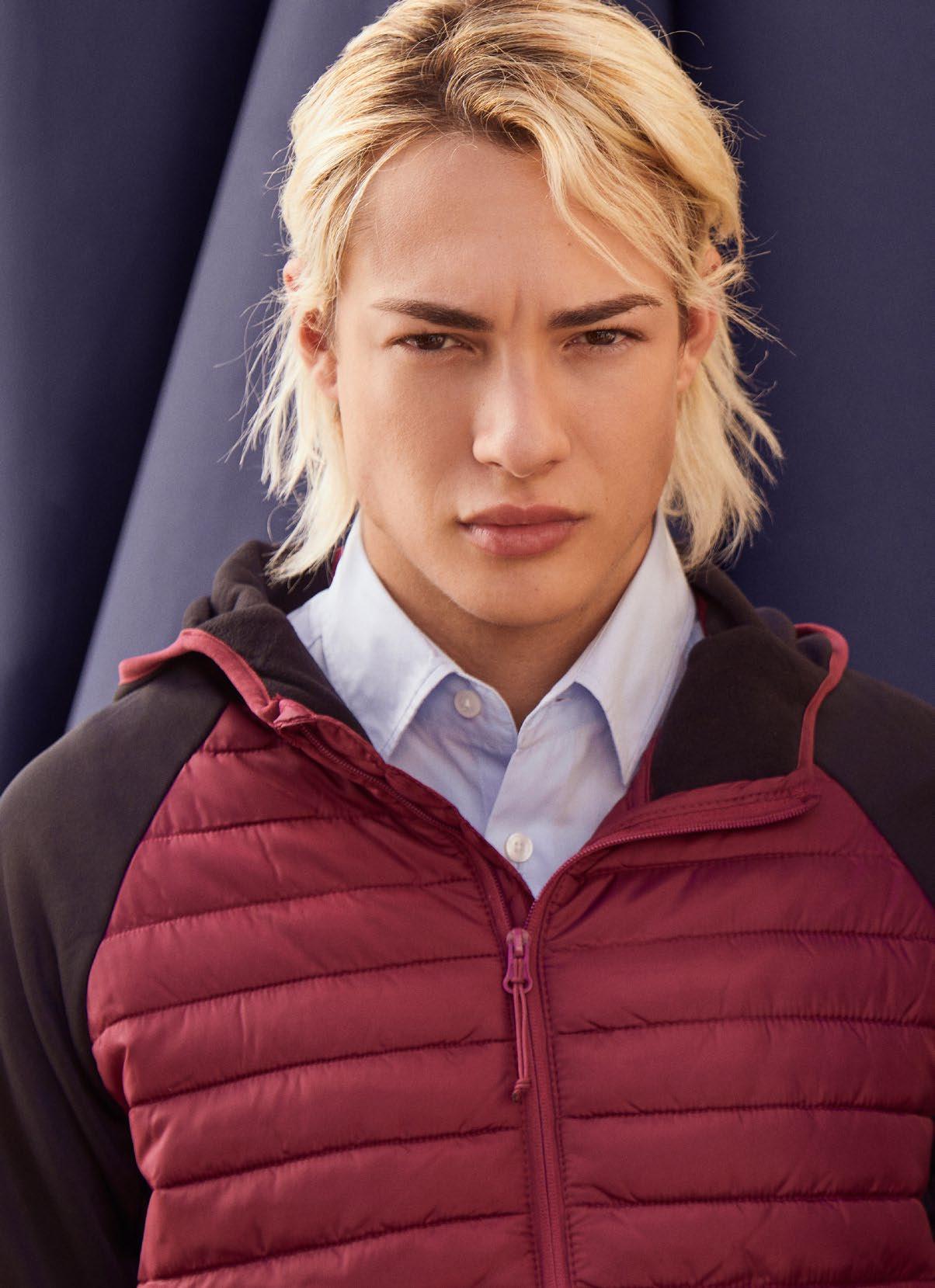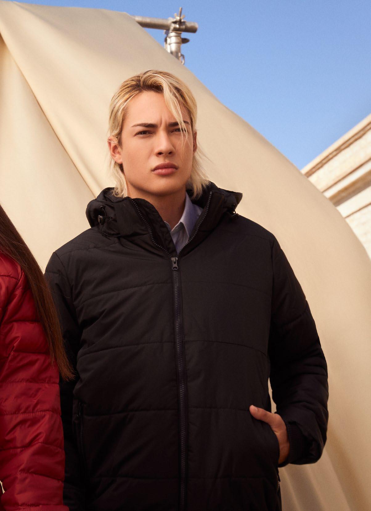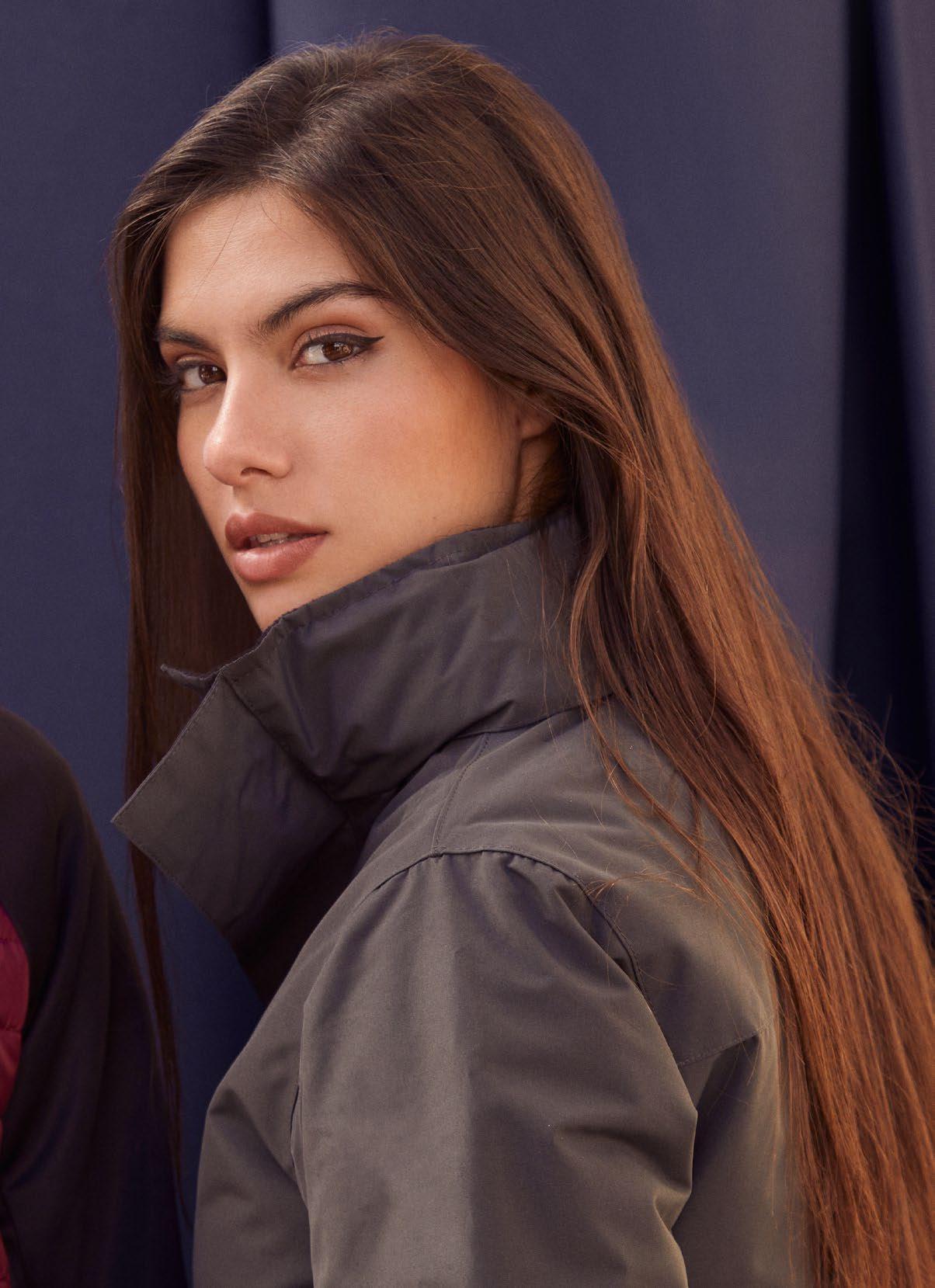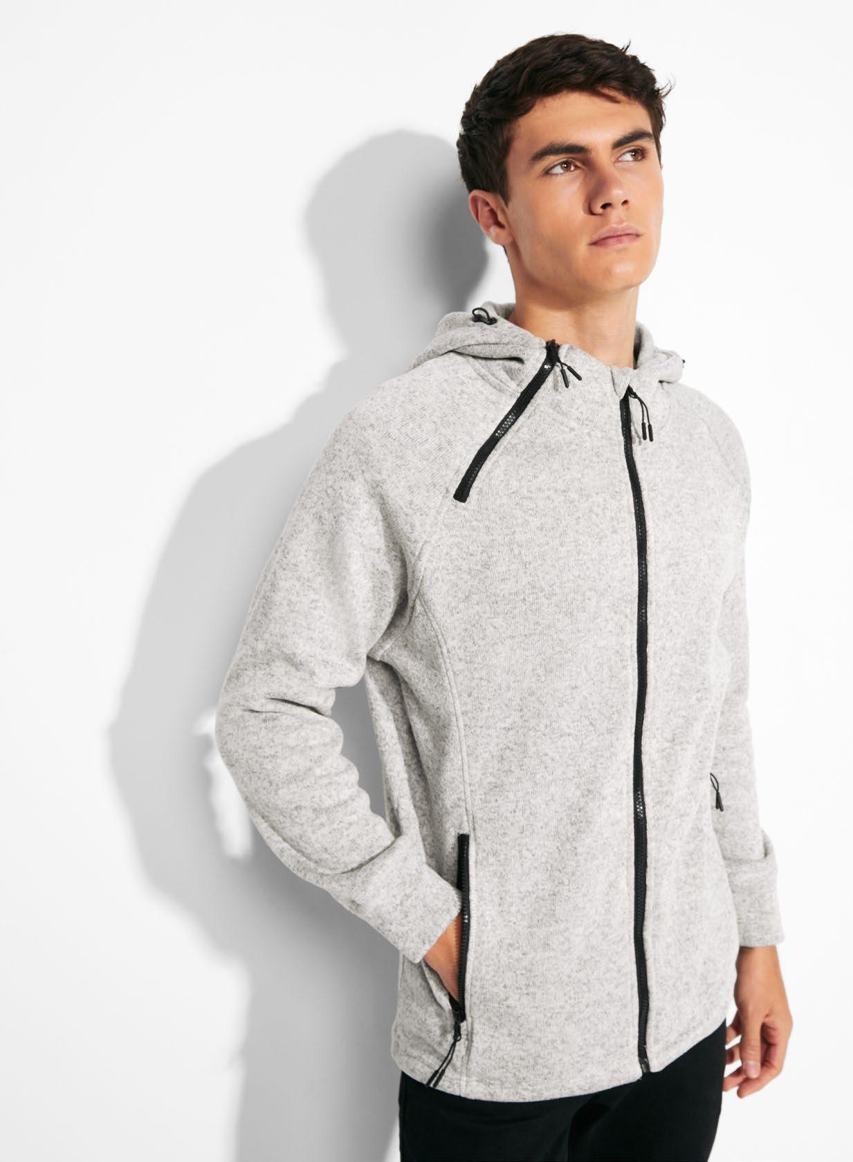· Γιακάς και μανίκια με ύφανση ριπ 1x1.