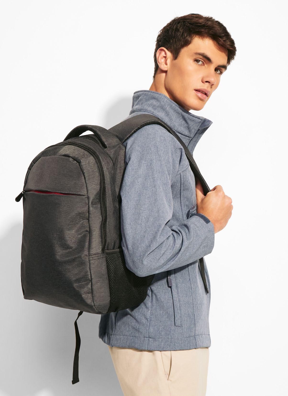 Σακίδιο με ειδική θήκη για φορητό υπολογιστή, δύο θήκες, μία μπροστινή τσέπη με φερμουάρ, δύο πλαϊνές από διάτρητο ύφασμα, χερούλι & ενισχυμένα λουριά.