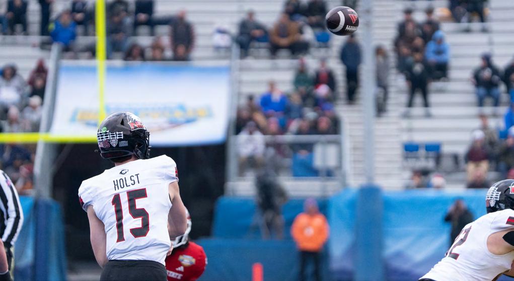 Northern Illinois University quarterback Josh Holst (15) earned MVP honors in the Famous Idaho Potato Bowl game for his performance as he threw for 182 yards and two touchdowns. He was also NIU’s leading rusher with 65 yards.