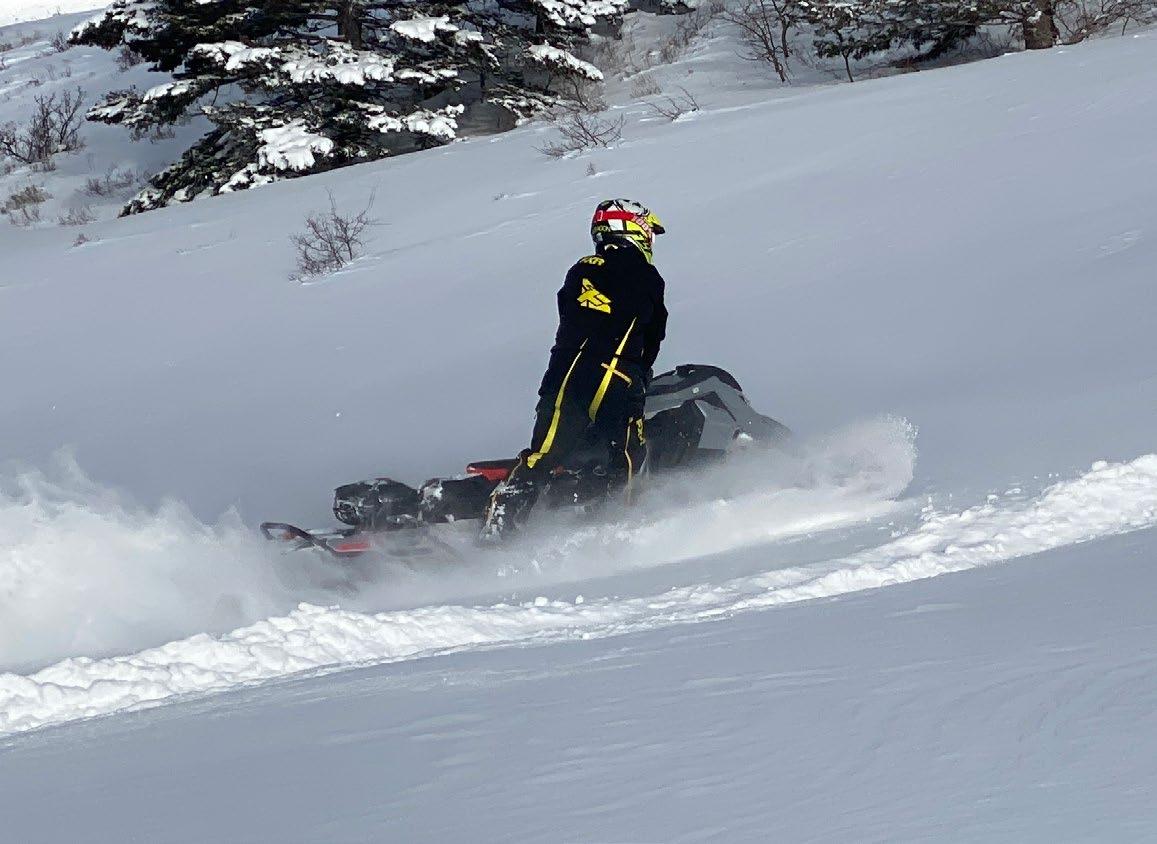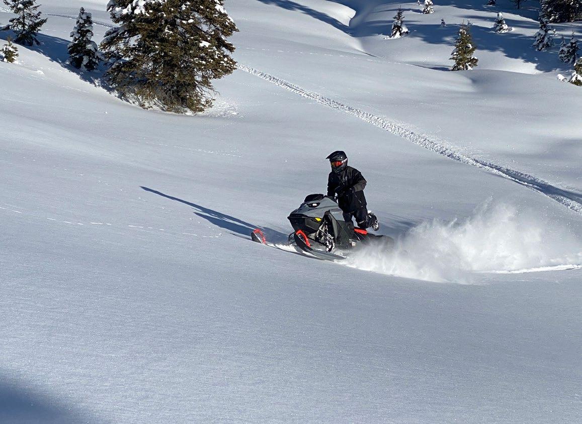 “Once we got off the trails and into the better snow up high, again I found the Turbo R very easy to control. I could swerve from side to side and the snowmobile felt responsive and balanced.