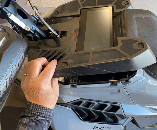 (top) This is a simple accessory that will make those deep powder days even more enjoyable. (above) Simply remove the three hex screws which hold each of the two hood filters found on your snowmobile. The hex tool can be found on your snowmobile.