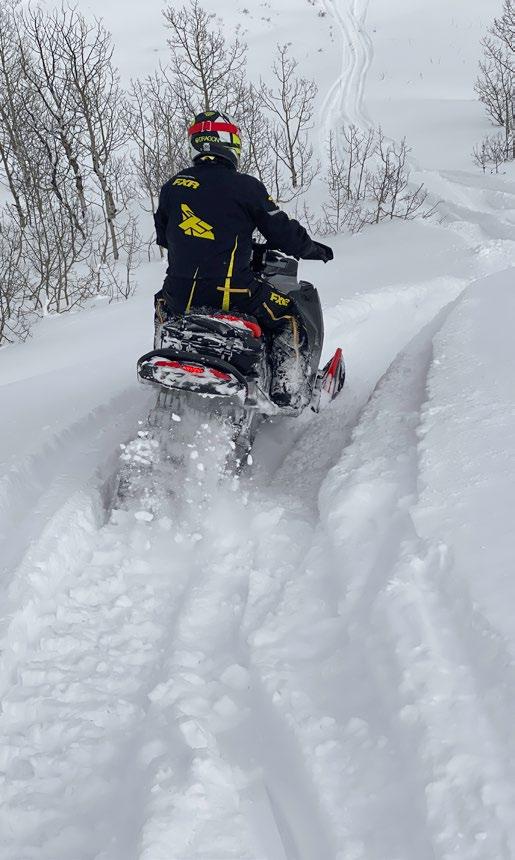 easier to judge the power and throttle response. I was never wanting for power on the 850. You could climb any of the hills and the power was always there. With the Turbo R, the first time I went up a long steep hill the sled started tail walking until I figured out I needed to back off the throttle and manage the power. It wasn’t like it was out of control, but I did want to be able to control the direction with the skis.
