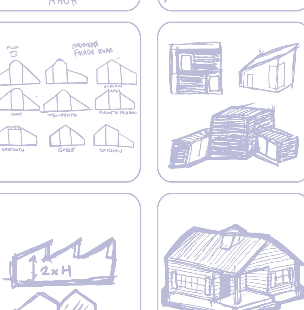 For my project, I developed a series of modules depending on user group and based on square footage requirements. Each unit features the same general layout and features. At the entrance a bump back creates a psuedo front porch, the entry door reveals the kitchen and gathering places with bedrooms pushed back into corners/niches of the plan. Each unit has a dedicated “backyard” or balcony. The driving concept with my modules was the development of unique spaces with surfaces for work/play/community.