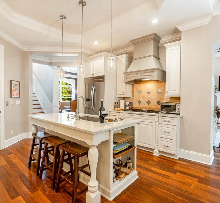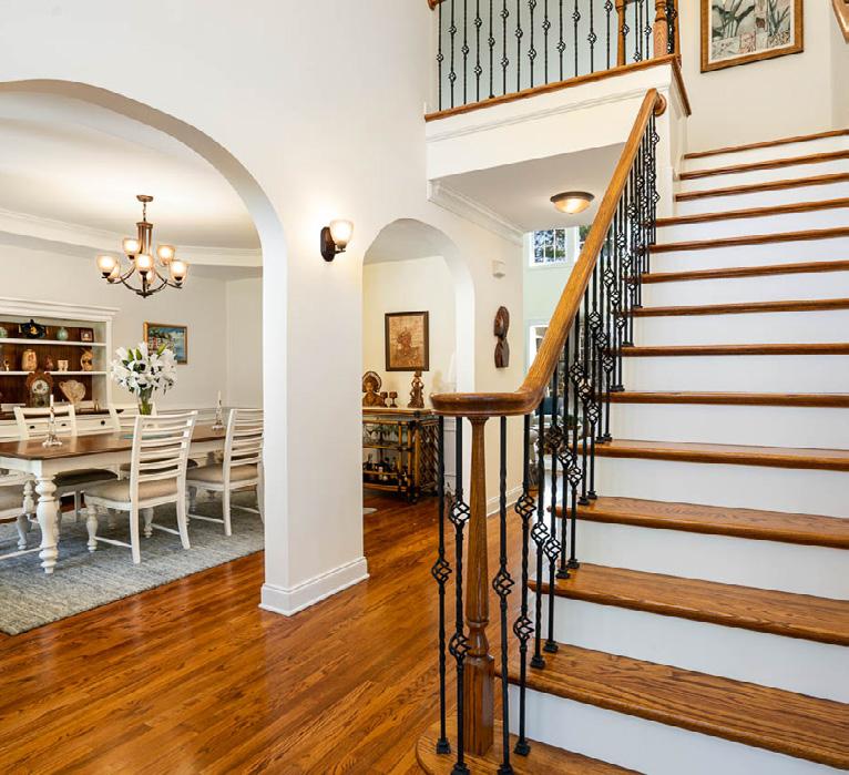 JAY WALDEN REALTOR (919) 444-1540 JayWalden@HPW.com VISIT MY WEBSITE BEDROOMS 4 BATHROOMS 3 TOTAL SQ FT 3612 MLS # 2479112 Updated home, coveted location across from pool and amenities and walking distance to golf clubhouse! Refinished Brazilian Cherry floors and many new light fixtures. Living room coffered ceiling and double-sided fireplace. Kitchen updated with painted cabinets, quartz counters and light fixtures. Primary suite on main with large windows overlooking nature buffer and stream on 2nd fairway. Upstairs 3 bedrooms, 2 baths w/ fresh paint & carpet and bonus room. Lower level two flex rooms. 97 MOUNTAIN HEATHER, CHAPEL HILL, NC 27517 | $869,500
