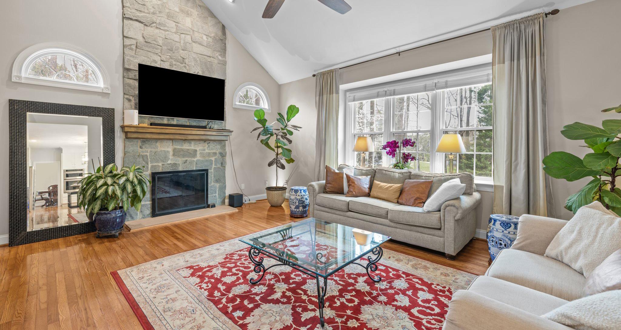 Welcome to this prestigious Toll Brothers Home in the exclusive Hasentree Golf and Country Club Community. The inviting rocking chair front porch leads to a stunning two-story foyer. Recently upgraded with engineered hardwoods throughout the main level (except bathroom and laundry), plus new lighting and ceiling fans. The heart of the home features a dramatic twostory family room with custom white stone fireplace, floating shelves, and built-in cabinets. The gourmet kitchen boasts new tile backsplash, premium stainless appliances, walk-in pantry, and breakfast area. The luxurious owner’s retreat includes a tray ceiling, sitting area, and Closets by Design walk-in closets. The spa-like ensuite offers dual vanities, soaking tub, and walk-in shower. The 2,329 sq ft unfinished basement is plumbed for a potential in-law suite with a kitchen. listed by: