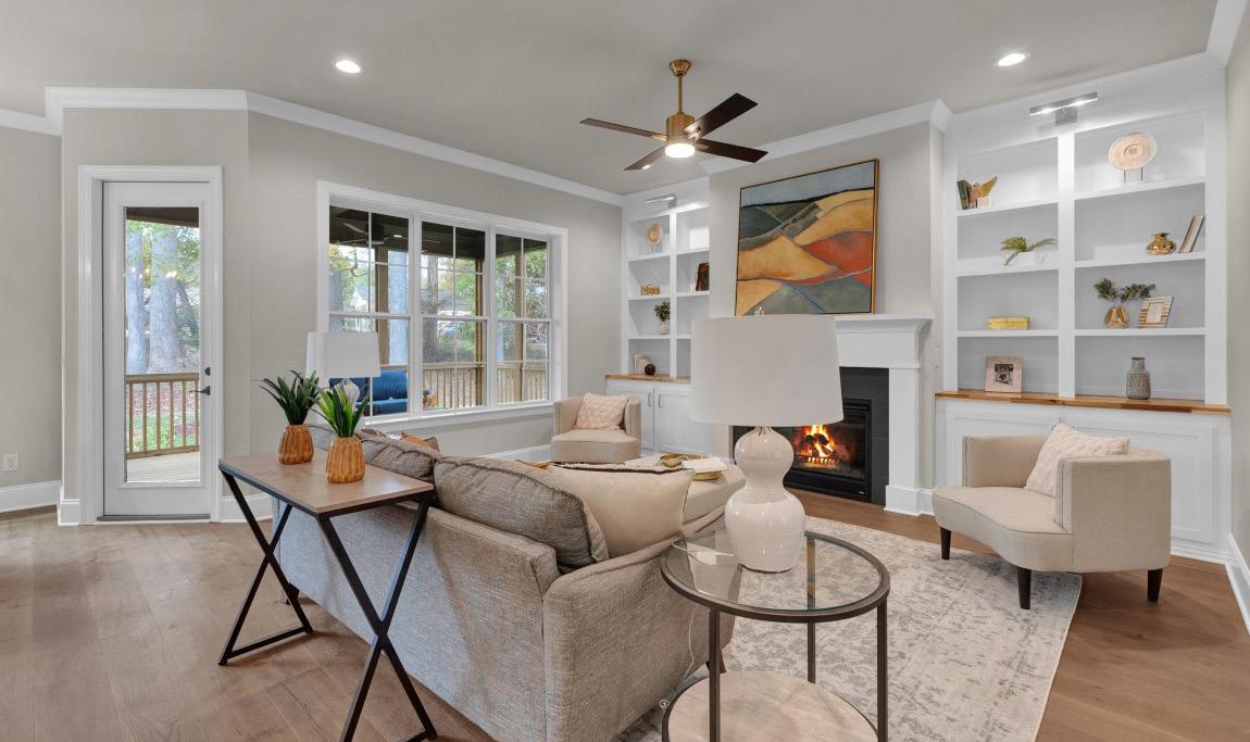 w/Quartz Countertop!FamilyRrrm: Tile Surround Gas Log Fireplace, Built in Cabs w/Display