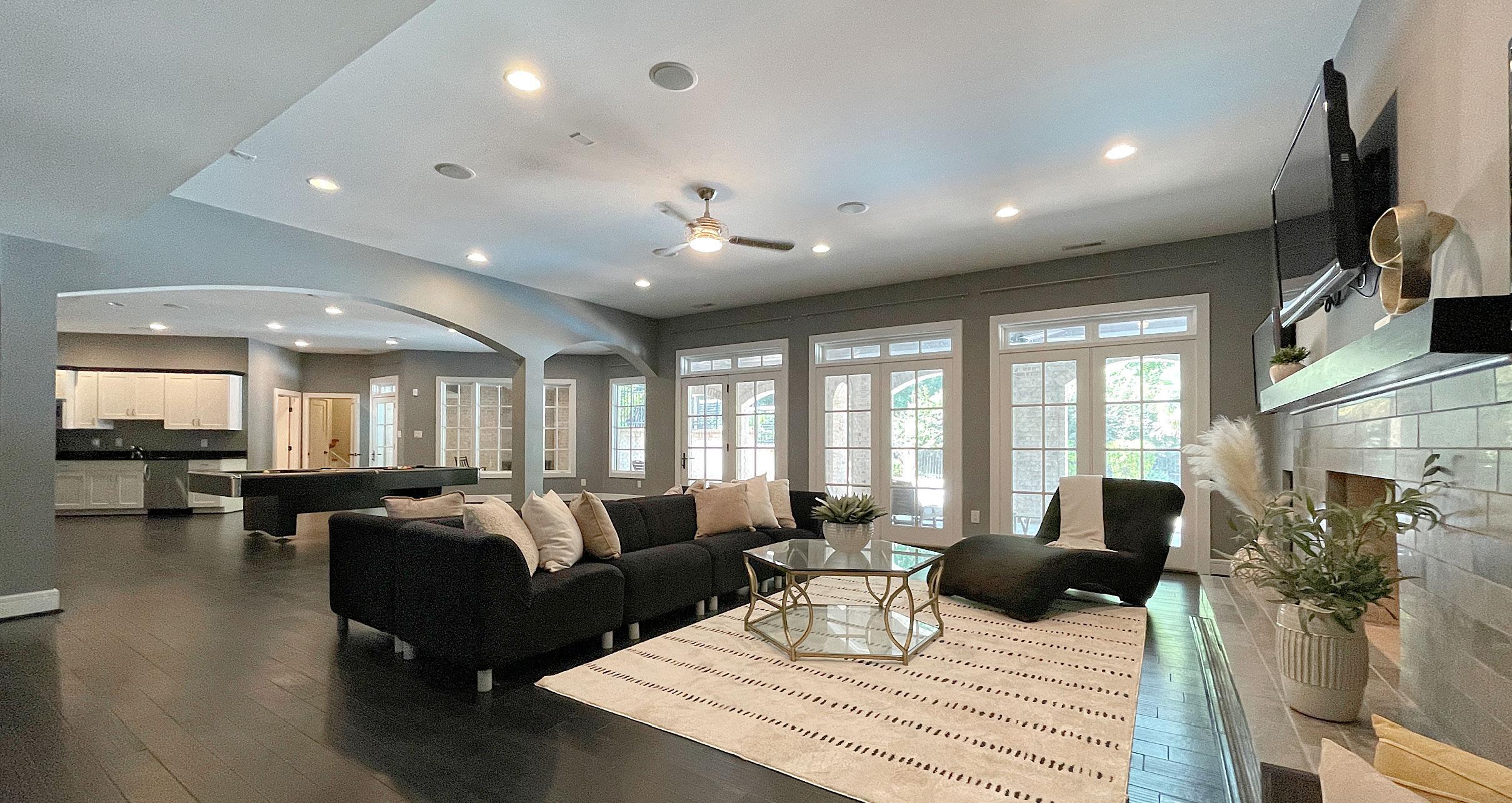 Srrnd Fireplace w/Built Ins, 16’ Slider to Rear Porch & Floating Staircase! 2nd Floor Study, Rec Room, Exercise Room &Tech Area!