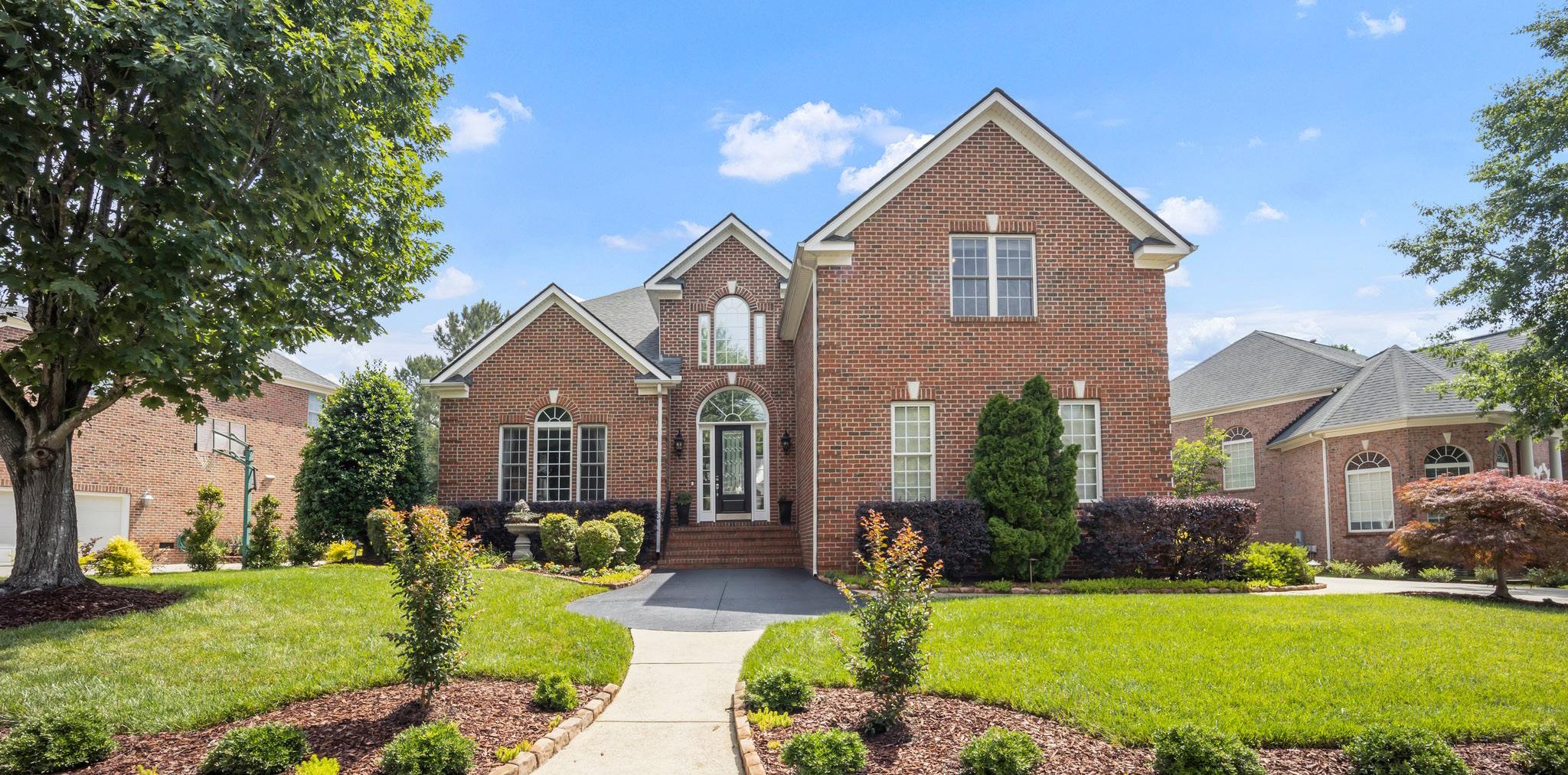 Welcome to this prestigious Toll Brothers Home in the exclusive Hasentree Golf and Country Club Community. The inviting rocking chair front porch leads to a stunning two-story foyer. Recently upgraded with engineered hardwoods throughout the main level (except bathroom and laundry), plus new lighting and ceiling fans. The heart of the home features a dramatic twostory family room with custom white stone fireplace, floating shelves, and built-in cabinets. The gourmet kitchen boasts new tile backsplash, premium stainless appliances, walk-in pantry, and breakfast area. The luxurious owner’s retreat includes a tray ceiling, sitting area, and Closets by Design walk-in closets. The spa-like ensuite offers dual vanities, soaking tub, and walk-in shower. The 2,329 sq ft unfinished basement is plumbed for a potential in-law suite with a kitchen. listed by: