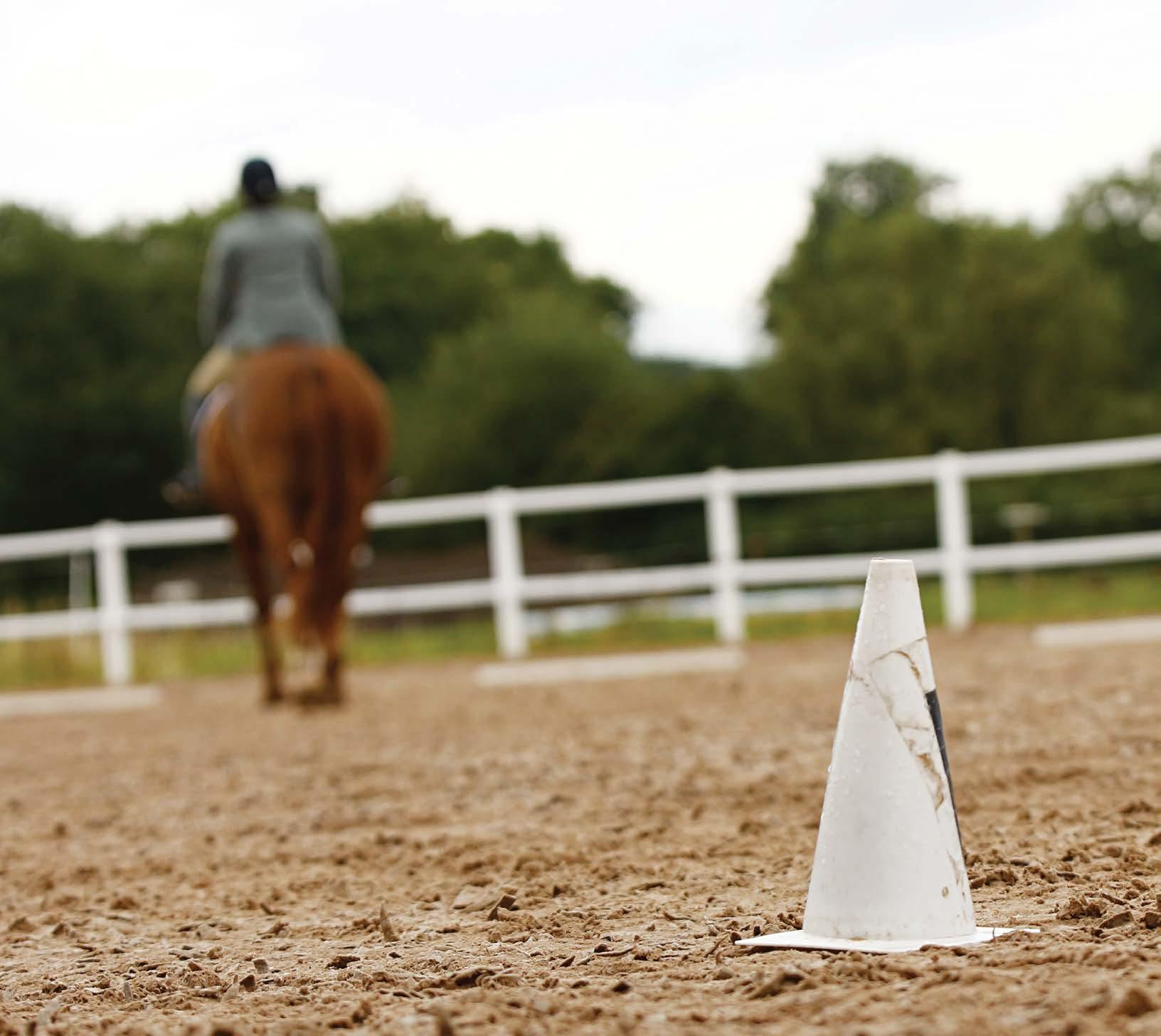 To help with the drifting on the centre line issue, it could be a good idea to use some poles at home to give you a focal point, which will help to control the straightness. Place poles on either side of the centre line with space in between, ideally either side of D, X and G. The poles will help you to keep the straightness and the gaps in between will make you more aware of what you need to do with your aids to keep the straightness when you don’t have poles to rely on.