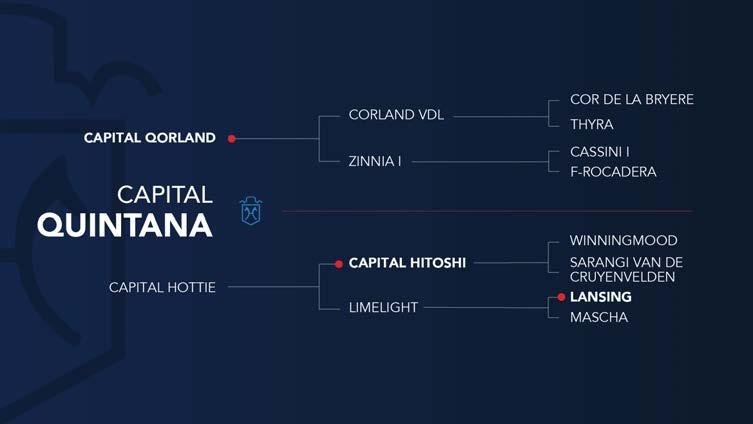 LOT 15: Capital Quintana (Capital Qorland × Capital Hitoshi × Lansing) Elegant, athletic and unmistakably modern, Capital Quintana is the embodiment of today’s sporthorse ideal. With the proven power of Qorland, the elasticity of Hitoshi,