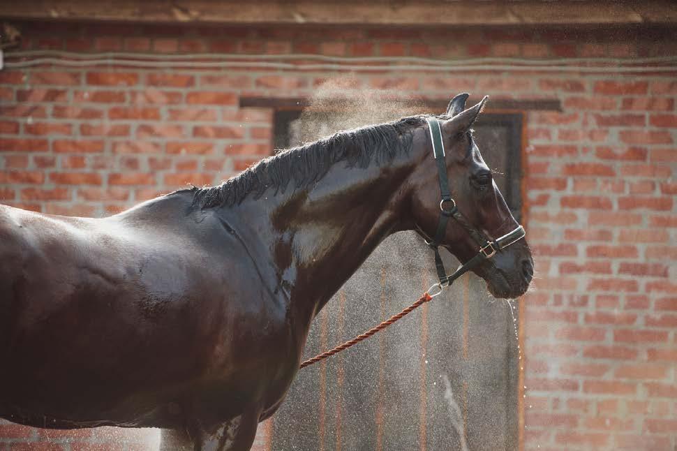 Recommended approach: full shampoo baths no more than weekly, even in summer. Between baths, rinse with plain water after work to remove sweat. Thorough daily grooming with a curry comb and body brush removes sweat salts and dirt without the skinstripping effects of repeated shampooing.