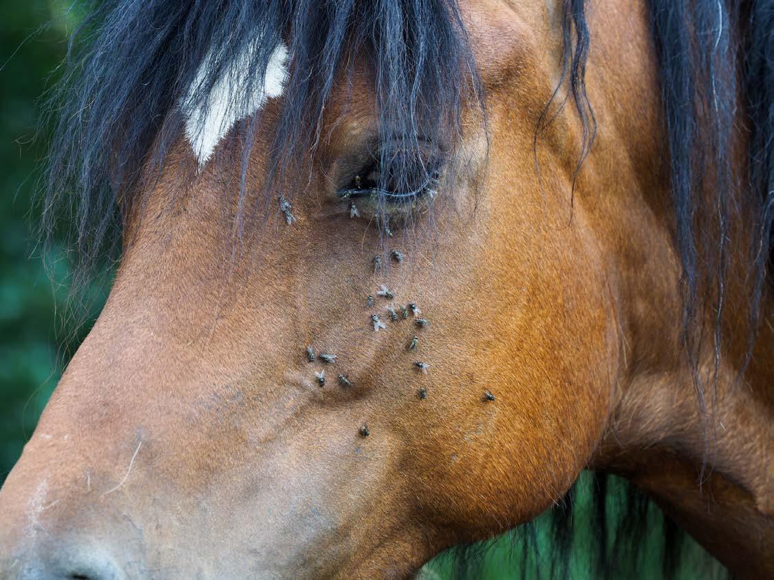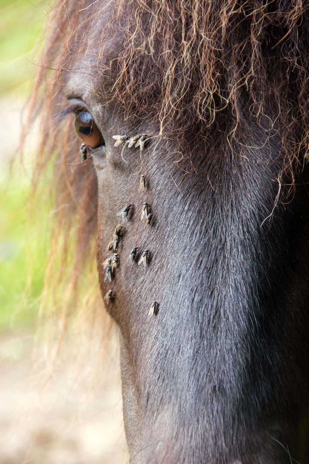 and eyes. Remove and clean weekly. For horses that won't tolerate full masks, consider fringestyle masks that cover the face but not the eyes as these deter many flies while being less restrictive.