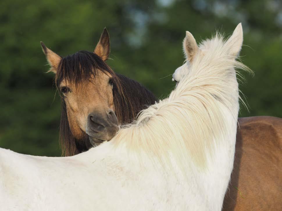 A: Mutual grooming - when two pony friends stand side by side and nibble each other's withers, necks, or backs - serves multiple purposes. It helps them scratch itchy spots they cannot reach themselves. It strengthens their friendship bond. And it feels lovely (to them)!