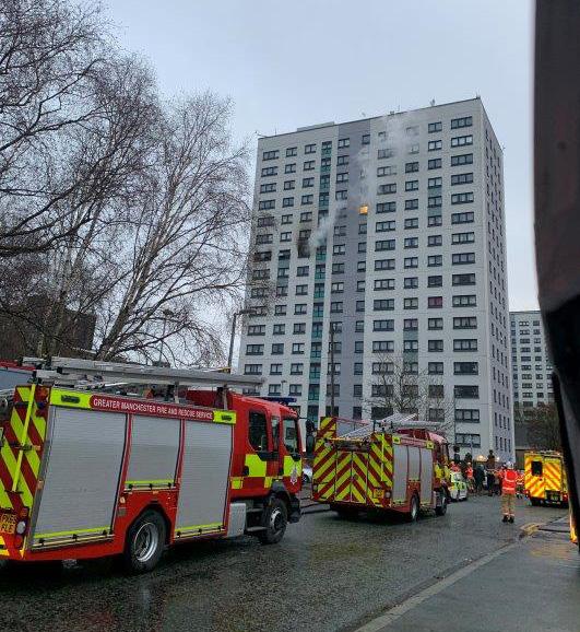 Greater Manchester Fire and Rescue Service (GMFRS) were at the scene at Mulberry Court in Pendleton within minutes, as smoke and flames billowed from a 10th floor