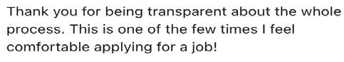 In Talent Board’s experience, companies that post employee testimonials, videos, and other types of employee-authored content across their Careers sites, social media, and employer review sites like Glassdoor, Indeed, and Fairy Godboss frequently have the most highly rated candidate experiences. Interestingly, however, employee testimonials have lost a bit of their credibility over the past few years, according to Talent Board’s research. In our discussions with candidates, this is due to concerns over the validity of testimonials controlled by corporate management. This is why we also encourage employers to allow their employees to create and post spontaneous, unedited content and to vigorously enforce a no-recriminations policy when employees do so.