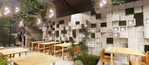 SPACE LOCATED IN DHAKA, BANGLADESH, CONCEPTUALIZED AS AN INDOOR GREEN LOUNGE. THE DESIGN INTEGRATES LUSH NATURAL ELEMENTS INTO THE INTERIOR, BLURRING THE BOUNDARIES BETWEEN BUILT SPACE AND LANDSCAPE. WITH GREENERY WOVEN THROUGHOUT THE DINING AREAS, THE AMBIANCE EVOKES THE FEELING OF BEING IN A PARK—RELAXED, REFRESHING, AND IMMERSIVE. COMPLEMENTING THE INTERIOR, THE OUTDOOR LANDSCAPE IS INFLUENCED BY JAPANESE GARDEN AESTHETICS, EMPHASIZING CALMNESS, MINIMALISM, AND SERENITY. TOGETHER, THE SPACES OFFER A COZY YET SOPHISTICATED ENVIRONMENT WHERE DINING BECOMES A SENSORY EXPERIENCE ROOTED IN NATURE.