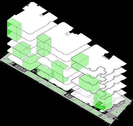 A DEFINING FEATURE OF TOWER 8 IS ITS INTEGRATION OF MULTILEVEL GREEN ACTIVITY SPACES THAT FOSTER COMMUNITY INTERACTION AND PROVIDE MUCH-NEEDED BREATHING SPACE WITHIN THE URBAN FABRIC. THESE LANDSCAPED TERRACES AND SHARED COURTYARDS SERVE AS SOCIAL, RECREATIONAL, AND ECOLOGICAL BUFFERS, ENHANCING BOTH THE LIVABILITY AND SUSTAINABILITY OF THE DEVELOPMENT. THE DESIGN REFLECTS A CONTEXTUAL APPROACH THAT BALANCES DENSITY WITH COMFORT, AFFORDABILITY WITH QUALITY, AND STRUCTURE WITH SOFTNESS THROUGH GREEN INTEGRATION.