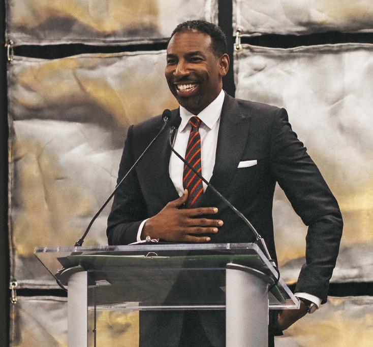 5-7 More than 80 organizations hosted exhibits in the SOAHR Resource Partner Showcase. 8 Keynote speaker Khatdija Meghjani (right) kicked off SOAHR by introducing Dear World. Alongside Meghjani, LaTonya Bowden (left), Area Human Resources Manager for DHL Supply Chain, shared her process for distilling her story down to a key phrase. 9 The Dear World portrait experience involved telling your story through a key phrase or words written on your skin. 10 Individual portraits were then taken of attendees highlighting what Dear World calls “brain tattoos.” 11 Trust expert Yoram Solomon concluded SOAHR with his keynote about how HR professionals can close the “trust gap” between employees and managers, executives, and the HR department. 12 Fiona Passantino’s sessions on artificial intelligence for HR professionals were standing room only. 13 Atlanta Mayor Andre Dickens spoke to SOAHR attendees about the important role HR professionals play in the metro business community and the current state of the labor market and workforce development needs. 14 Attendees enjoyed “making their mark” on a coloring wall. 15 SHRM-Atlanta CEO Jason Cline (left) and Atlanta