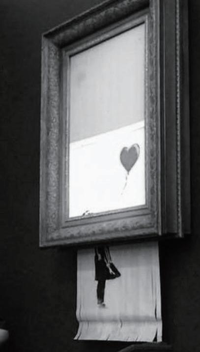 Moments after the closing bid, the artwork began to self-destruct by means of a hidden mechanical paper shredder that Banksy had built into the frame bottom to express his against to commercialization of art.