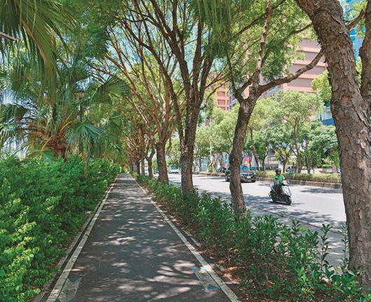竹北國盛街與新民街轉角改善後示意圖。 竹北興隆路段綠色路廊改善後。