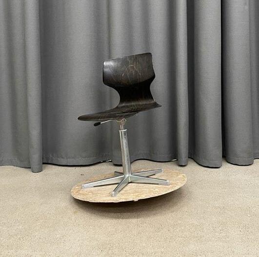 Schwenkender Stuhl. Durch den sehr tiefen Schwerpunkt erinnert die Sitzerfahrung an eine Achterbahn.