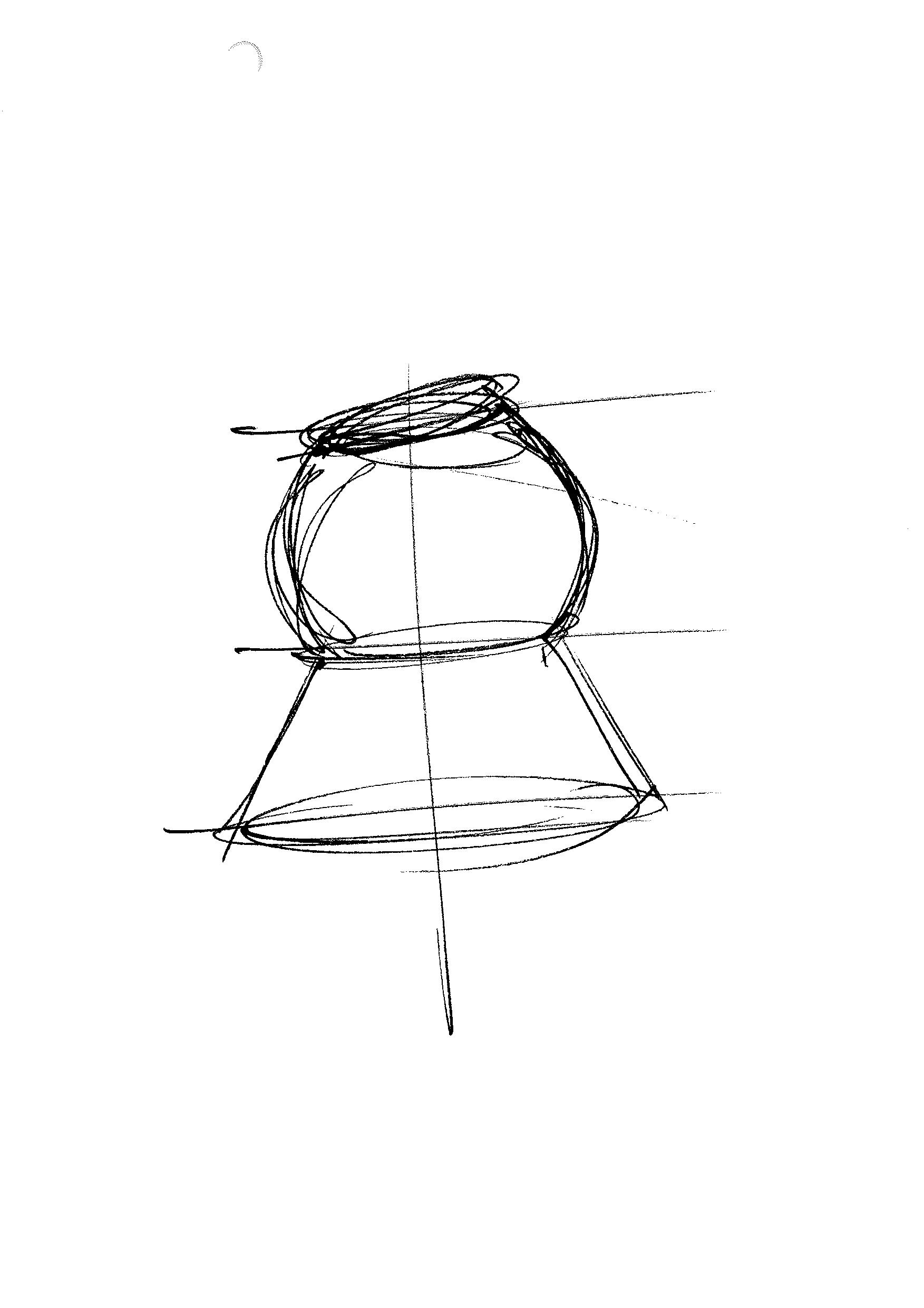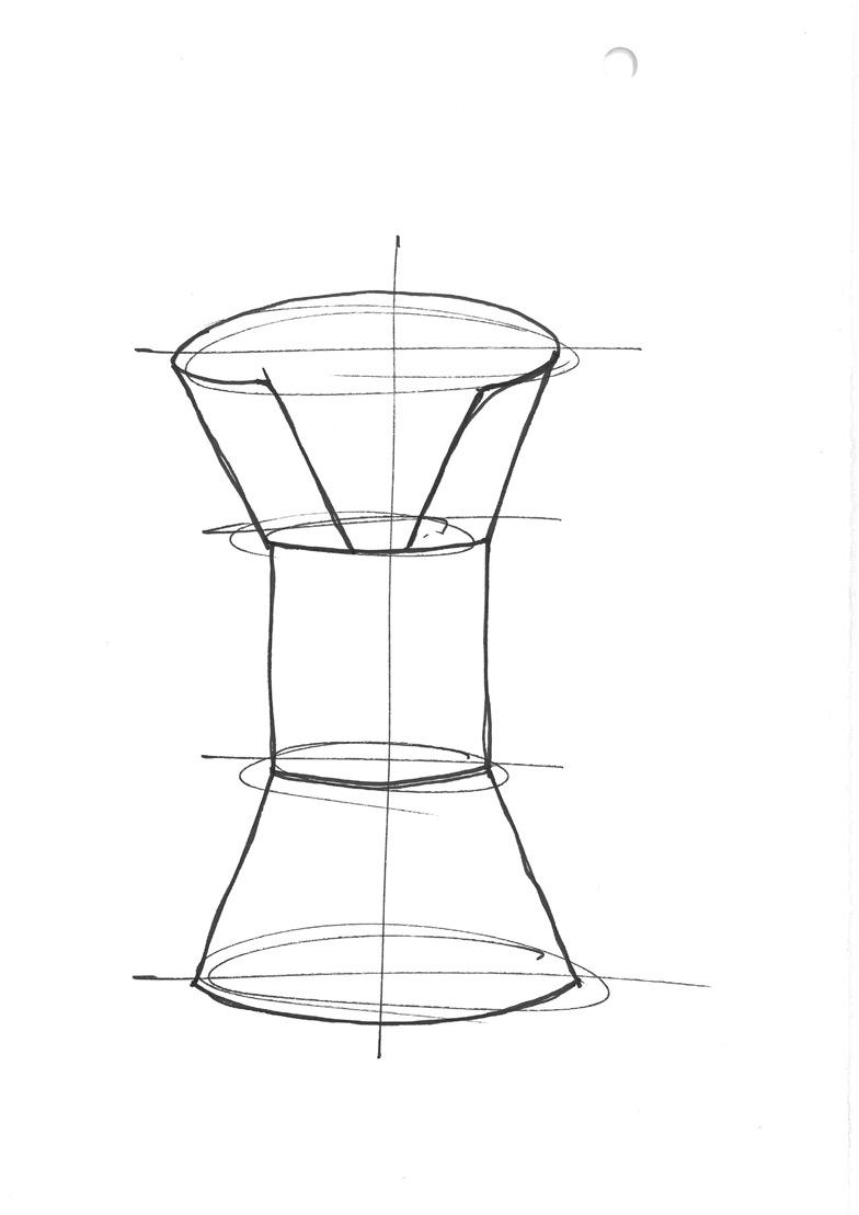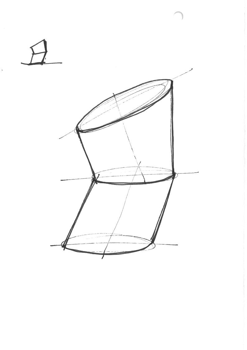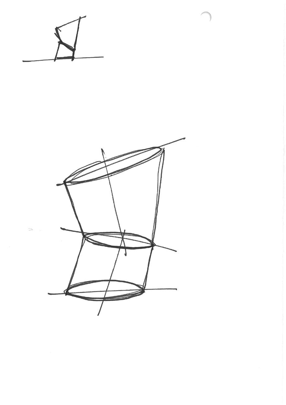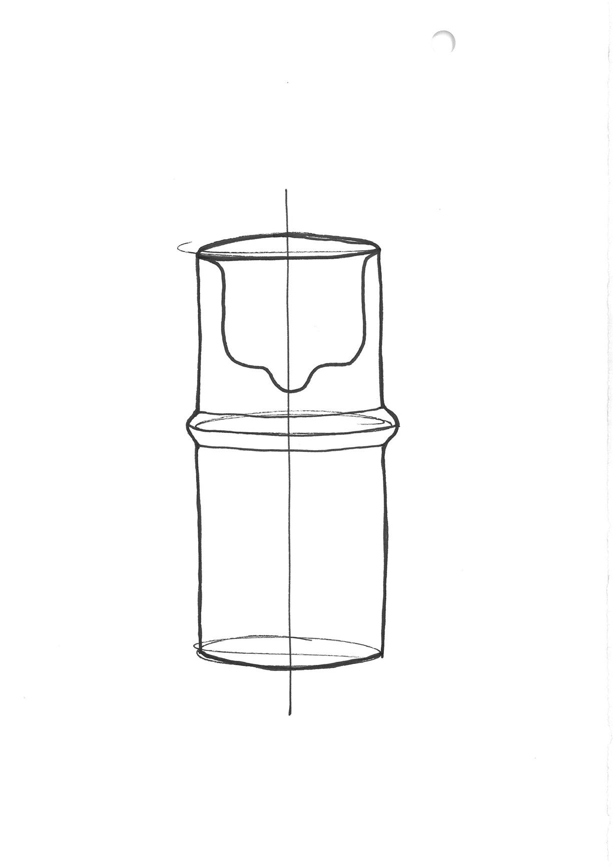 Aus den ersten Skizzen heraus lässt sich Folgendes herauskristallisieren: Erstens kann ein Nasenausschnitt sichtbar sein, also als Gestaltungsmerkmal dienen, oder er kann verdeckt sein. Dies kann durch eine abgeschrägte Trinkkante erreicht werden.