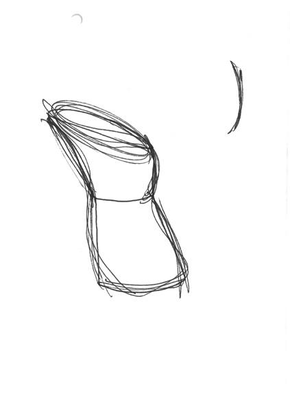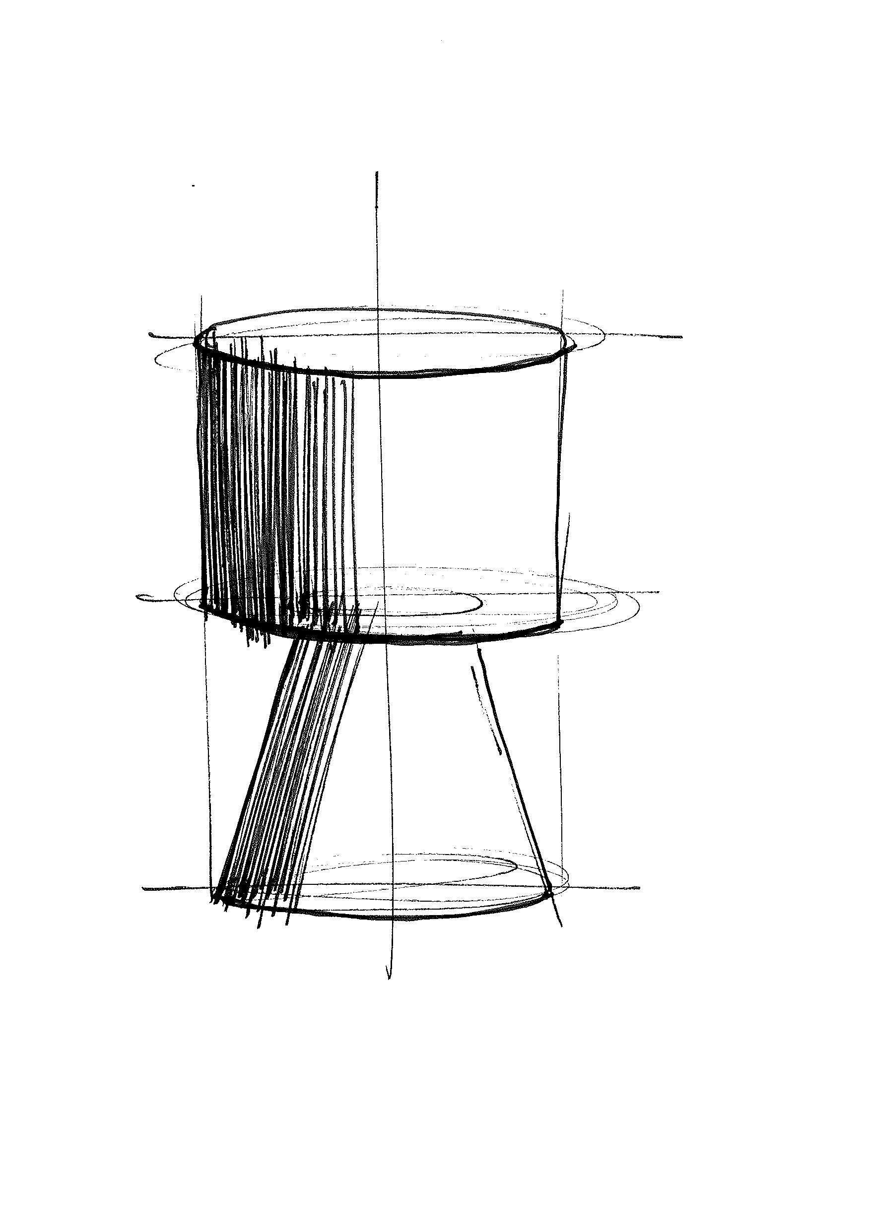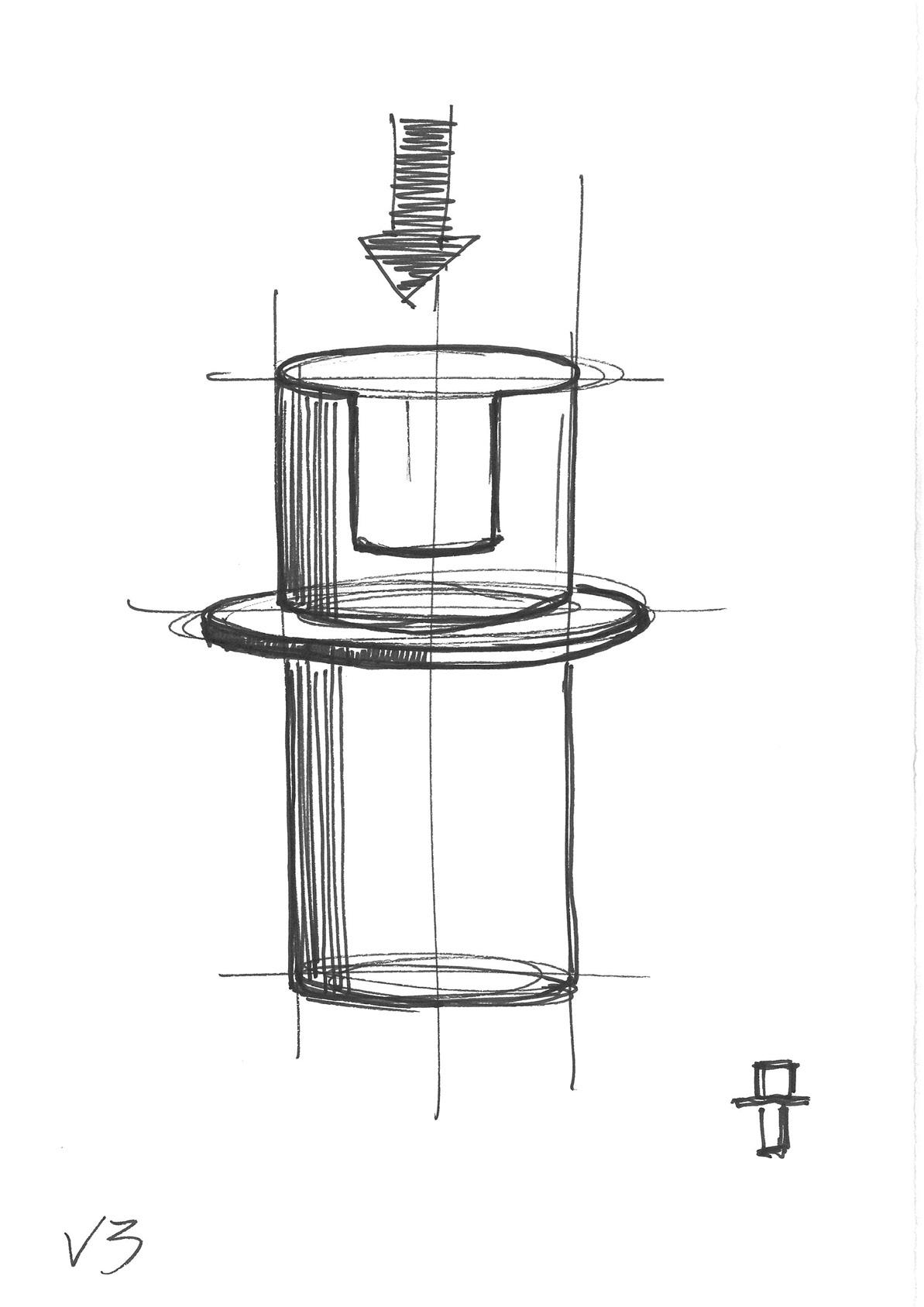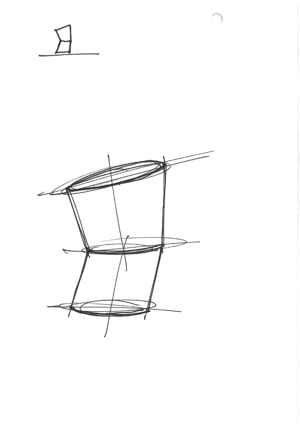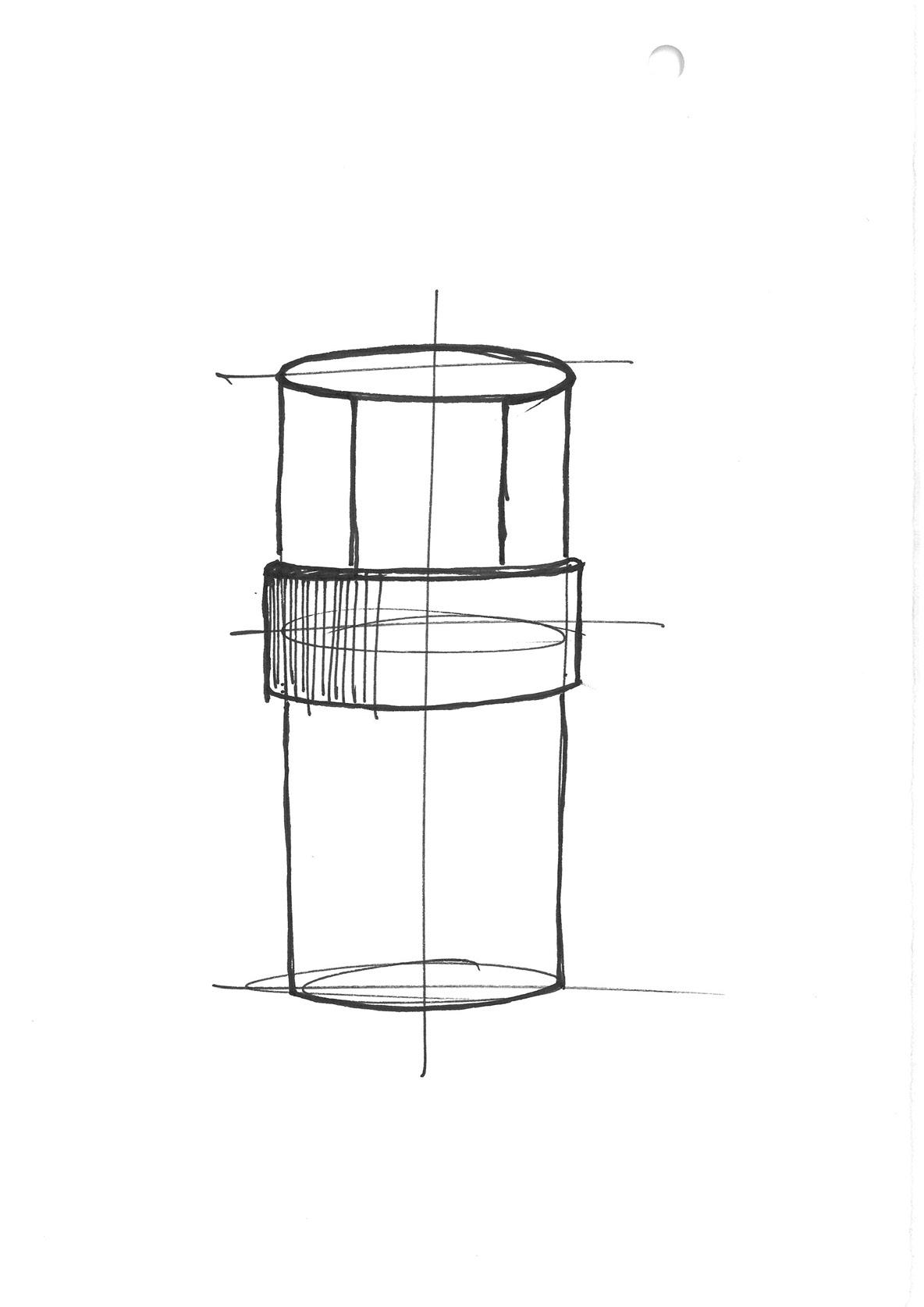 Aus den ersten Skizzen heraus lässt sich Folgendes herauskristallisieren: Erstens kann ein Nasenausschnitt sichtbar sein, also als Gestaltungsmerkmal dienen, oder er kann verdeckt sein. Dies kann durch eine abgeschrägte Trinkkante erreicht werden.