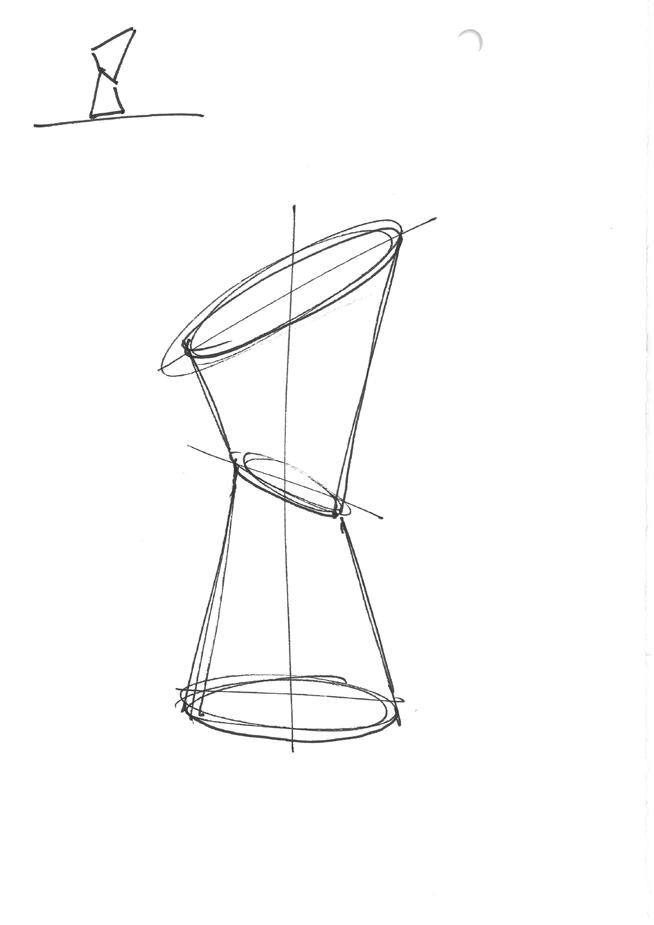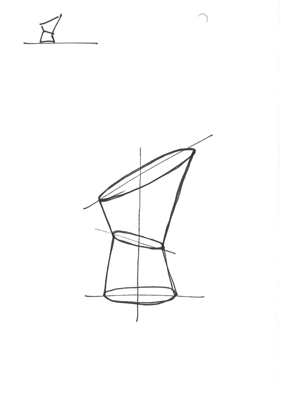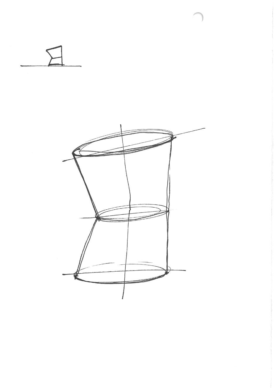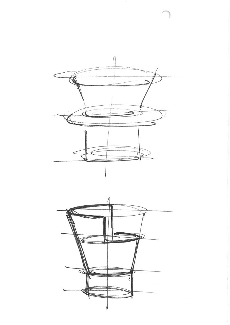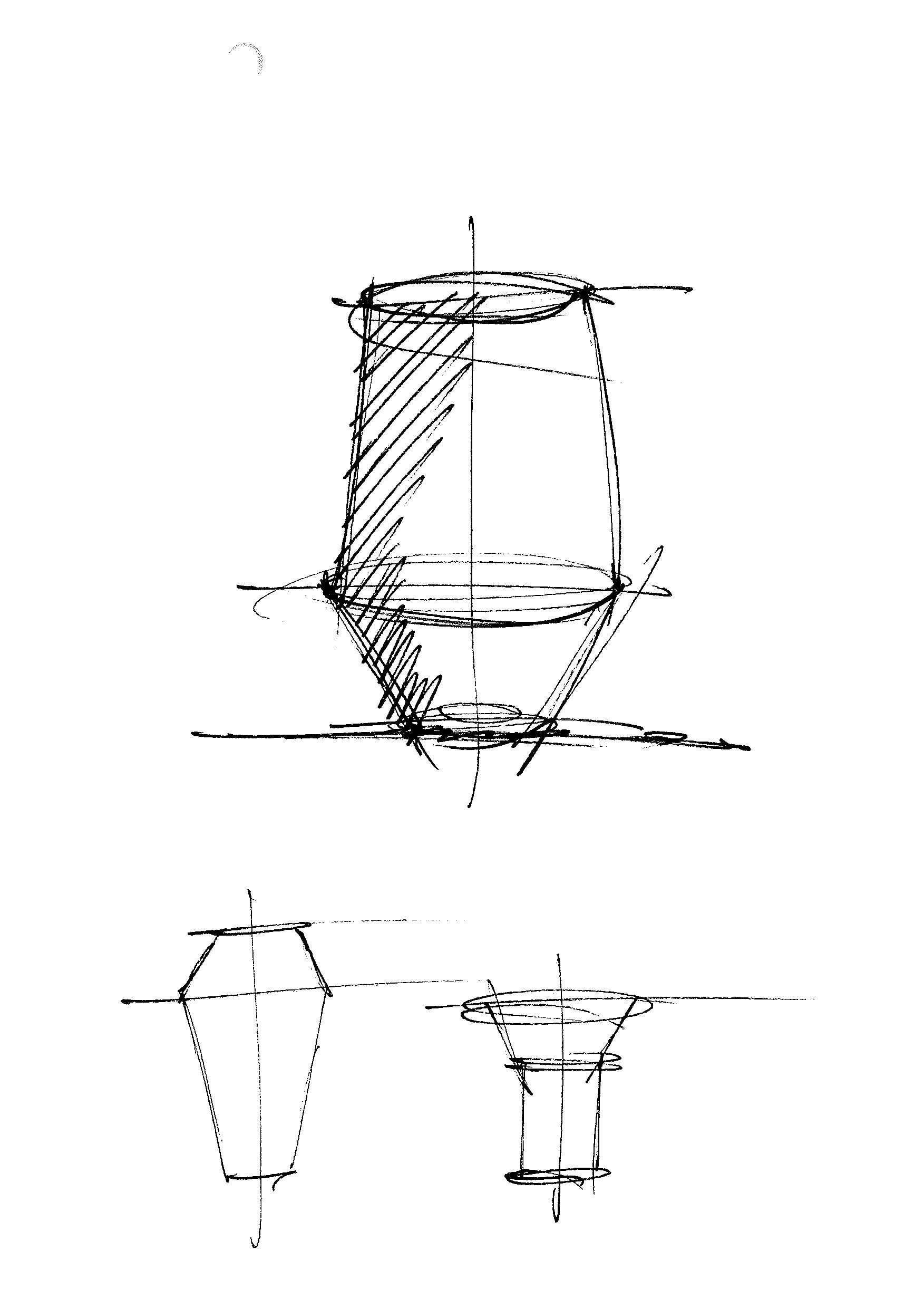 Weitere Skizzen wurden mit verschiedenen Formsprachen des Glases, mit sichtbarem oder verdecktem Nasenausschnitt, gemacht. Der Fokus lag ebenfalls auf die verbesserte Greiffähigkeit.