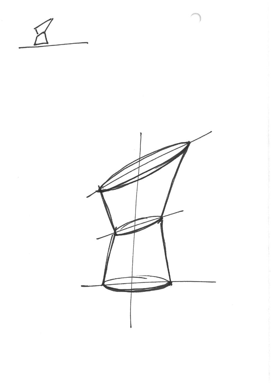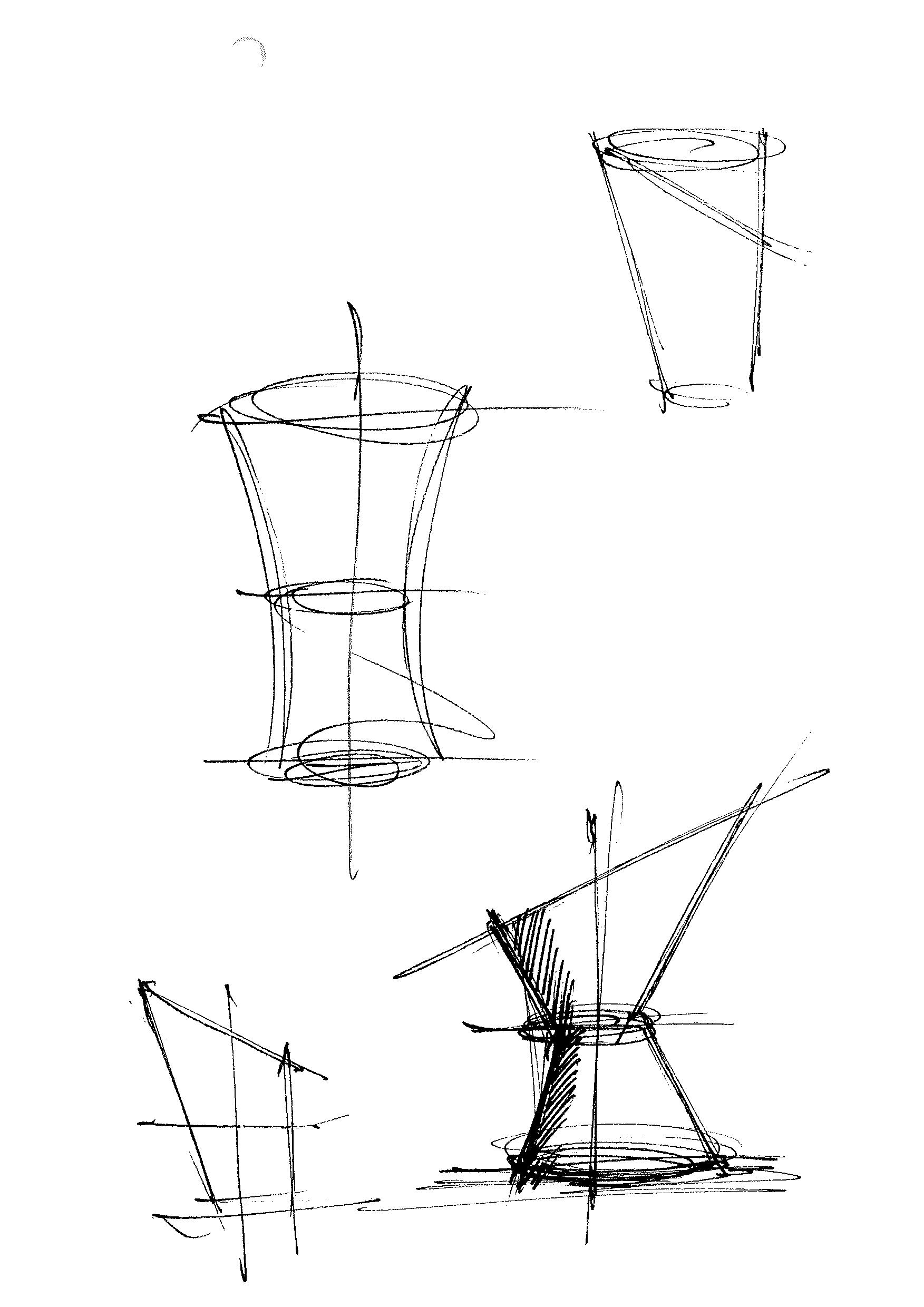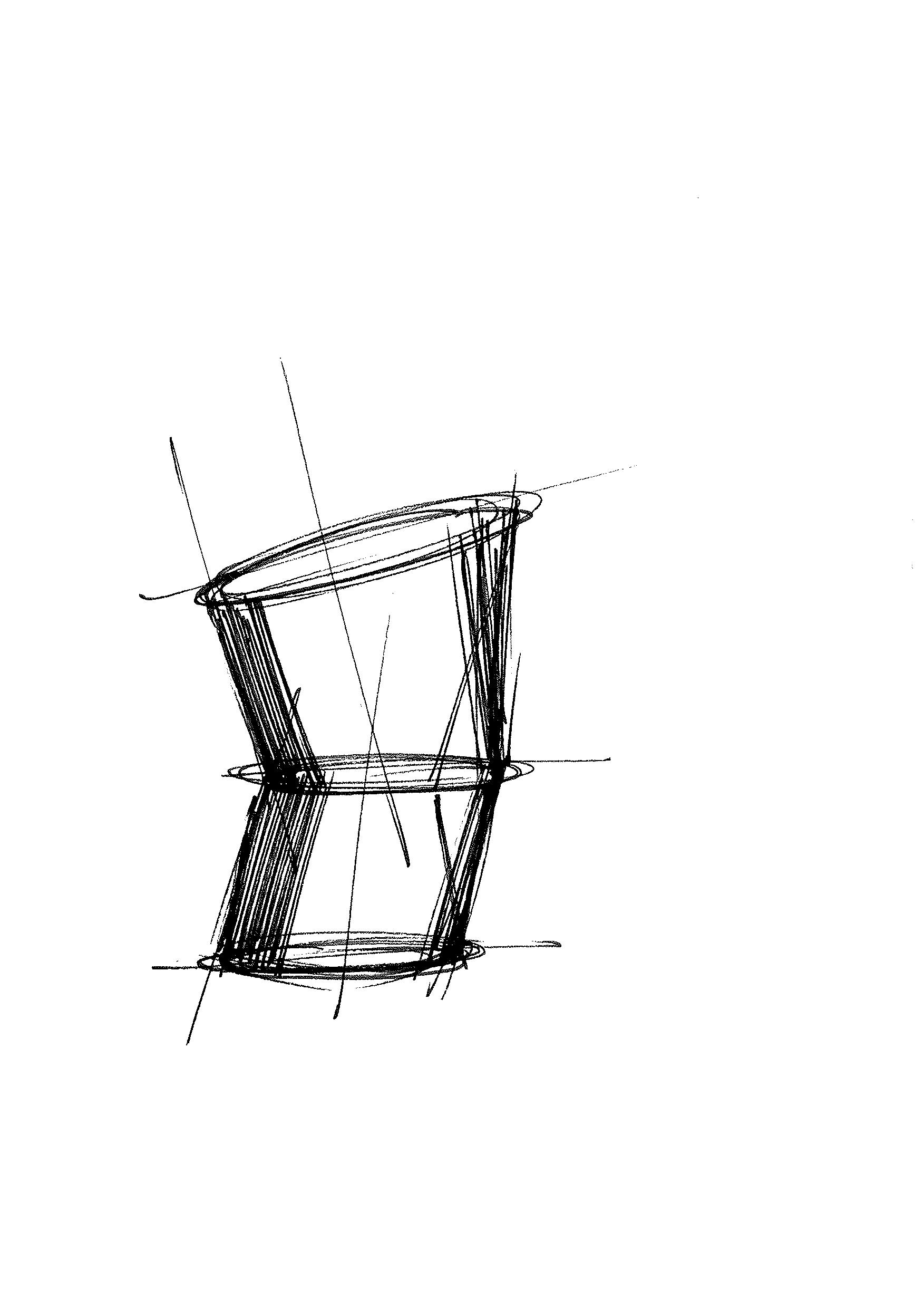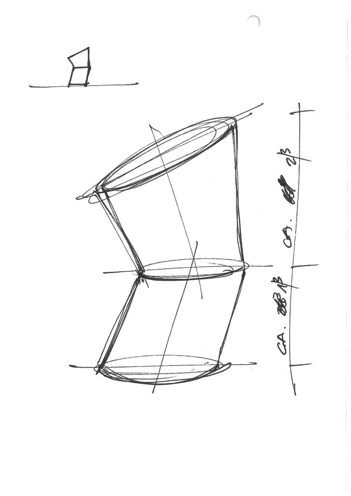 Weitere Skizzen wurden mit verschiedenen Formsprachen des Glases, mit sichtbarem oder verdecktem Nasenausschnitt, gemacht. Der Fokus lag ebenfalls auf die verbesserte Greiffähigkeit.