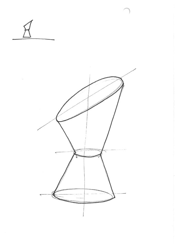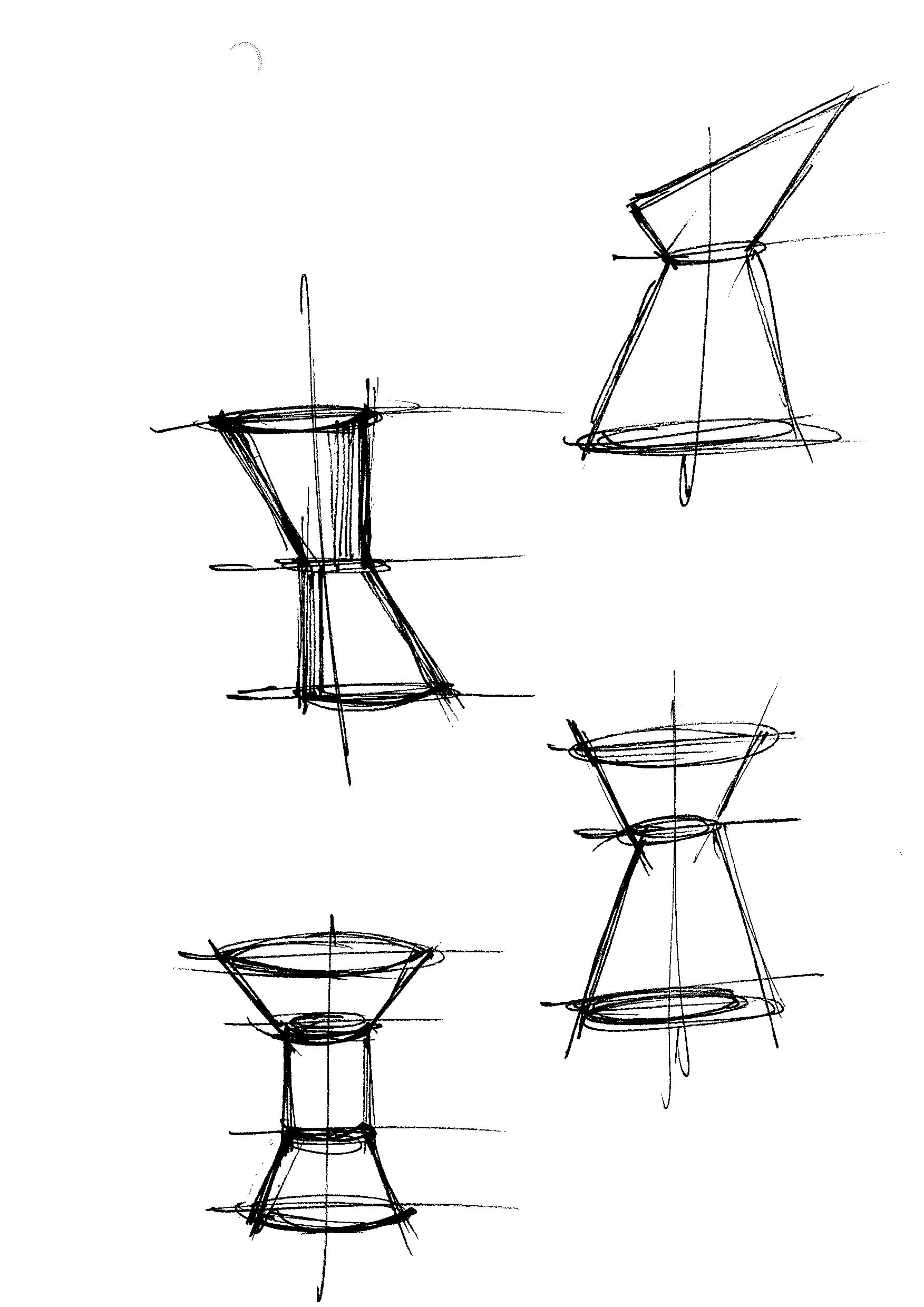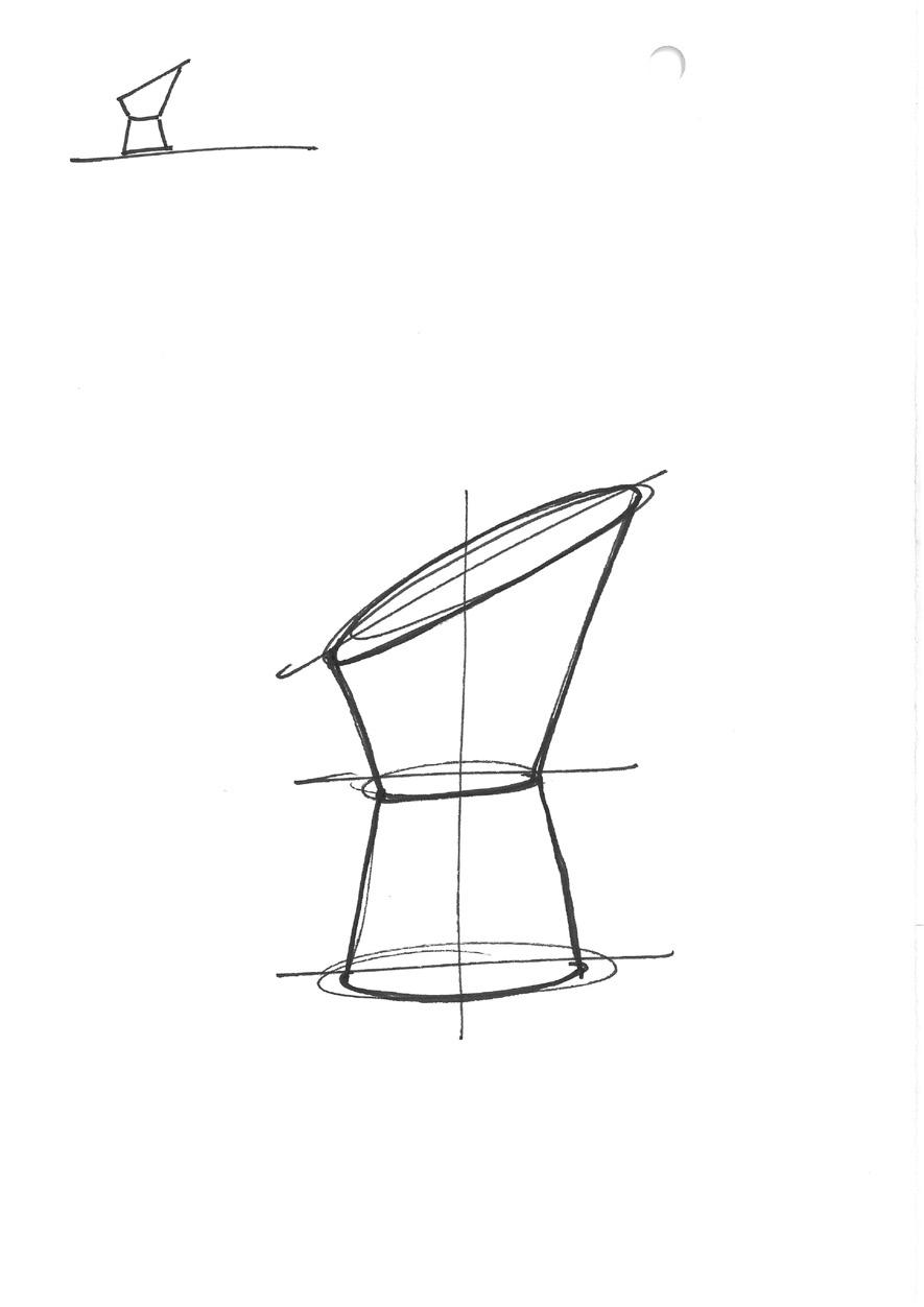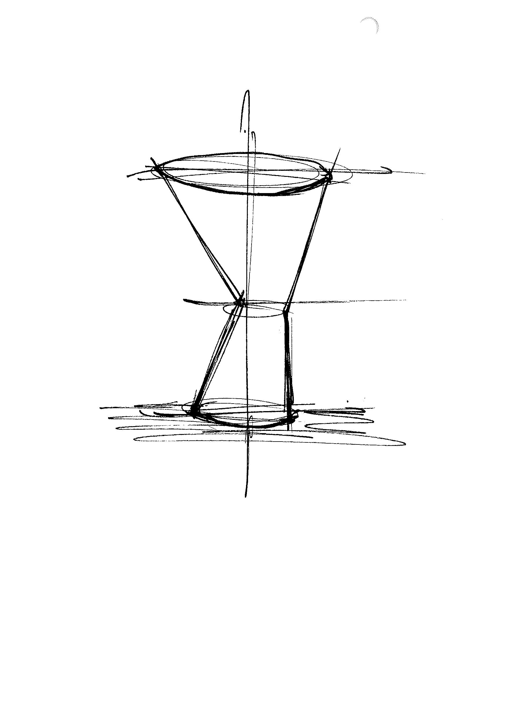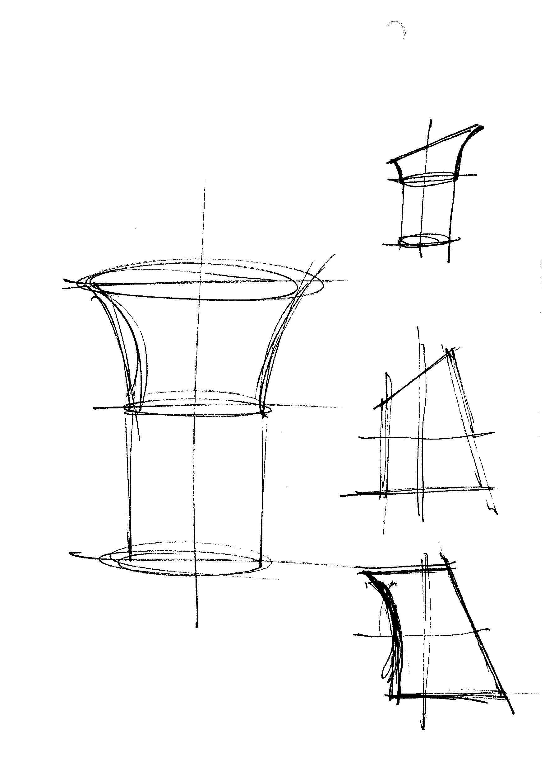 Weitere Skizzen wurden mit verschiedenen Formsprachen des Glases, mit sichtbarem oder verdecktem Nasenausschnitt, gemacht. Der Fokus lag ebenfalls auf die verbesserte Greiffähigkeit.