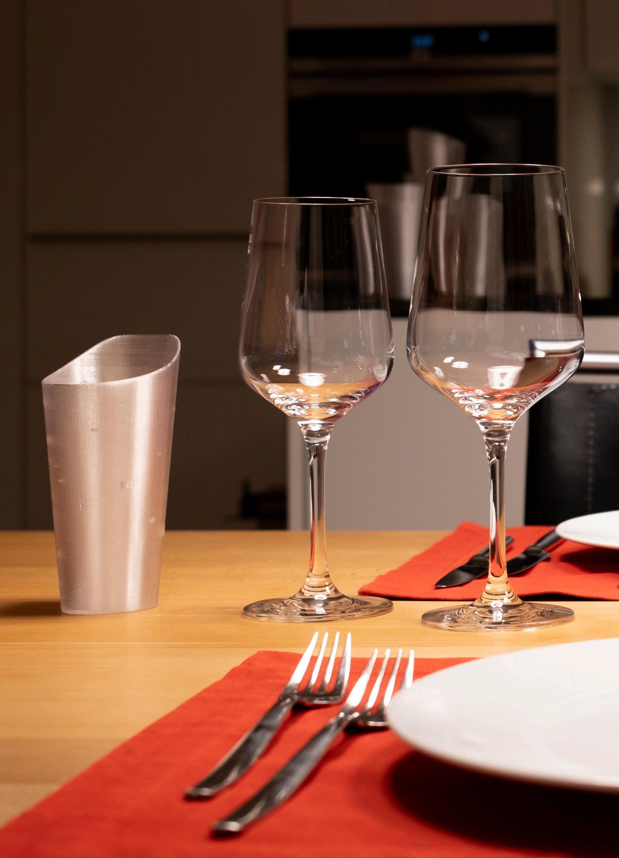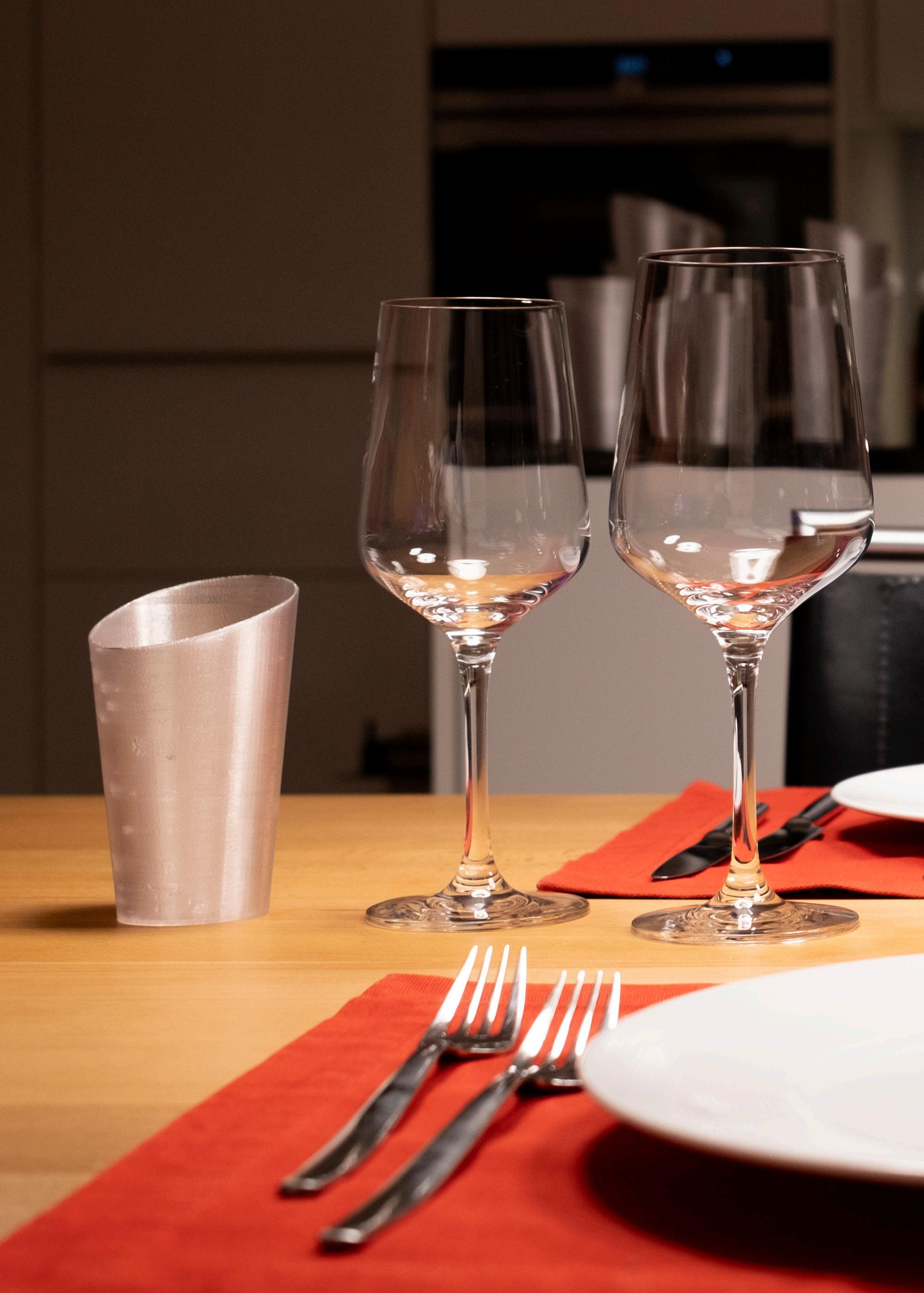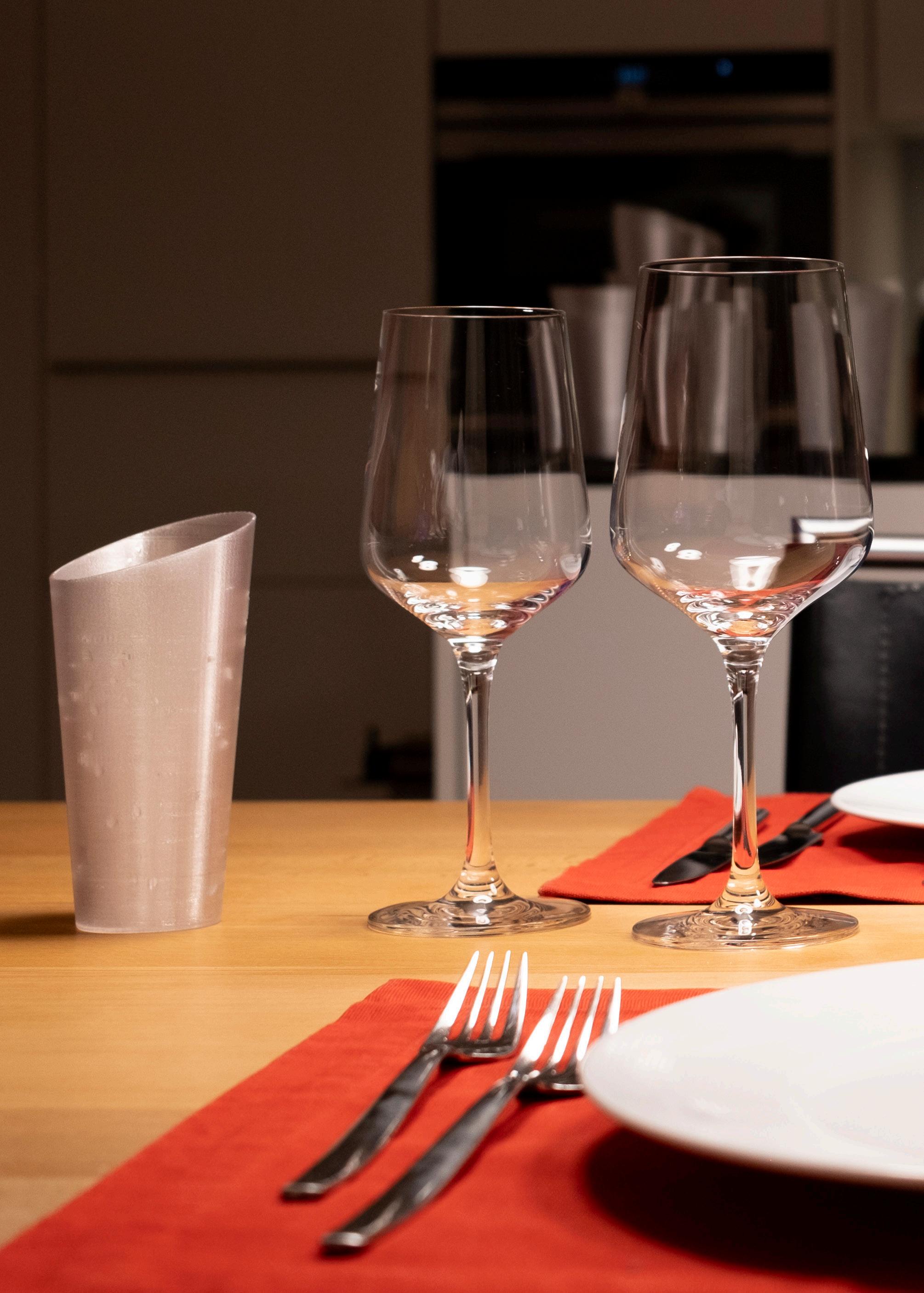 Folgende Bilder zeigen die 3D-gedruckten Formen auch im Kontext eines gedeckten Tisches, um so erste Anhaltspunkte betreffend derer Ästhetik zu bekommen.
