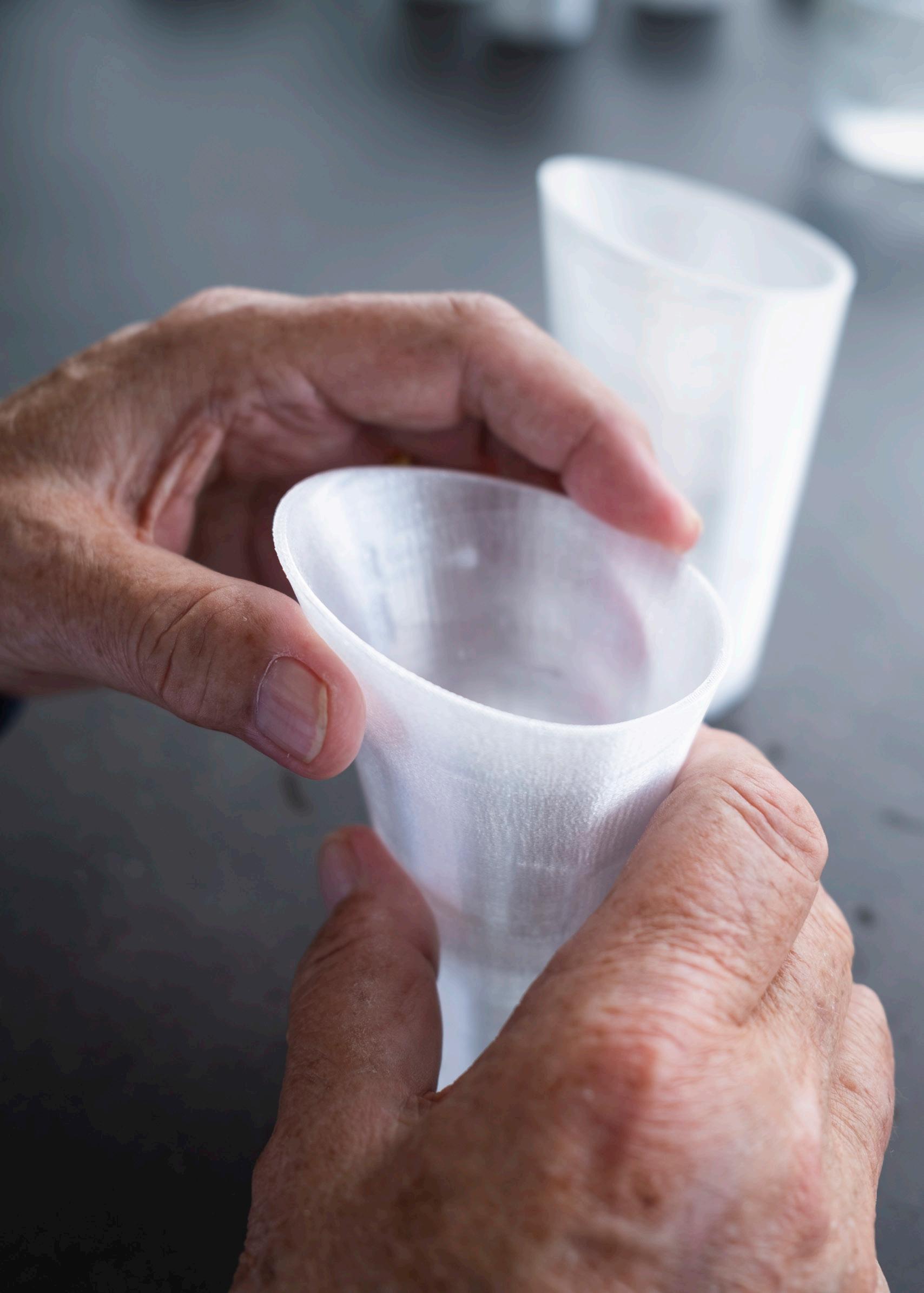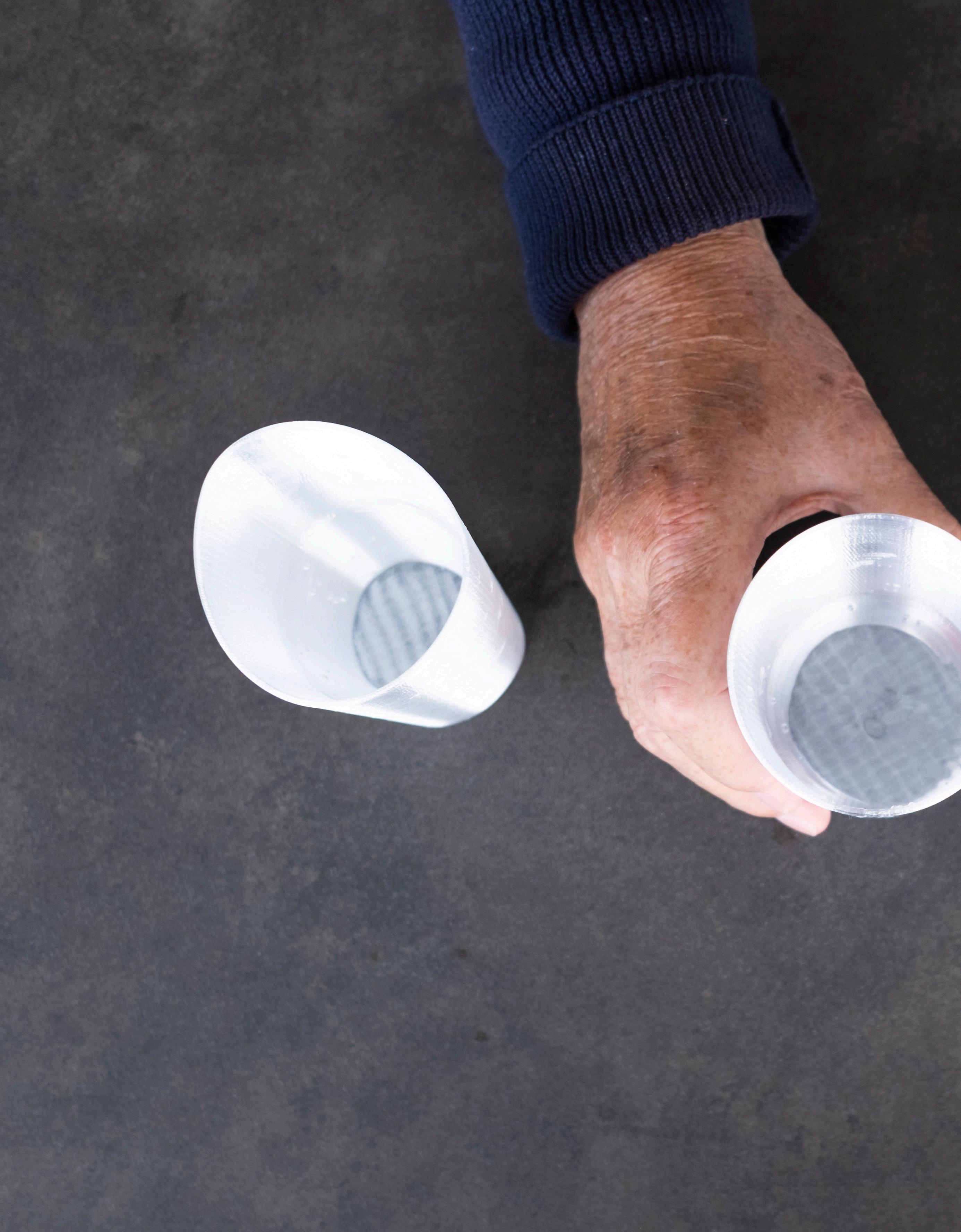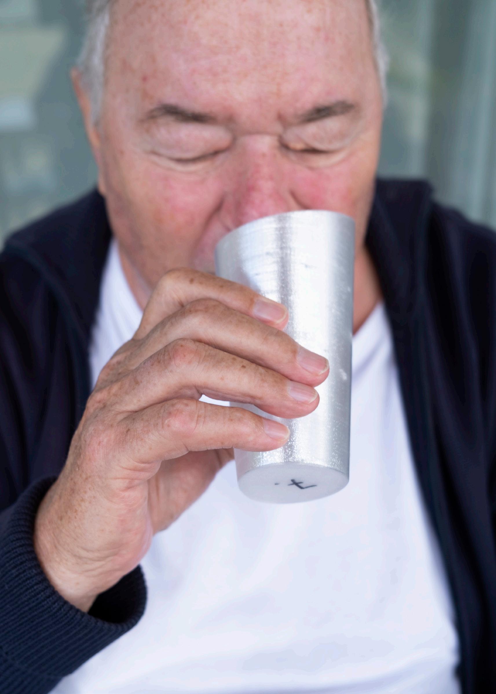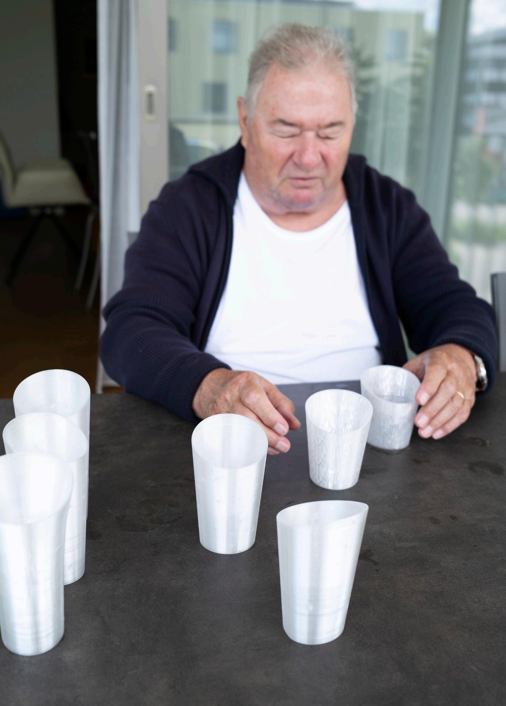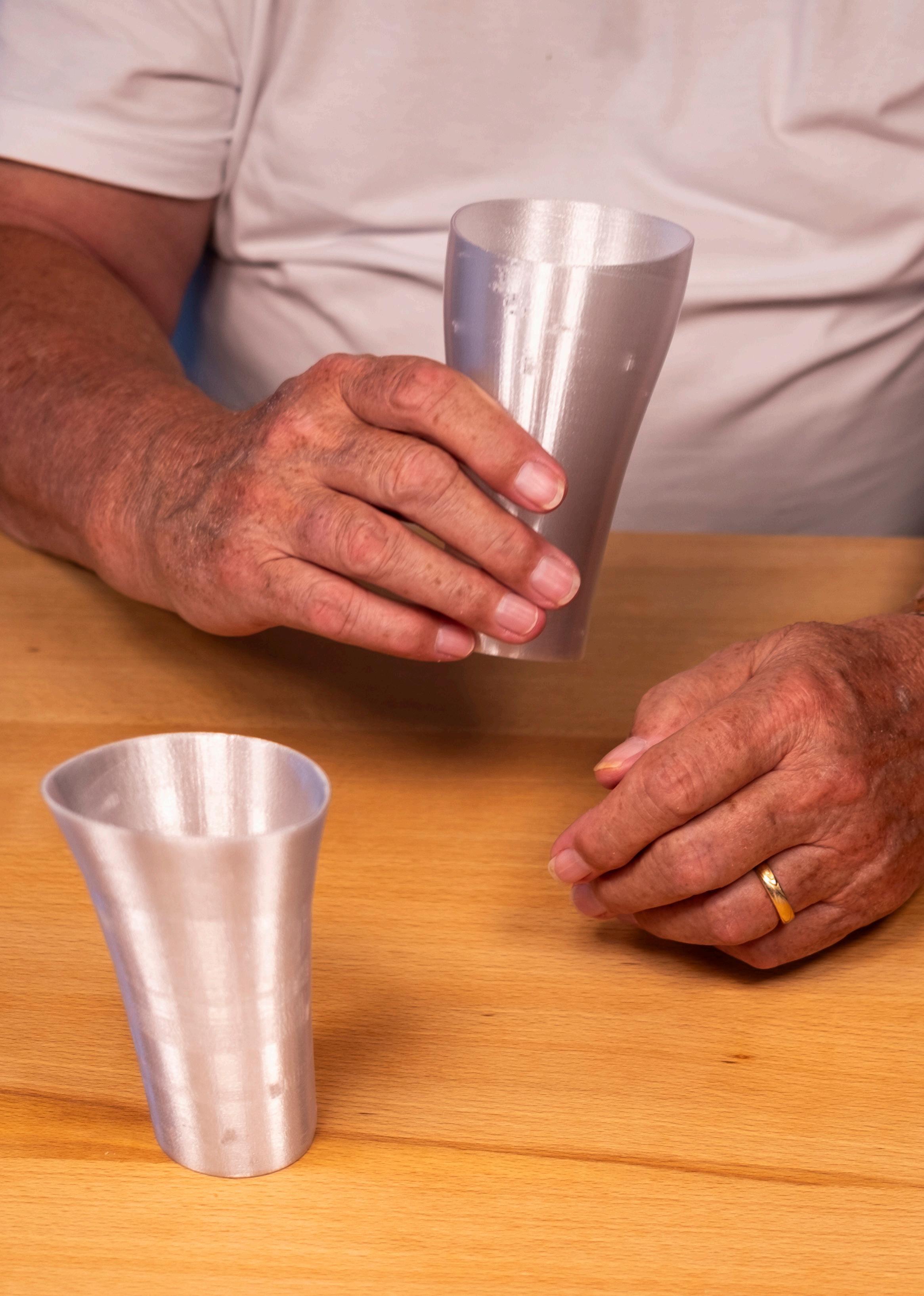 Die Trinkgläser wurden für und mit Hilfe der Rückmeldungen und Anregungen meines Vaters entwickelt, welcher schon seit mehreren Jahren an der ParkinsonKrankheit und dessen Folgen leidet.