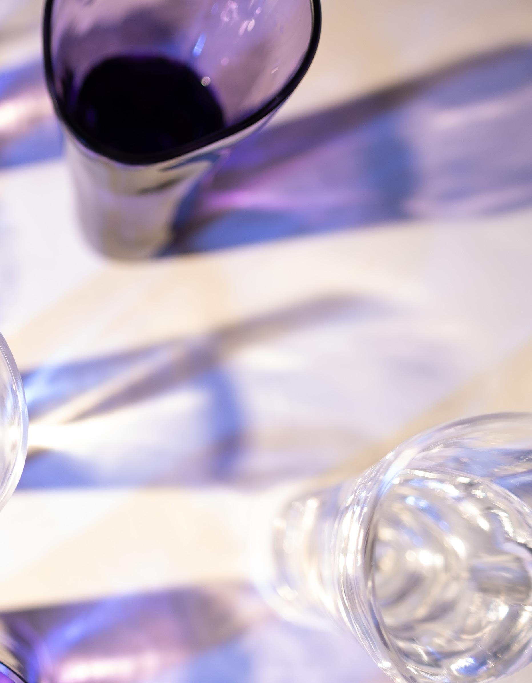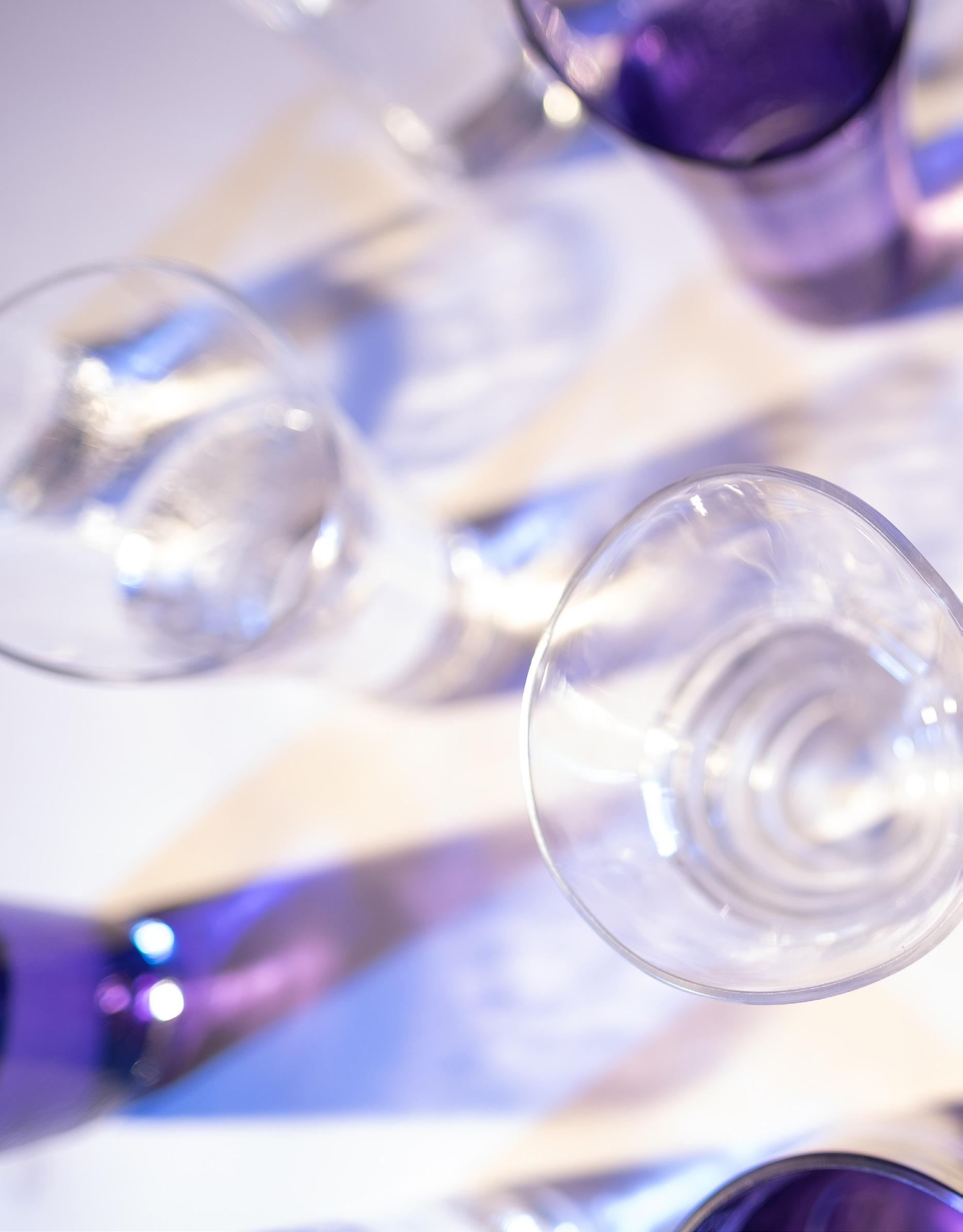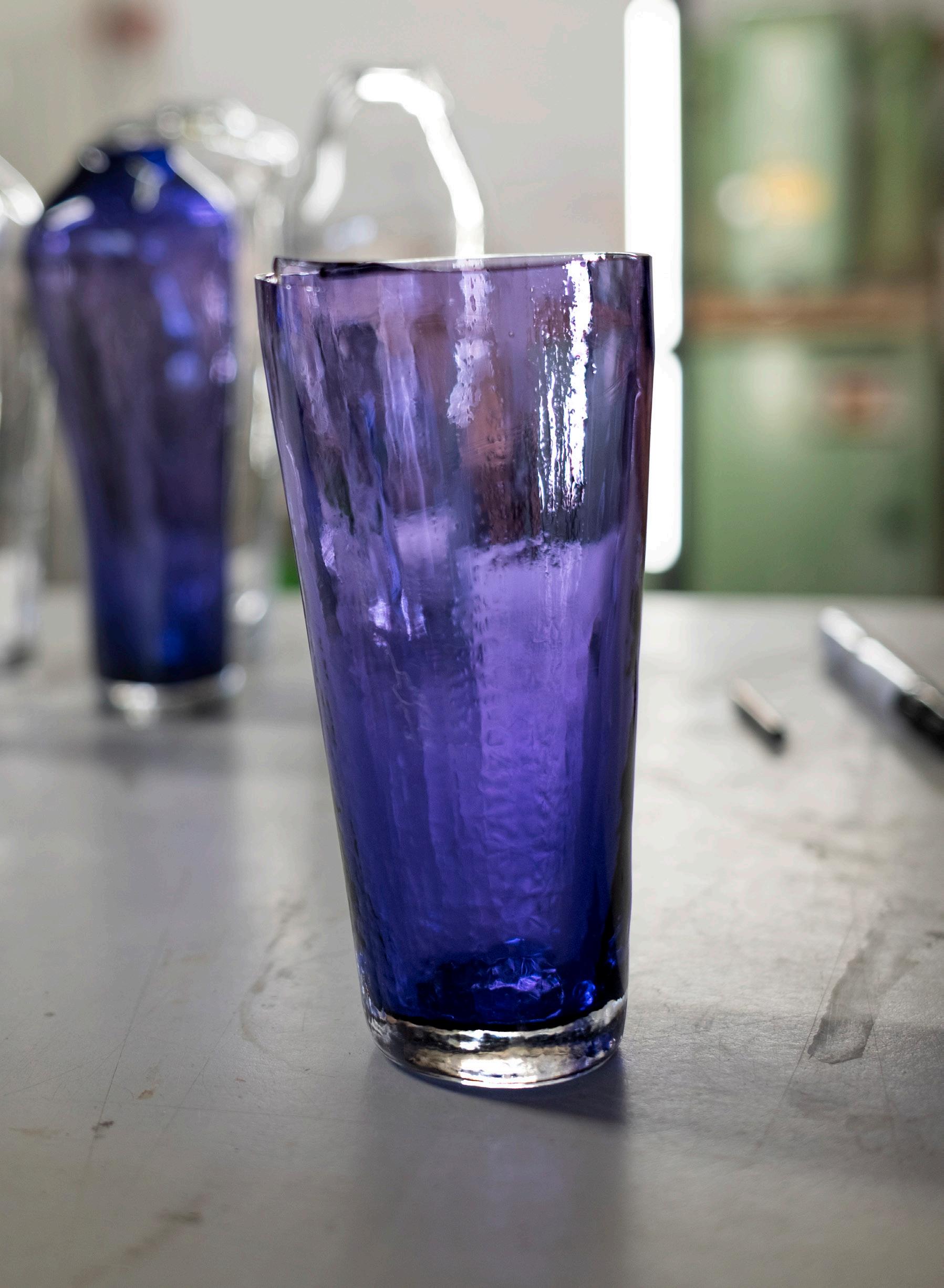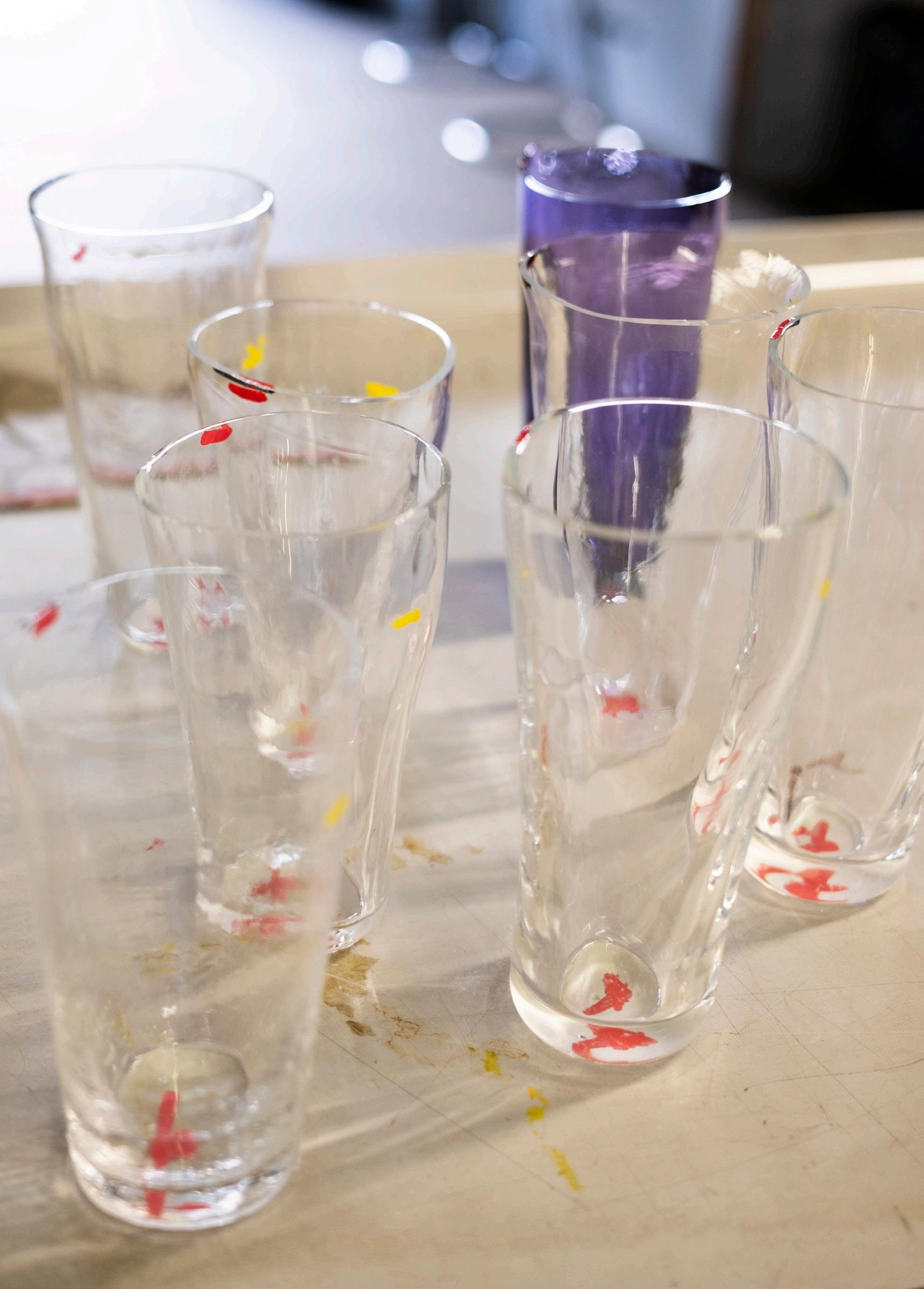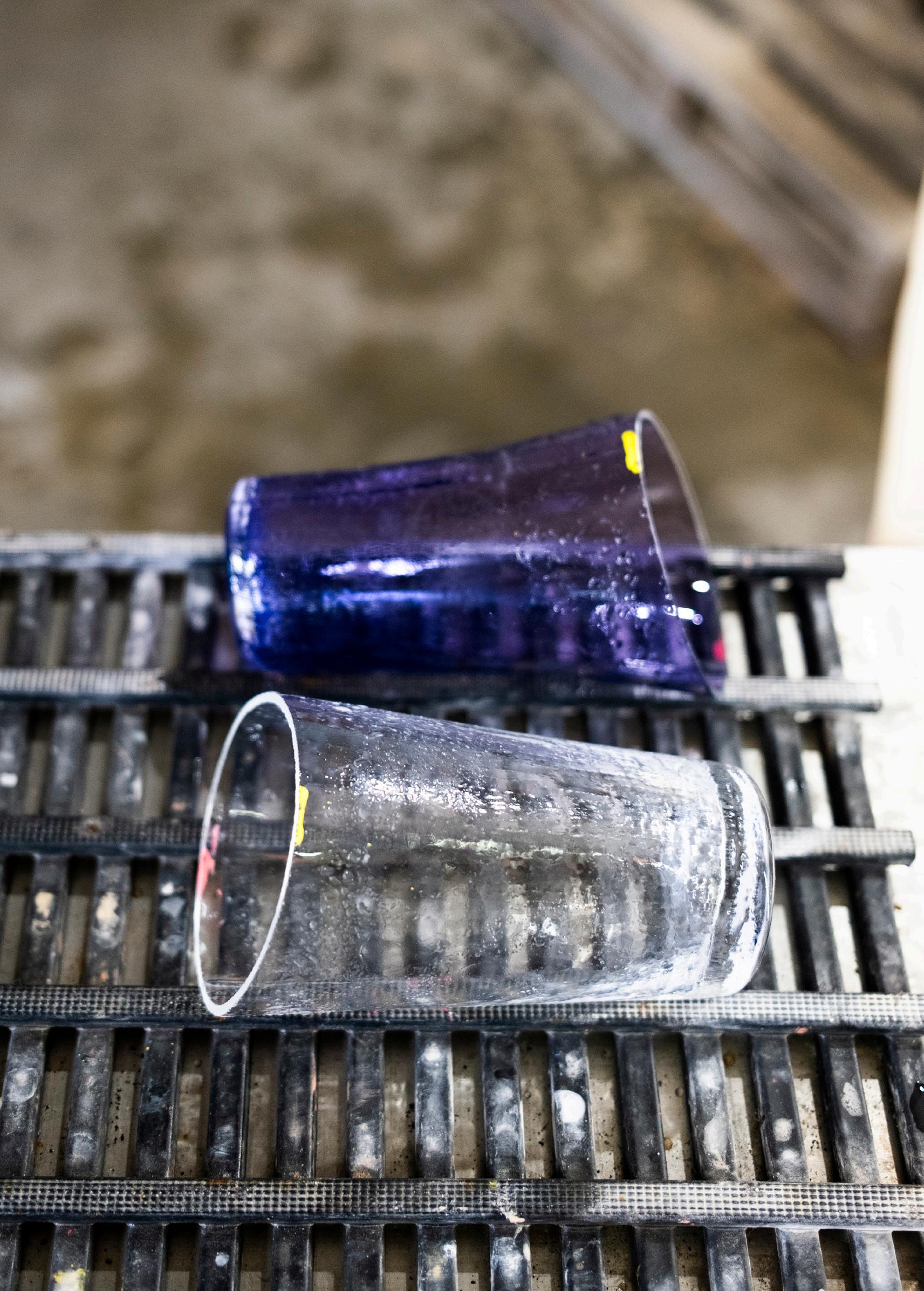 Aus der Produktion entstanden 12 Gläser. Es sind jeweils 2 durchsichtige und ein farbiges Glas einer Variante vorhanden. Das farbige ist in einem dunklen Violett gehalten, was eine gewisse Eleganz vermitteln soll und möglichst nicht mit einem Ikea Trinkbecher in knallgelb verwechselt werden soll.